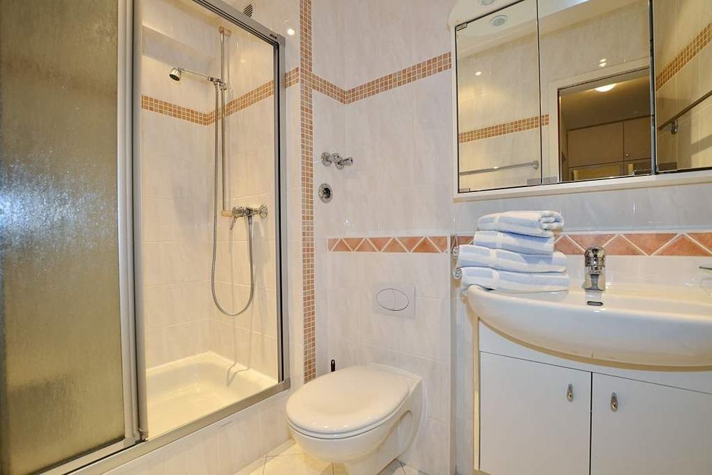 Das neue, modern gestaltete Duschbad mit WC, Waschtisch und Föhn sorgt für einen angenehmen Start in den Tag. Der nach Westen ausgerichtete Balkon mit Sitzmöbeln und Auflagen lädt am Nachmittag zum Sonnen und Entspannen ein.