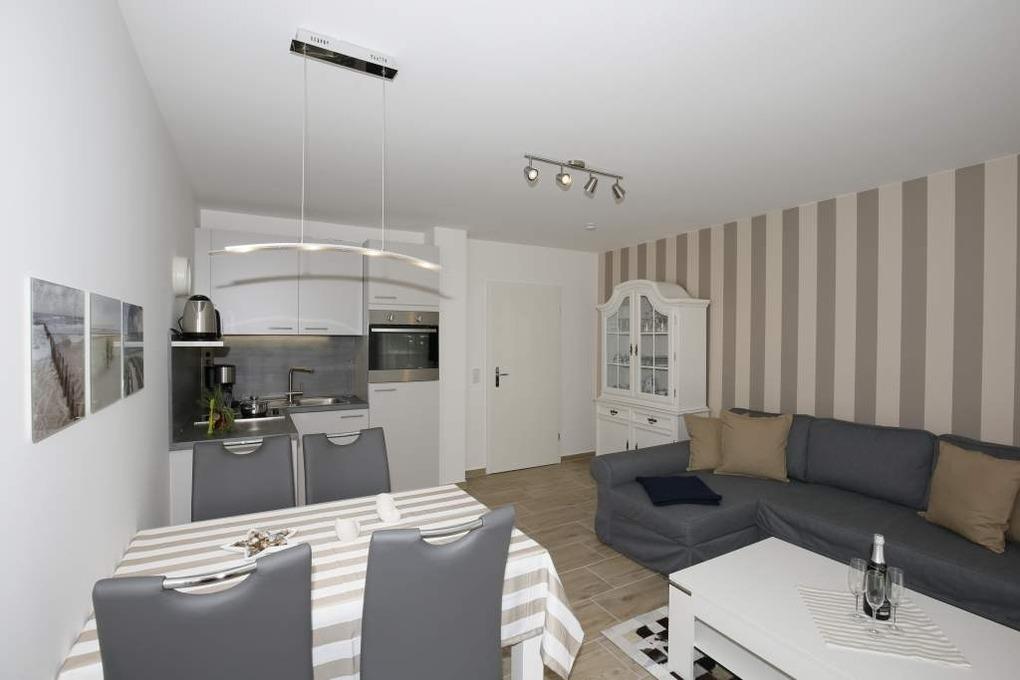 Super schicke 2-Zimmer-Nichtraucher-Ferienwohnung, ca. 45 qm, im EG mit Südterrasse (mit Balkonmöbeln und Auflagen) für 4 Personen.