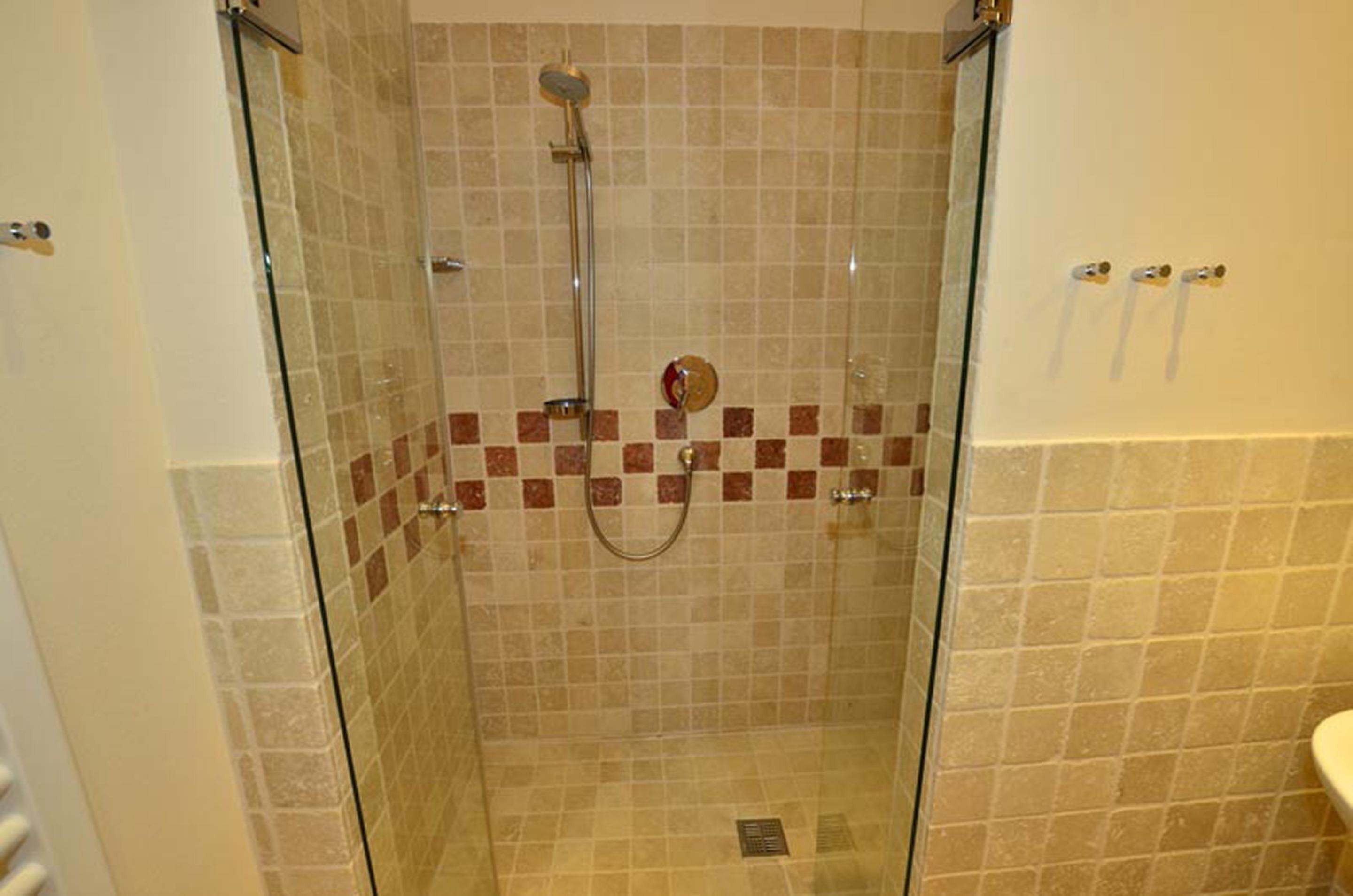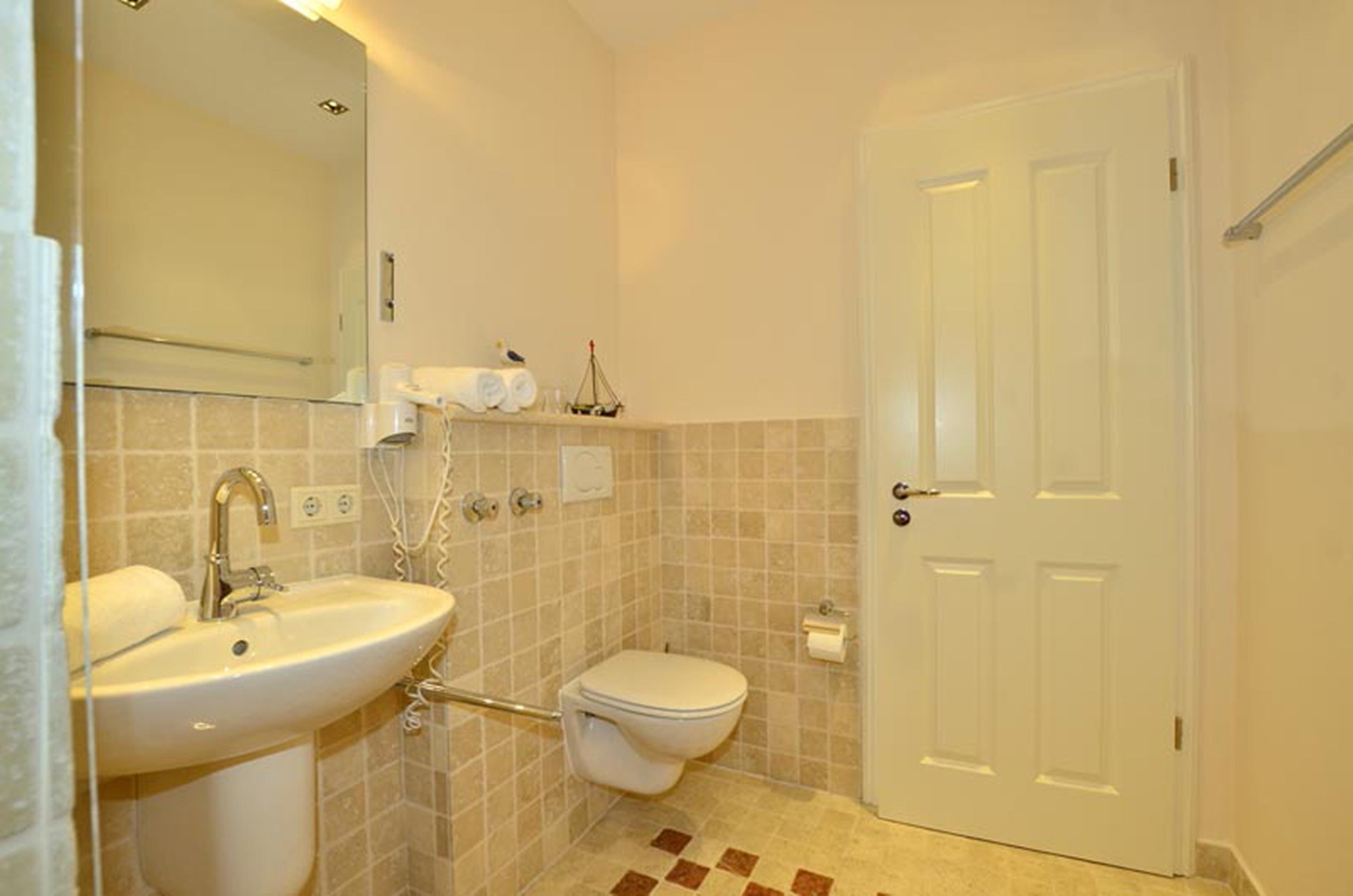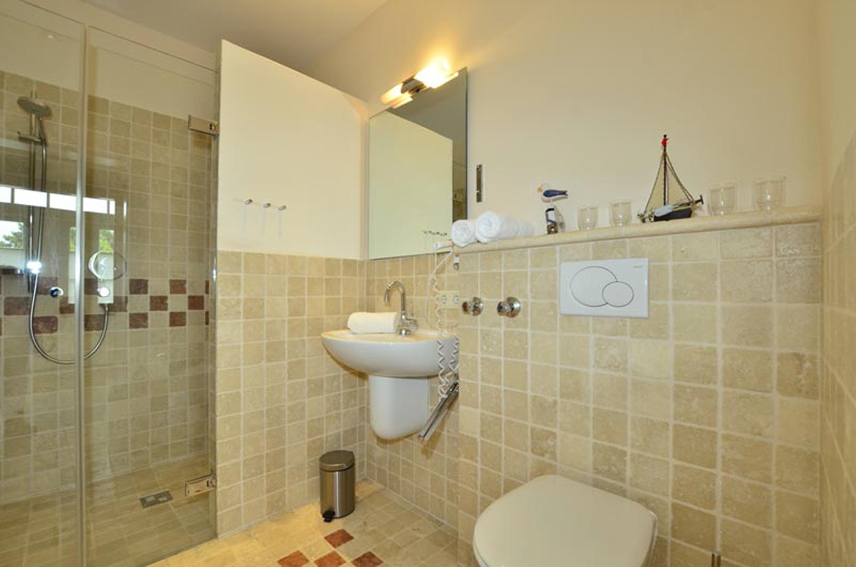 Das moderne Duschbad/WC ist schön geräumig und mit Handtuchheizung und Föhn ausgestattet.