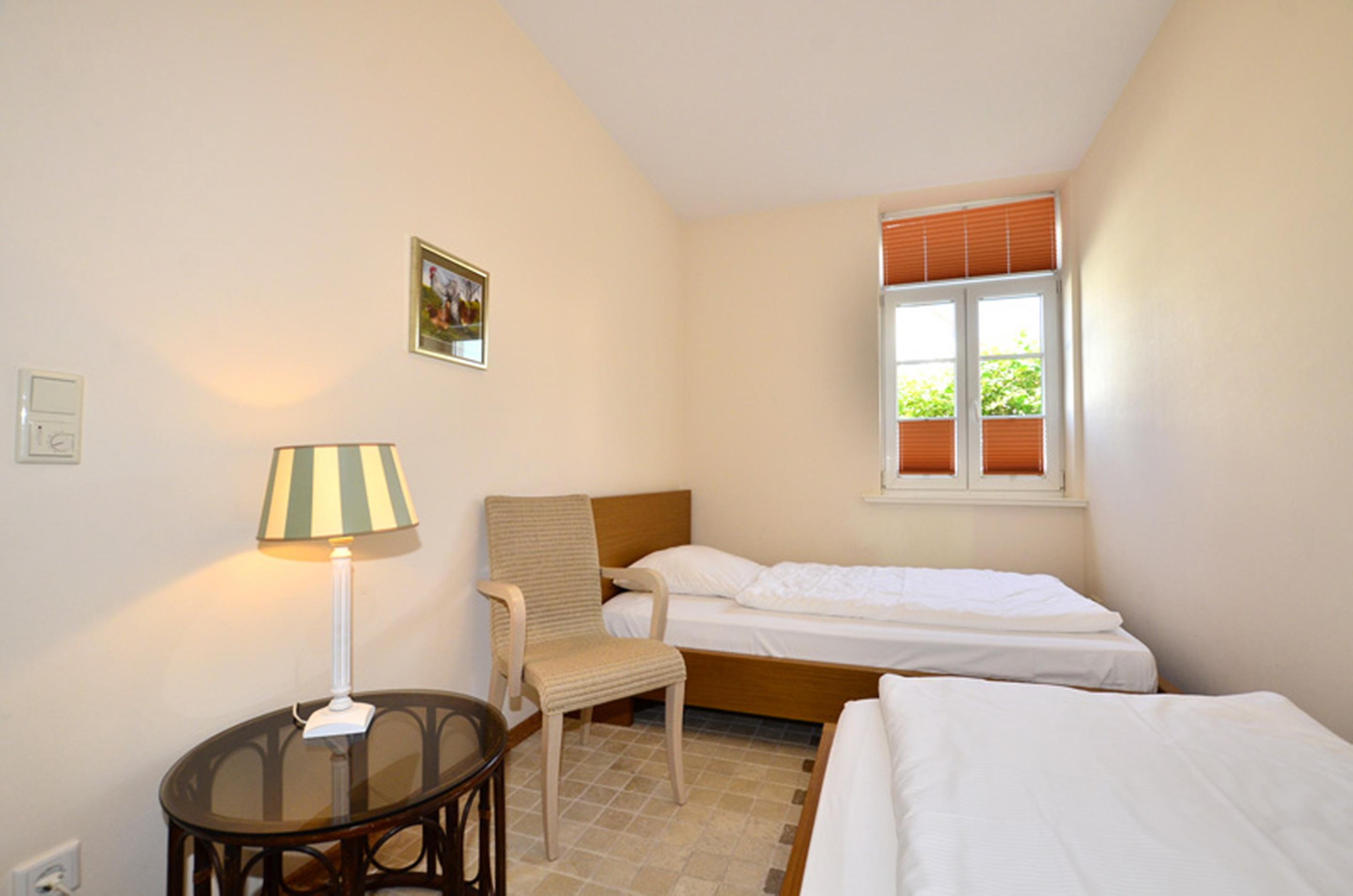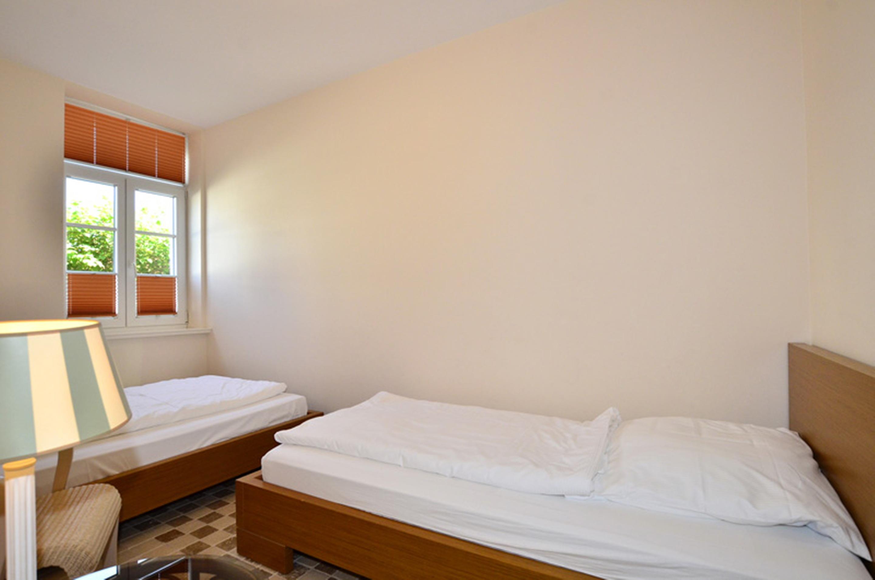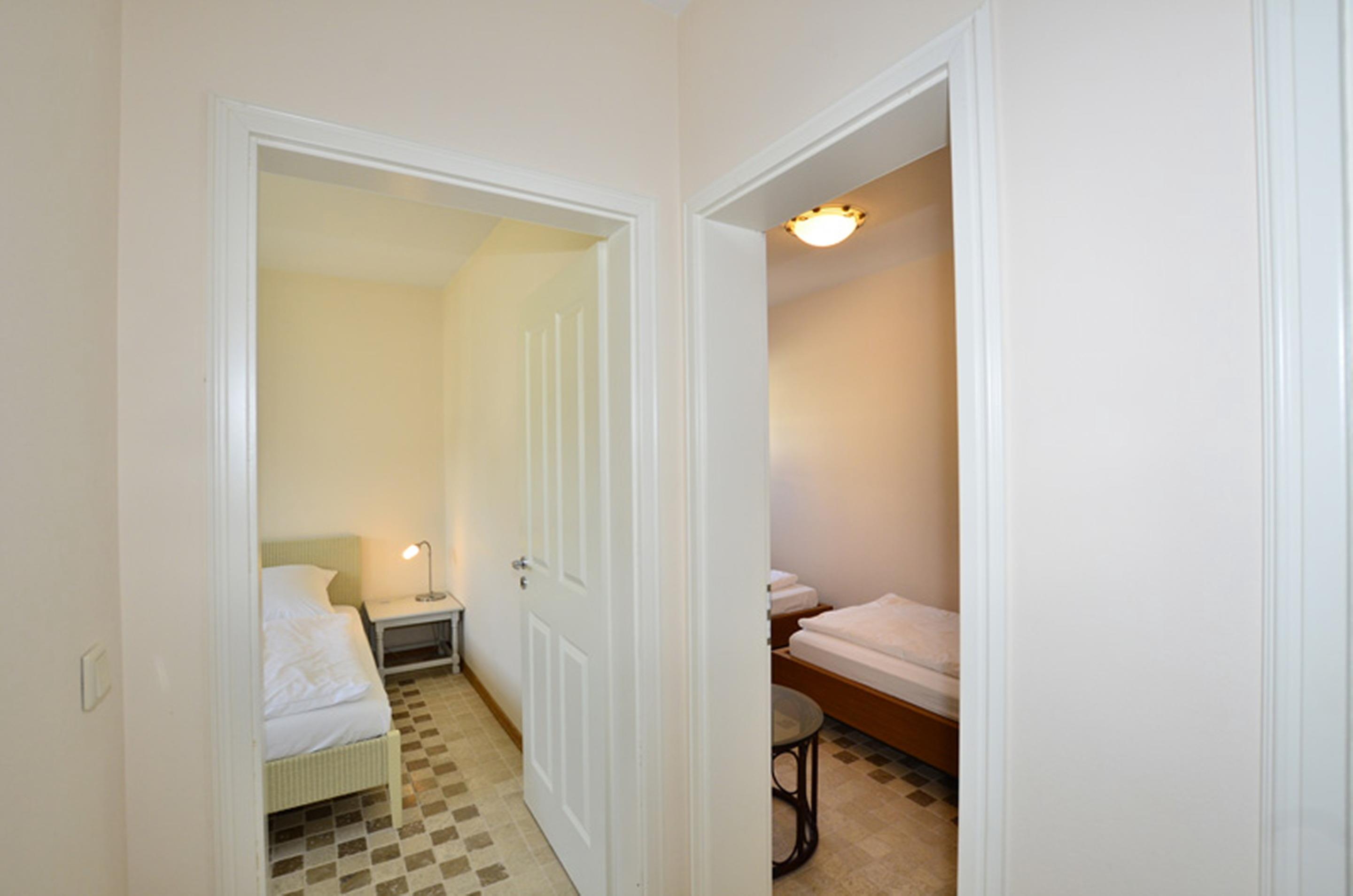 Das eine Schlafzimmer hat ein gutes Doppelbett (Maß 1,80 x 2 Meter, mit zwei Einzelmatratzen) und das andere Schlafzimmer zwei komfortable Einzelbetten (Maß jeweils 2 x 0,90 Meter).