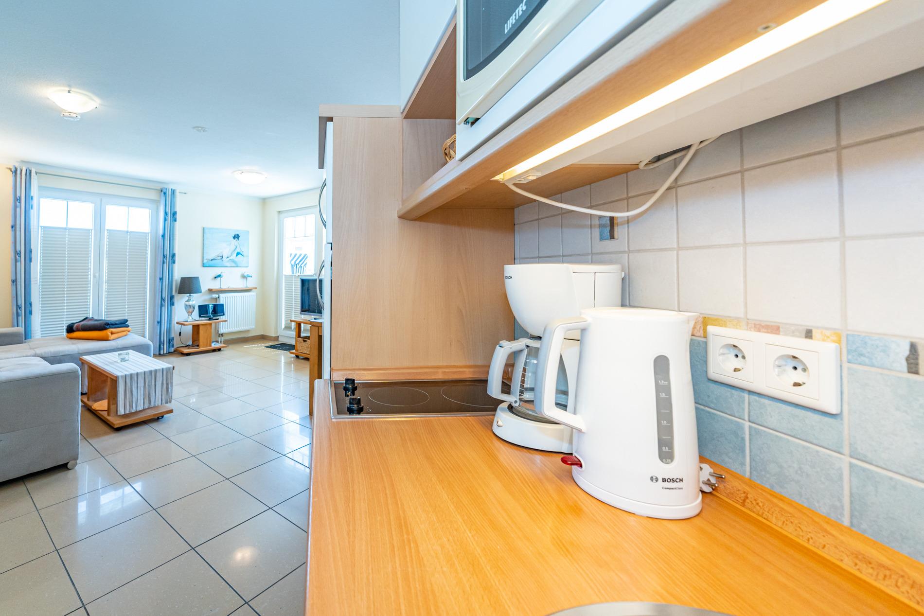 Kaffeemaschine, Wasserkocher und Toaster gehören zur Grundausstattung.