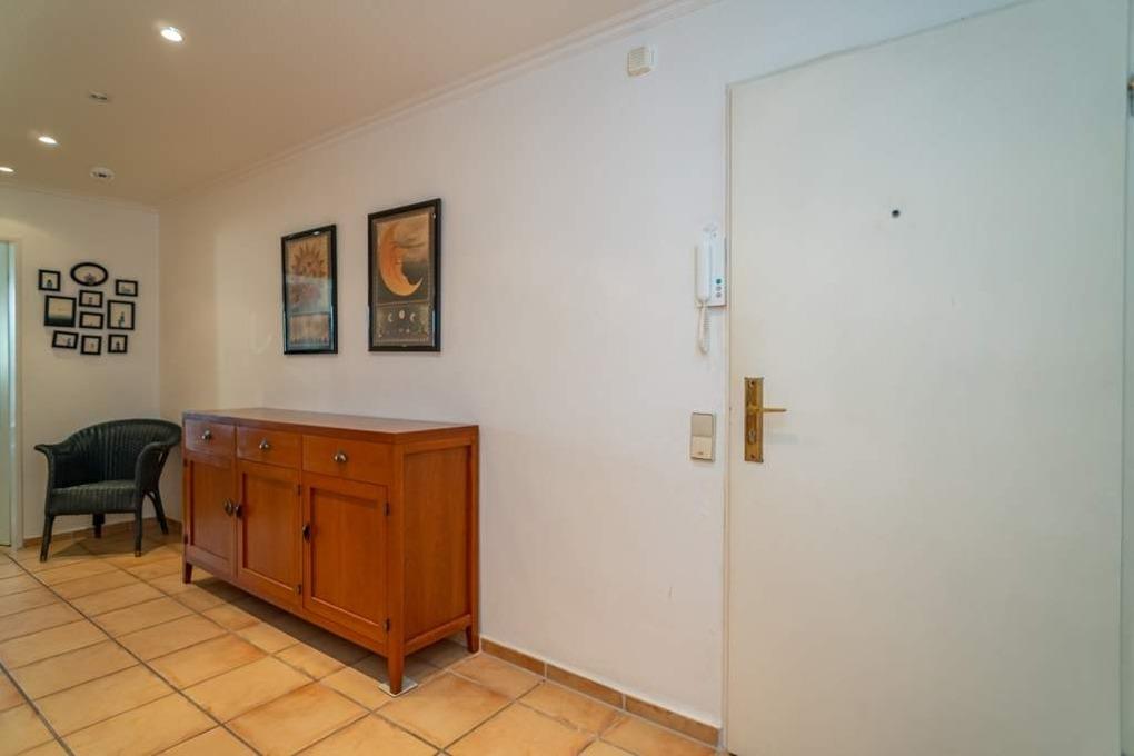 Vom großzügigen Flur mit Garderobe gelangt man in das Wohnzimmer (mit Zugang zur Loggia) mit offener Einbauküche, in das Schlafzimmer und in das neue Badezimmer mit Dusche.