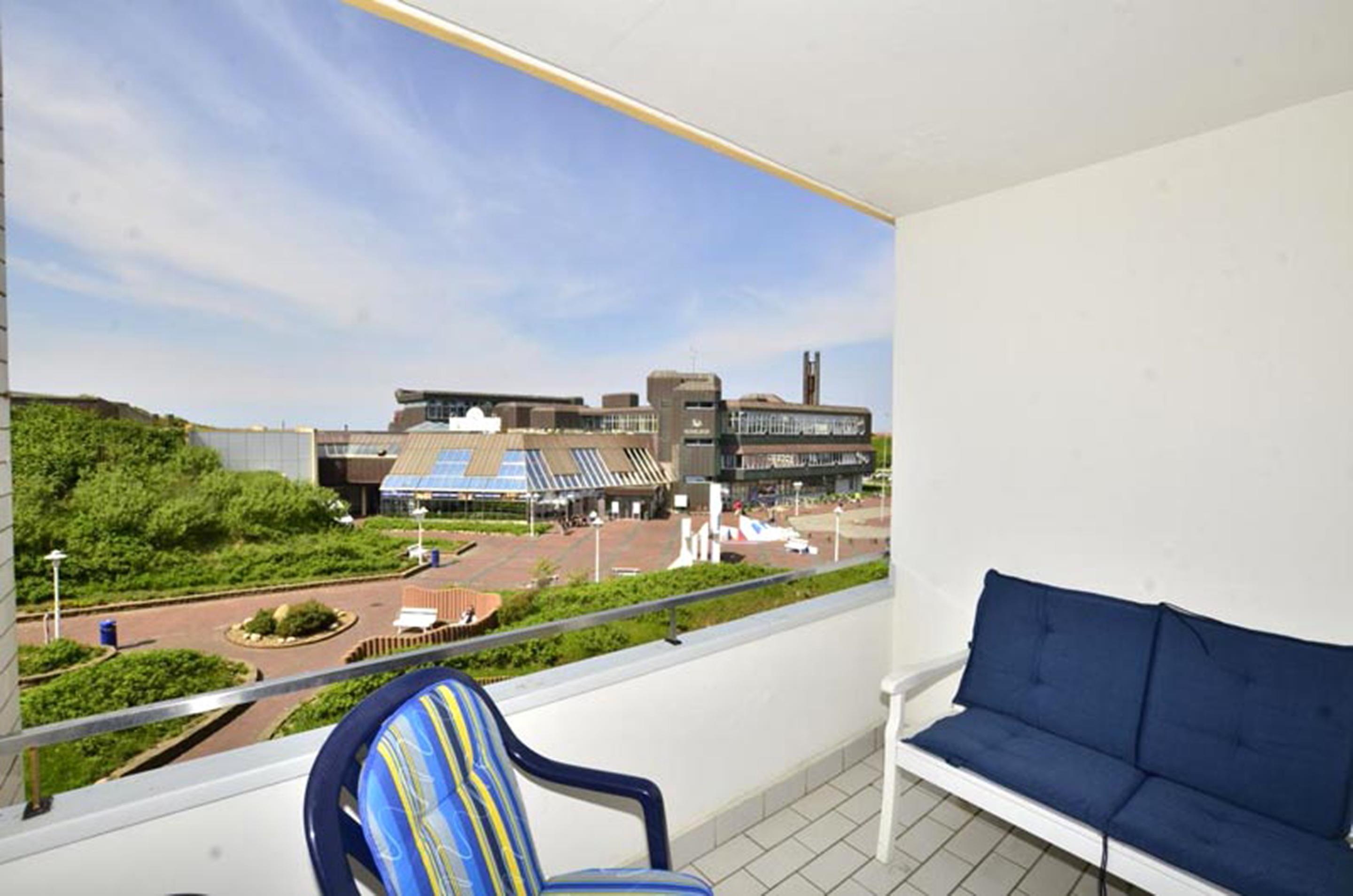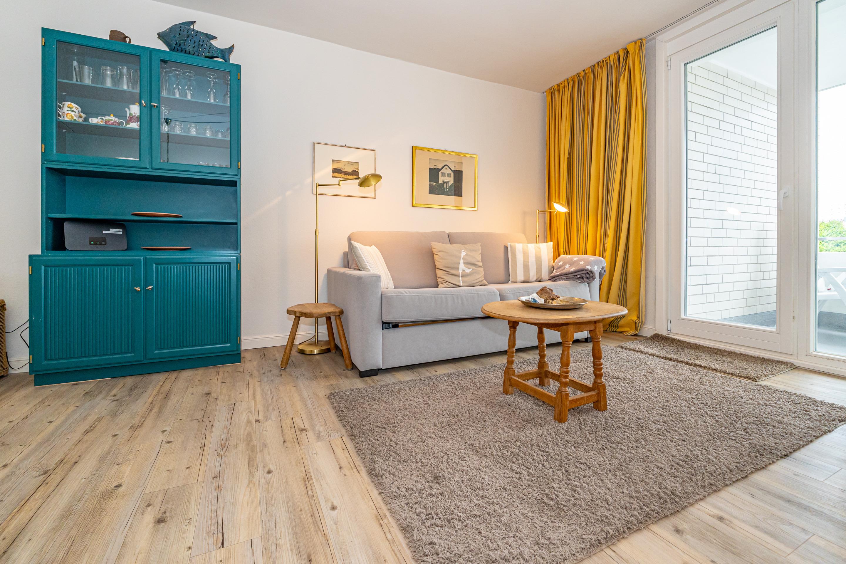 2-Zimmer-Nichtraucher-Ferienwohnung, ca. 48 m² in der 2. Etage zur Seeseite mit Westloggia (Nachmittagssonne, mit Balkonmöbeln und Auflagen) für max. 3 Personen.