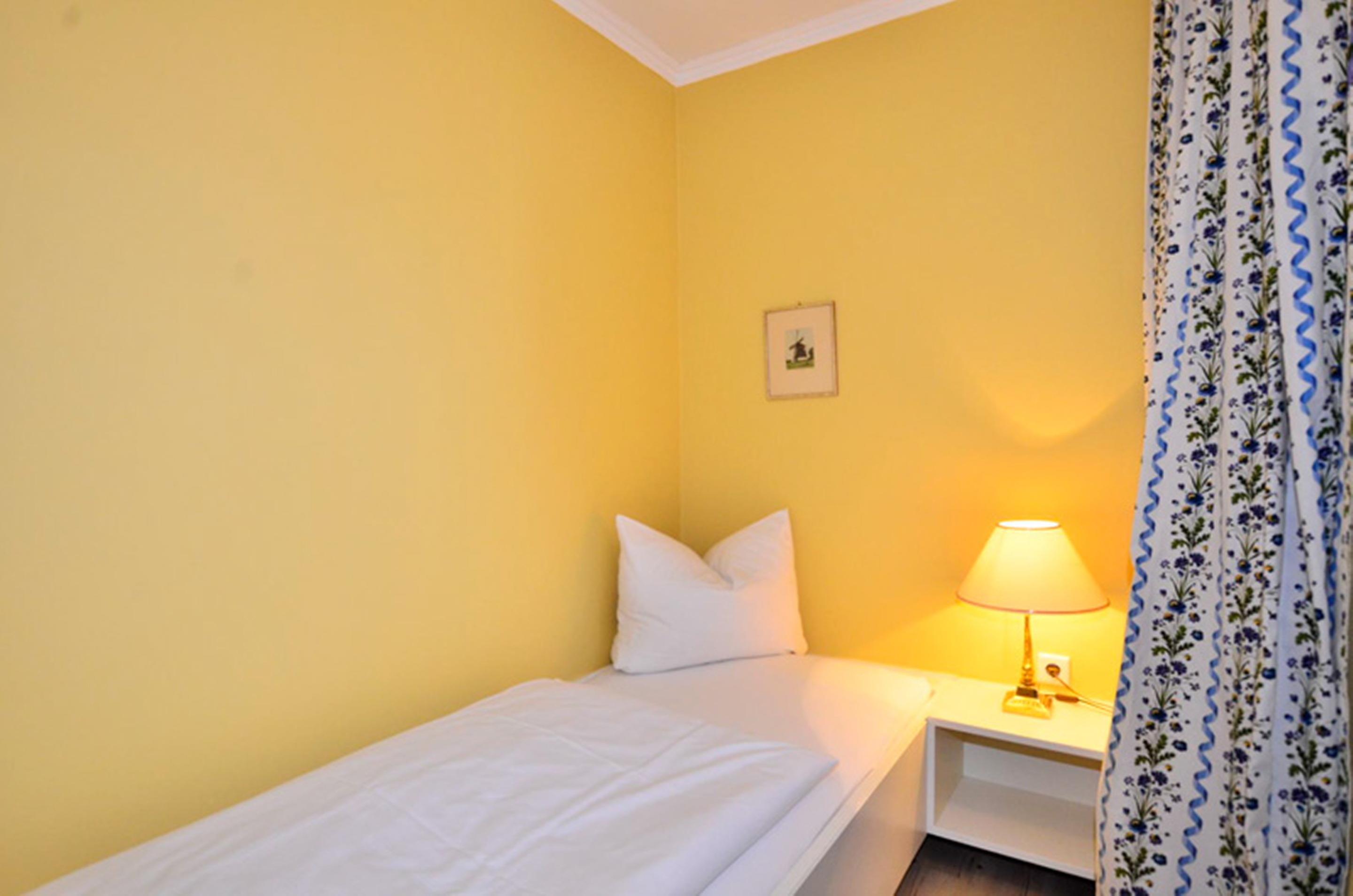 Das kleine Schlafzimmer hat ein Einzelbett und ein Fenster.