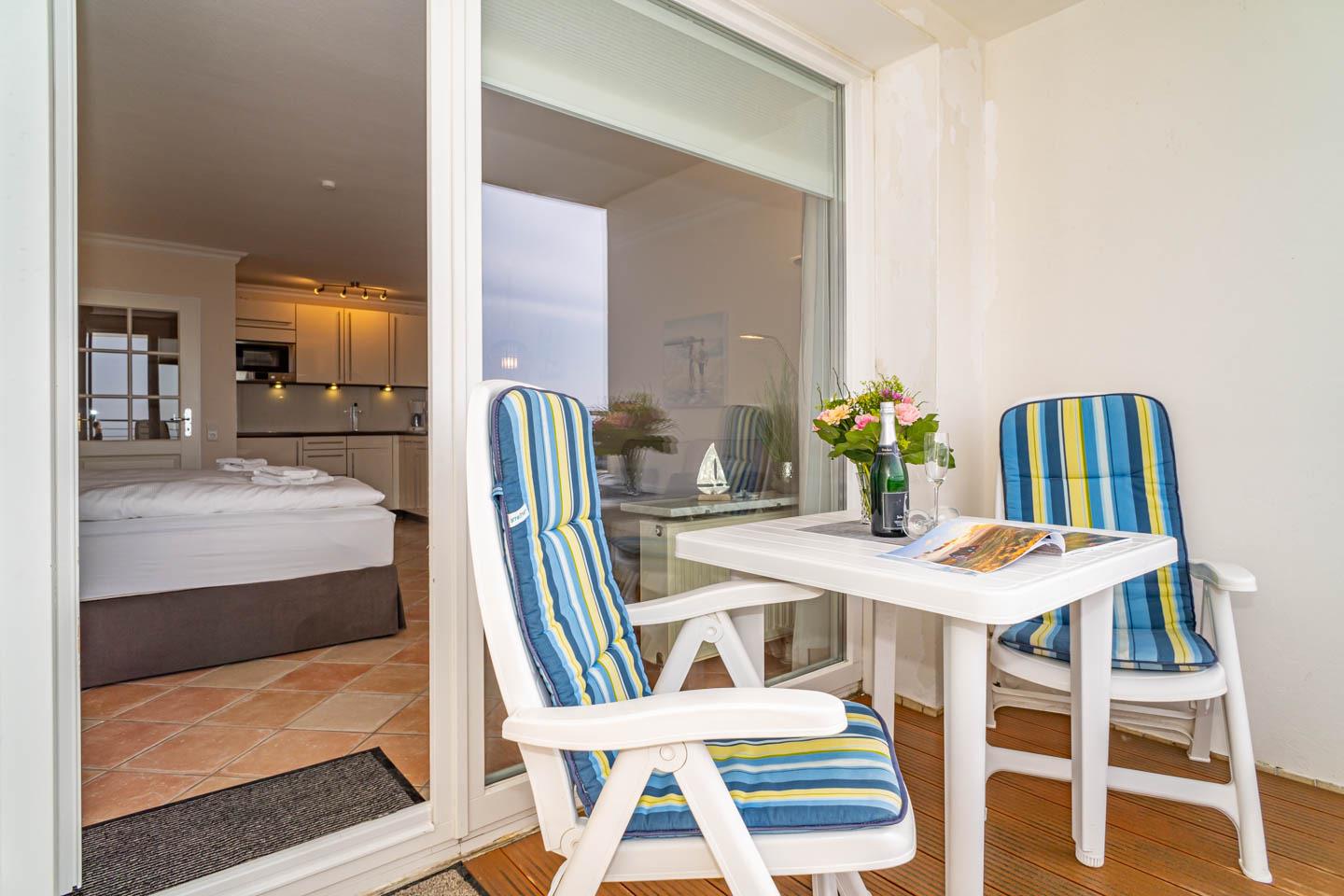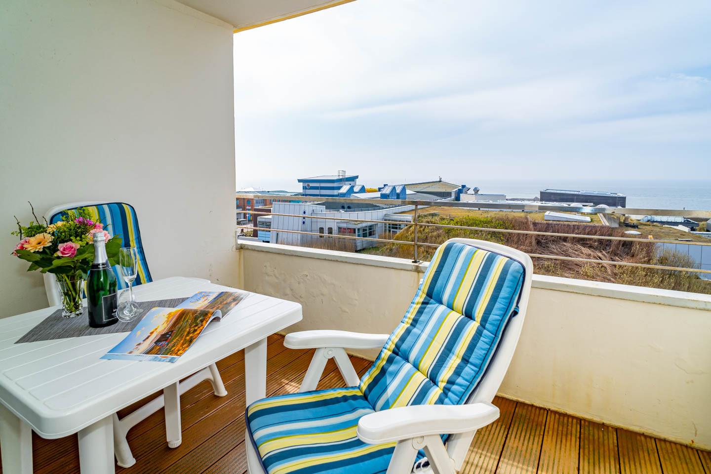Diese großzügige, komplett renovierte 1-Zimmer-Nichtraucher-Ferienwohnung (ca. 43 qm) in der 5. Etage besticht durch ihre Seeblicklage und eine Westloggia, die Ihnen am Nachmittag sonnige Stunden mit komfortablen Balkonmöbeln und Auflagen bietet - ideal für 2 Personen.