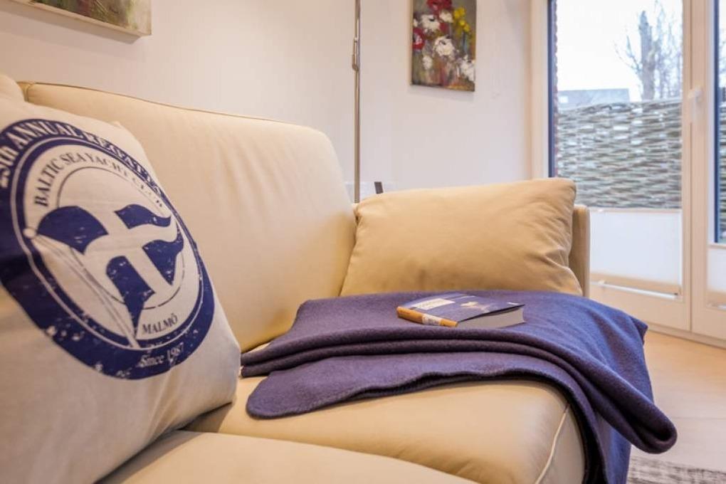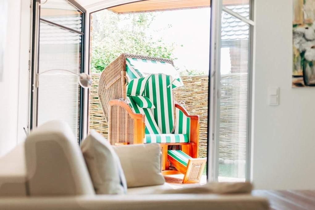 Luxuriöse 2-Zimmer-Nichtraucher-Ferienwohnung auf einer Ebene (barrierefrei), ca. 58 qm im Erdgeschoss mit Südostterrasse mit Strandkorb und kleinem Garten für 2 Personen