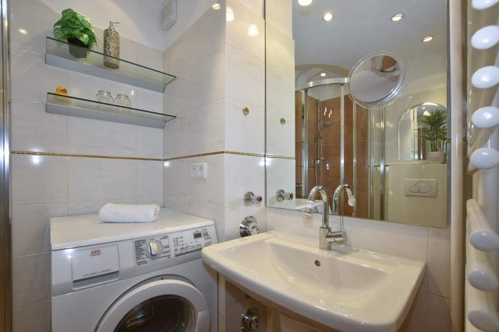 Im Duschbad befinden sich eine Dusche, ein WC, ein Waschtisch und ein Waschtrockner.