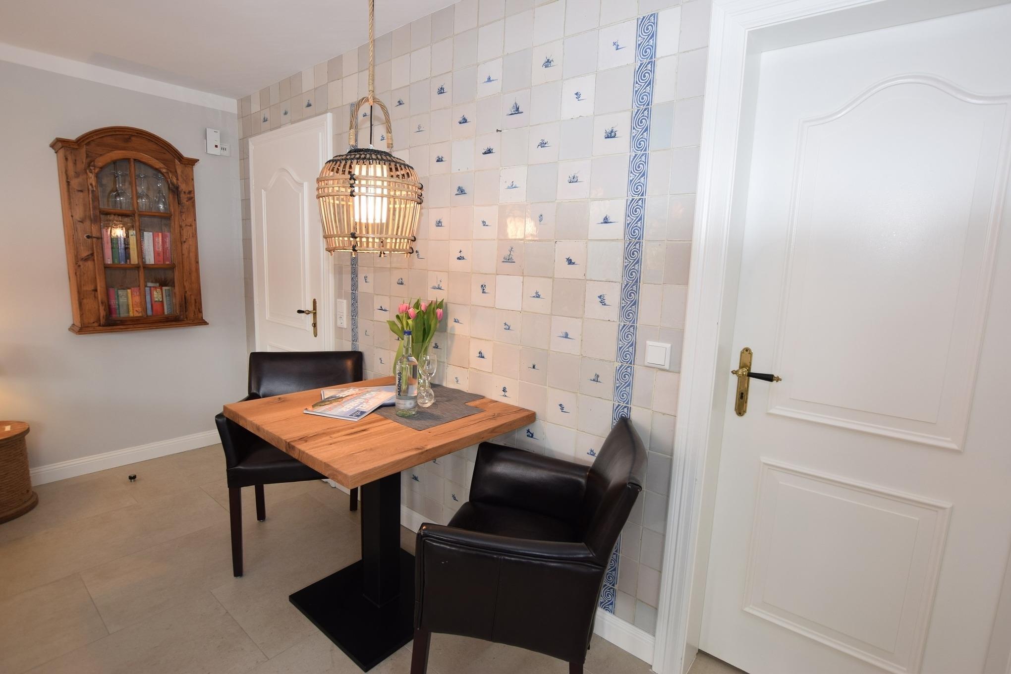 Die Ferienwohnung ist ideal für 2 Personen geeignet. Sie verzaubert mit neuer, stilvoller und harmonischer Einrichtung mit antiken Delfter-Fliesen an den Wänden.