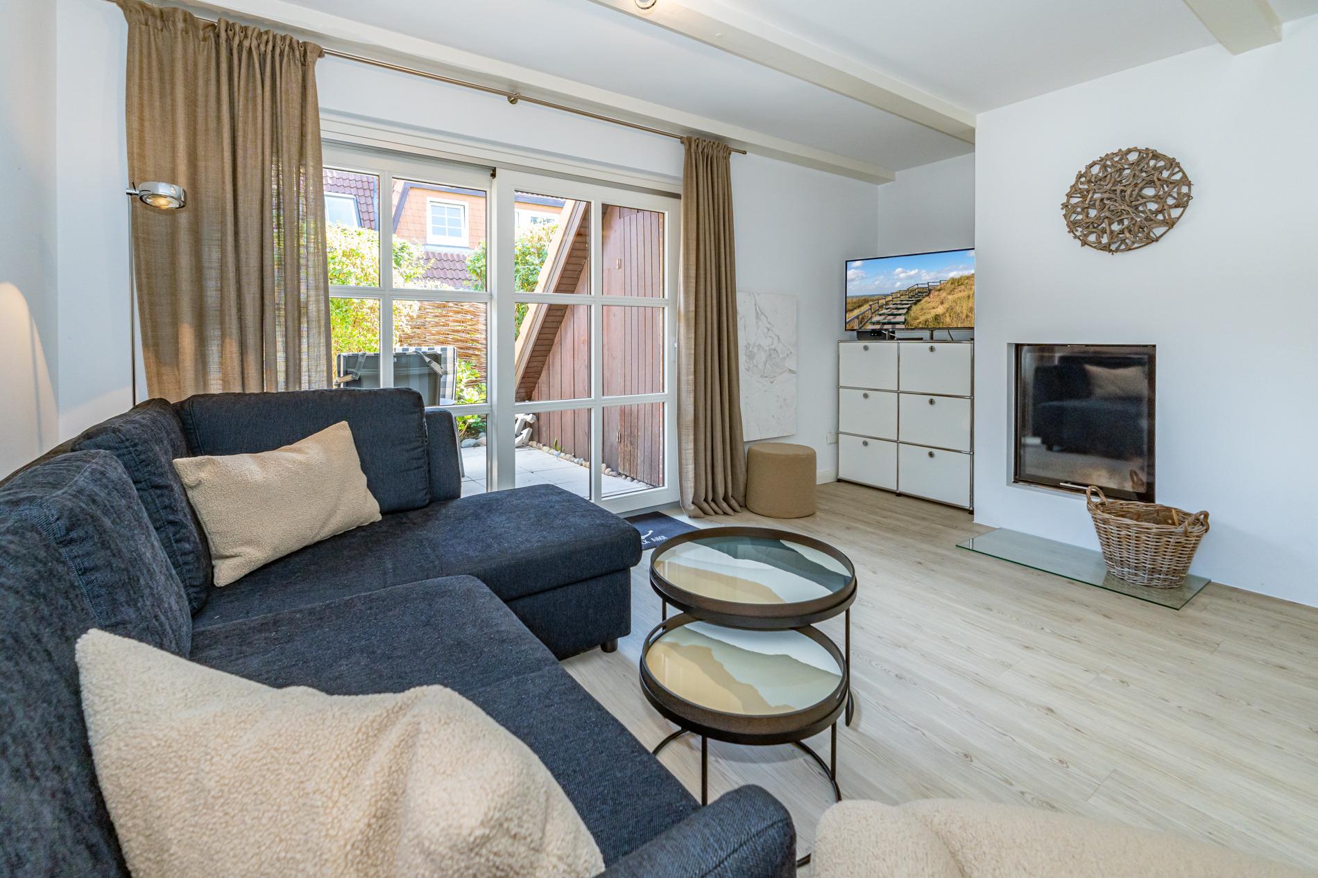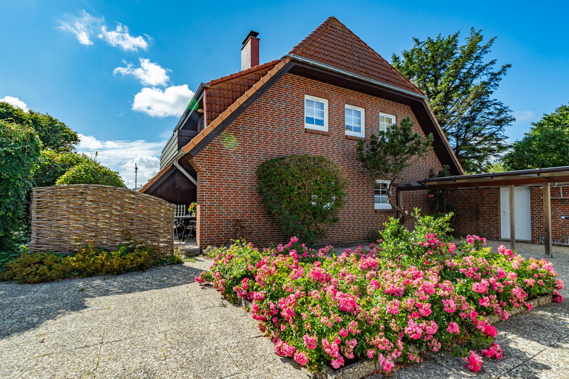 Im Süden Westerlands in ruhiger, strandnaher Lage mit Einzelgarage, geschütztem Fahrradabstellplatz, Südterrasse und Kamin!