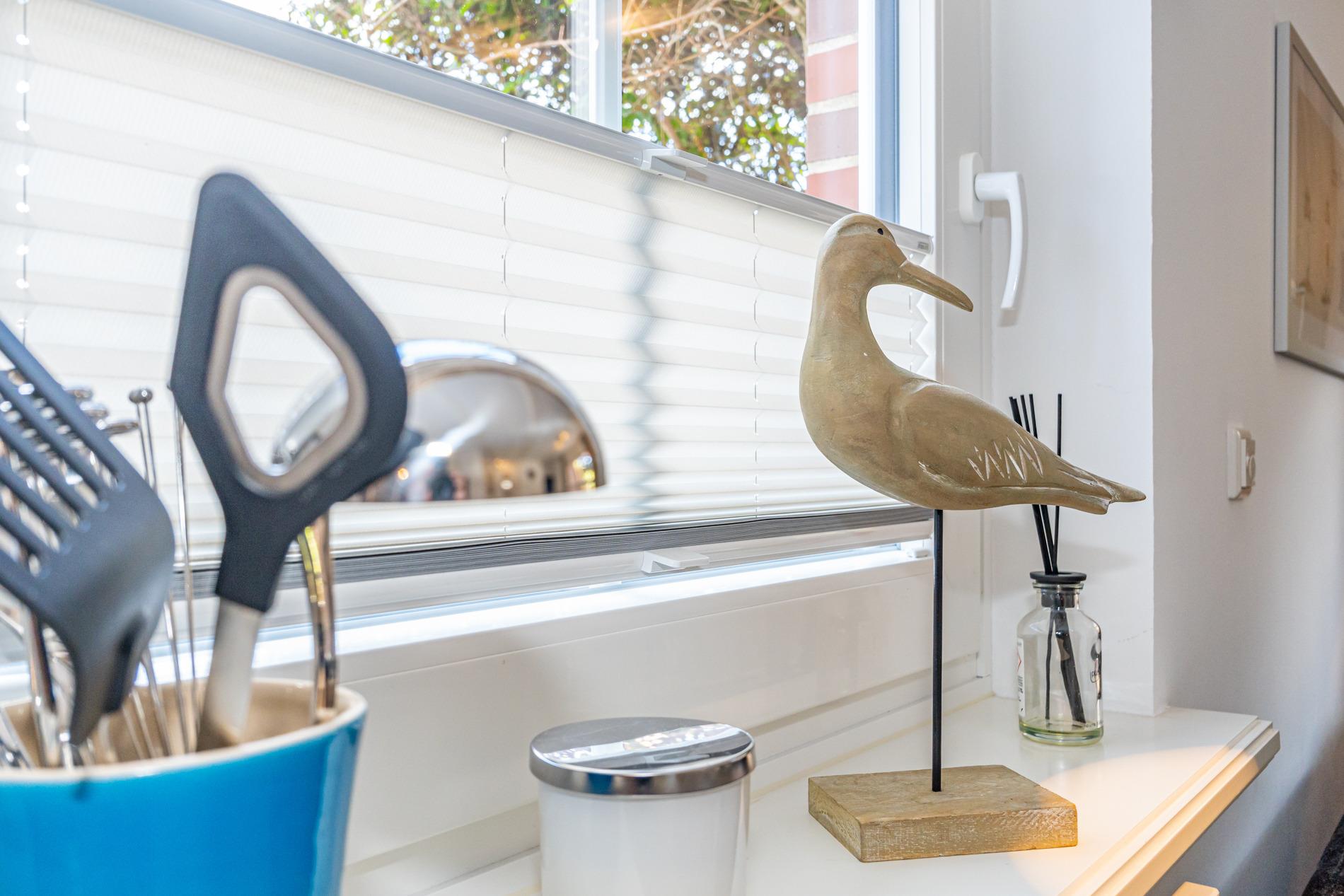 Die offene Einbauküchenzeile im Wohnzimmer besitzt einen Geschirrspüler, ein Ceranfeld und einen Kühlschrank mit 3*-Gefrierfach. Nespresso-Maschine (Kapseln), Kaffeemaschine, Wasserkocher und Toaster gehören zur Grundausstattung.