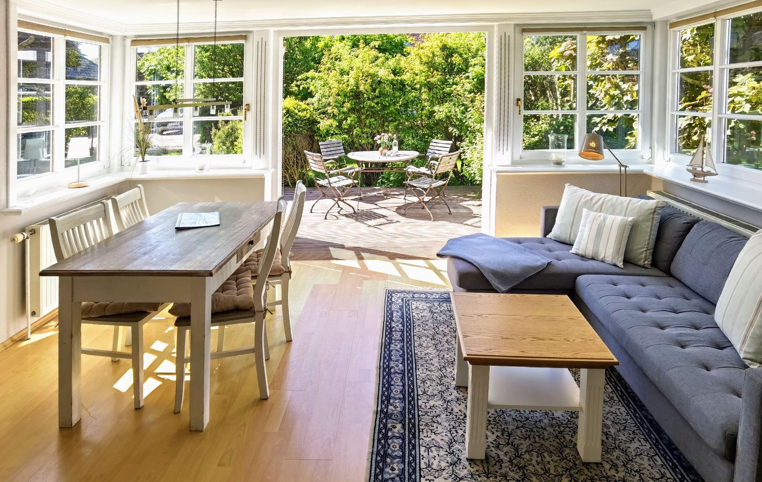 Großzügig und sehr komfortabel präsentiert sich das 3-Zimmer-Nichtraucher-Hausteil (ca. 75 m²) im Erdgeschoss des Einzelhauses für max. 4 Personen mit Sonnenterrasse (Südausrichtung, mit Terrassenmöbeln und Auflagen)