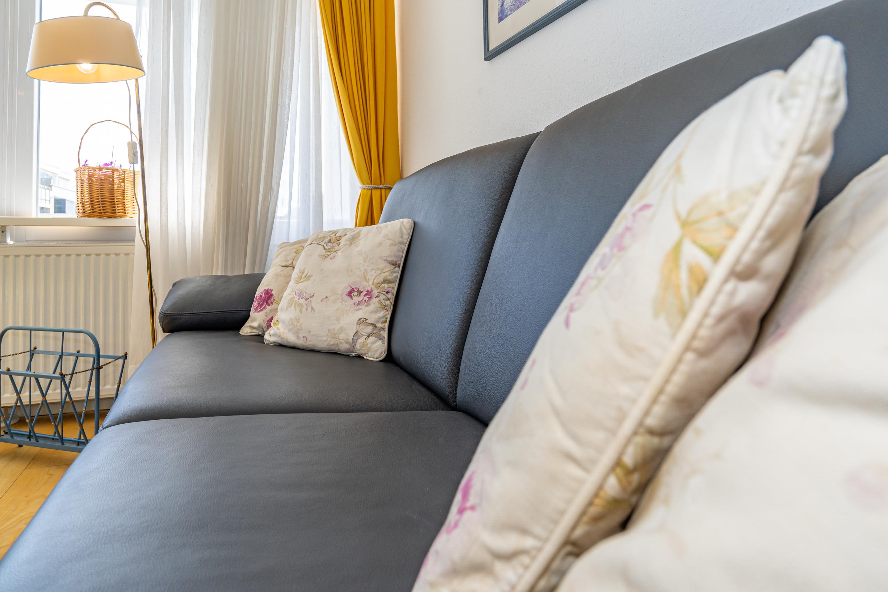 2-Zimmer-Nichtraucher-Ferienwohnung, ca. 66 m², in der 3. Etage für bis zu 4 Personen, mit Süd-Balkon mit "kleinem Meeresblick" vom Wohn- und Schlafzimmer aus.