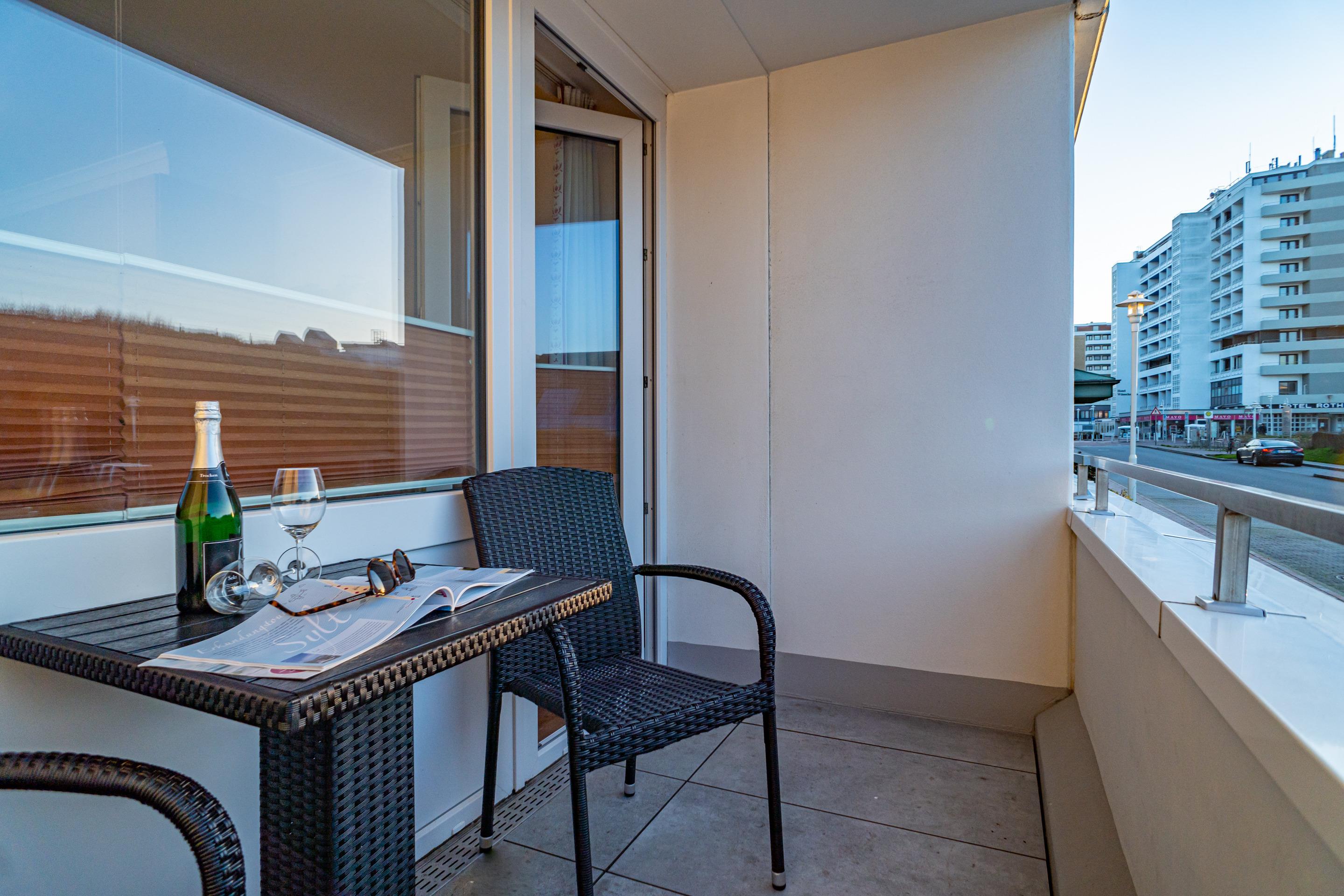 1-Zimmer-Nichtraucher-Ferienwohnung (ca. 25 qm) im Hochparterre zur Seeseite mit Westloggia (Nachmittagssonne, mit Balkonmöbeln und Auflagen) für max. 2 Personen.