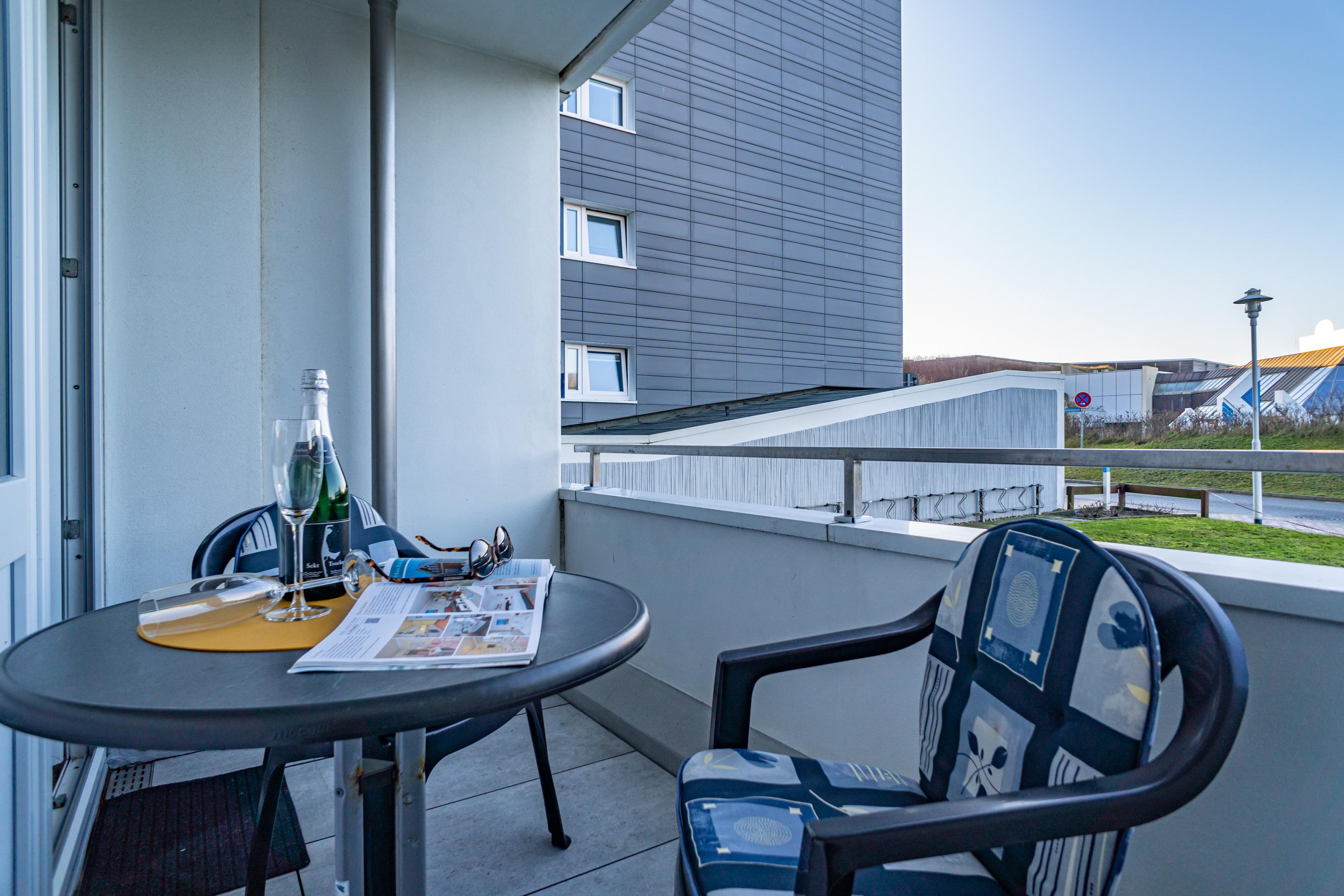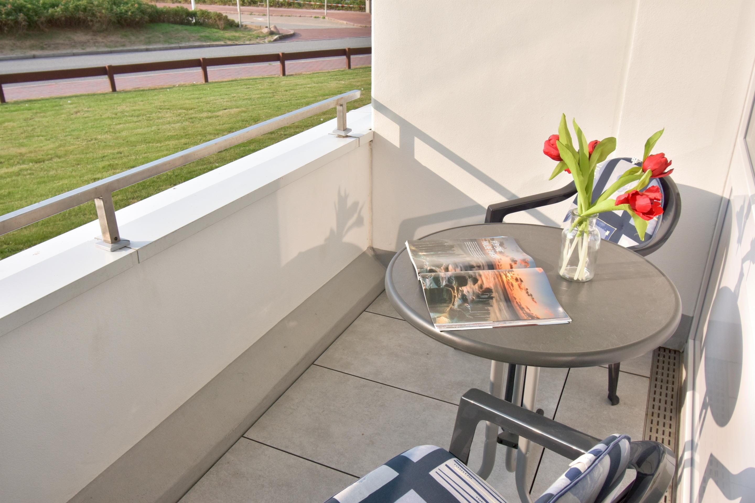 1-Zimmer-Nichtraucher-Ferienwohnung mit gutem Komfort (ca. 24 qm) im Hochparterre zur Seeseite mit Westloggia (Nachmittagssonne, mit Balkonmöbeln) für max. 2 Personen.