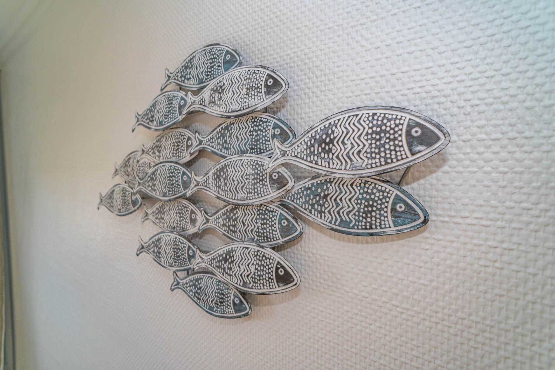 Die Küchenzeile hat einen Geschirrspüler, ein Cerankochfeld, eine Mikrowelle mit Grill und einen Kühlschrank mit 3-Sterne-Gefrierfach. Kaffeemaschine, Nespresso-Kapselmaschine, Wasserkocher, Eierkocher und Toaster gehören zur Grundausstattung.