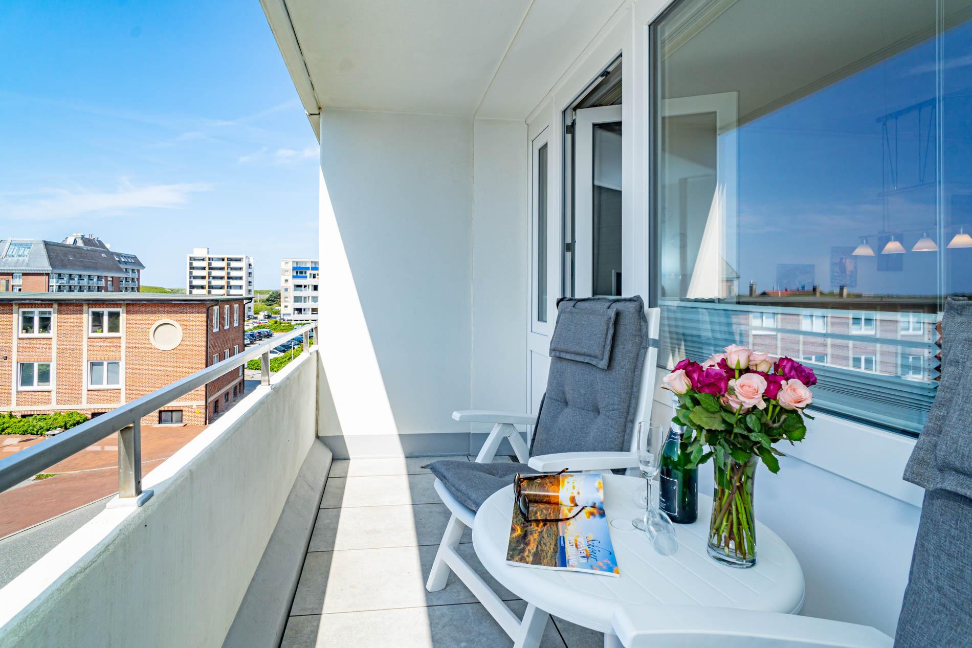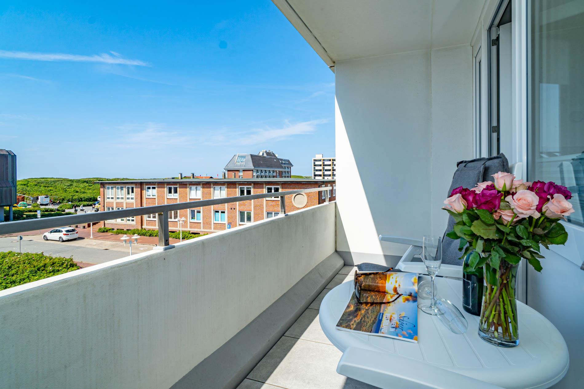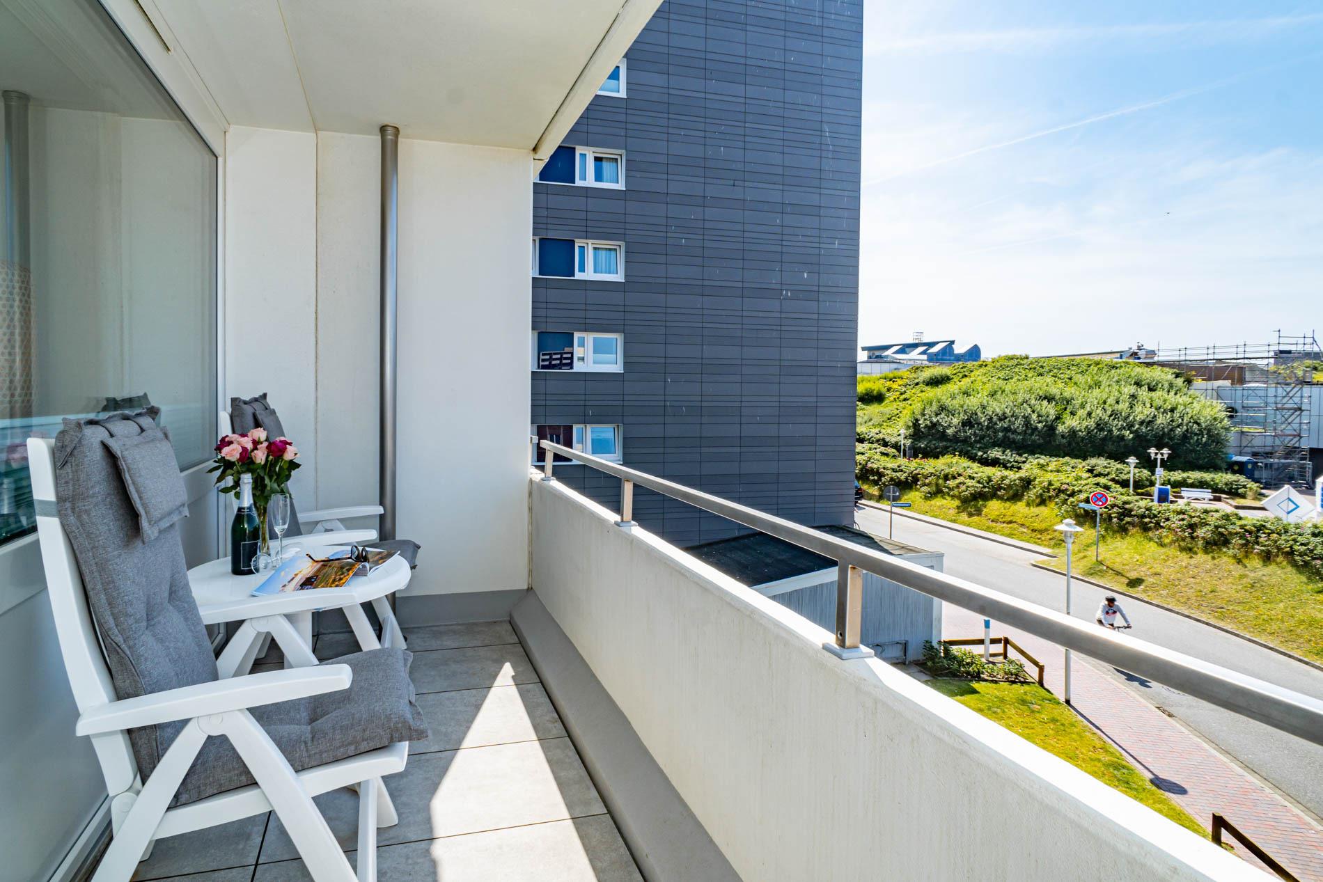 Gemütliche, schön eingerichtete 1,5-Zimmer-Nichtraucher-Ferienwohnung (ca. 50 qm) in der 2. Etage zur Seeseite mit Westloggia (Nachmittagssonne, mit Balkonmöbeln und Auflagen) für max. 2 Personen.
