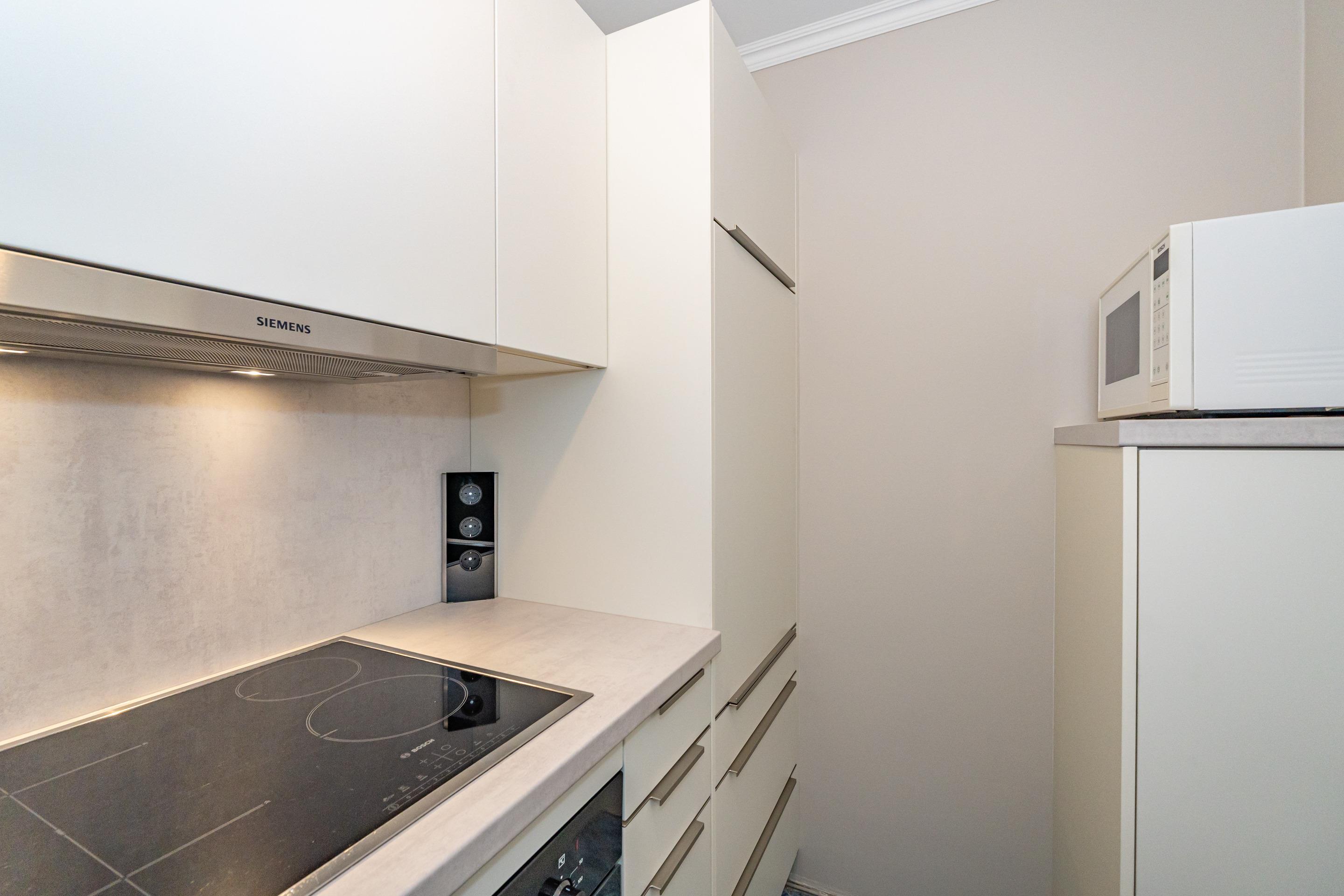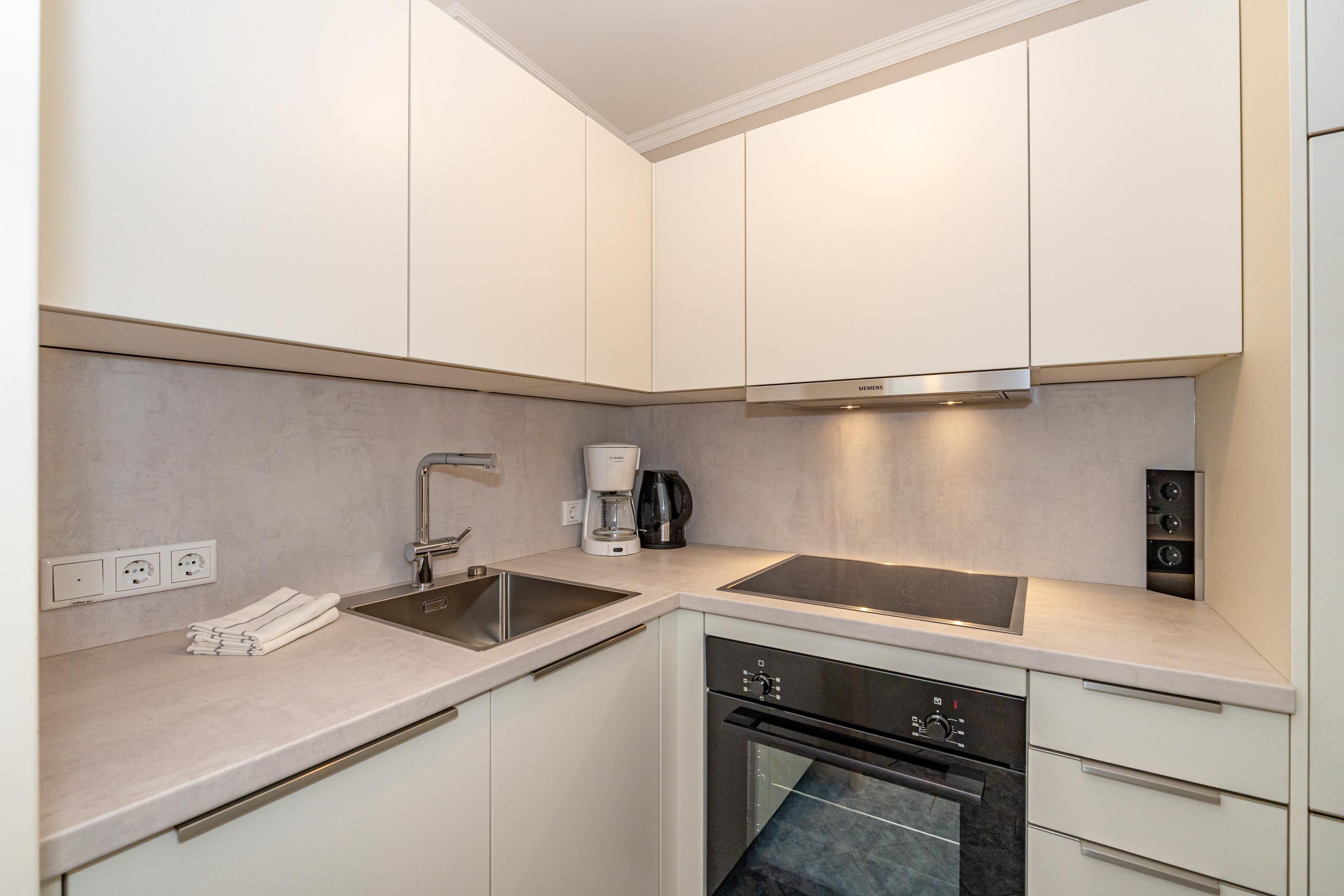 Die Küche hat einem Geschirrspüler, einen Herd mit Backofen und 4-Platten-Kochfeld, Mikrowelle, Kühlschrank mit 3* Gefrierfach. Kaffeemaschine, Wasserkocher und Toaster gehören zur Grundausstattung.