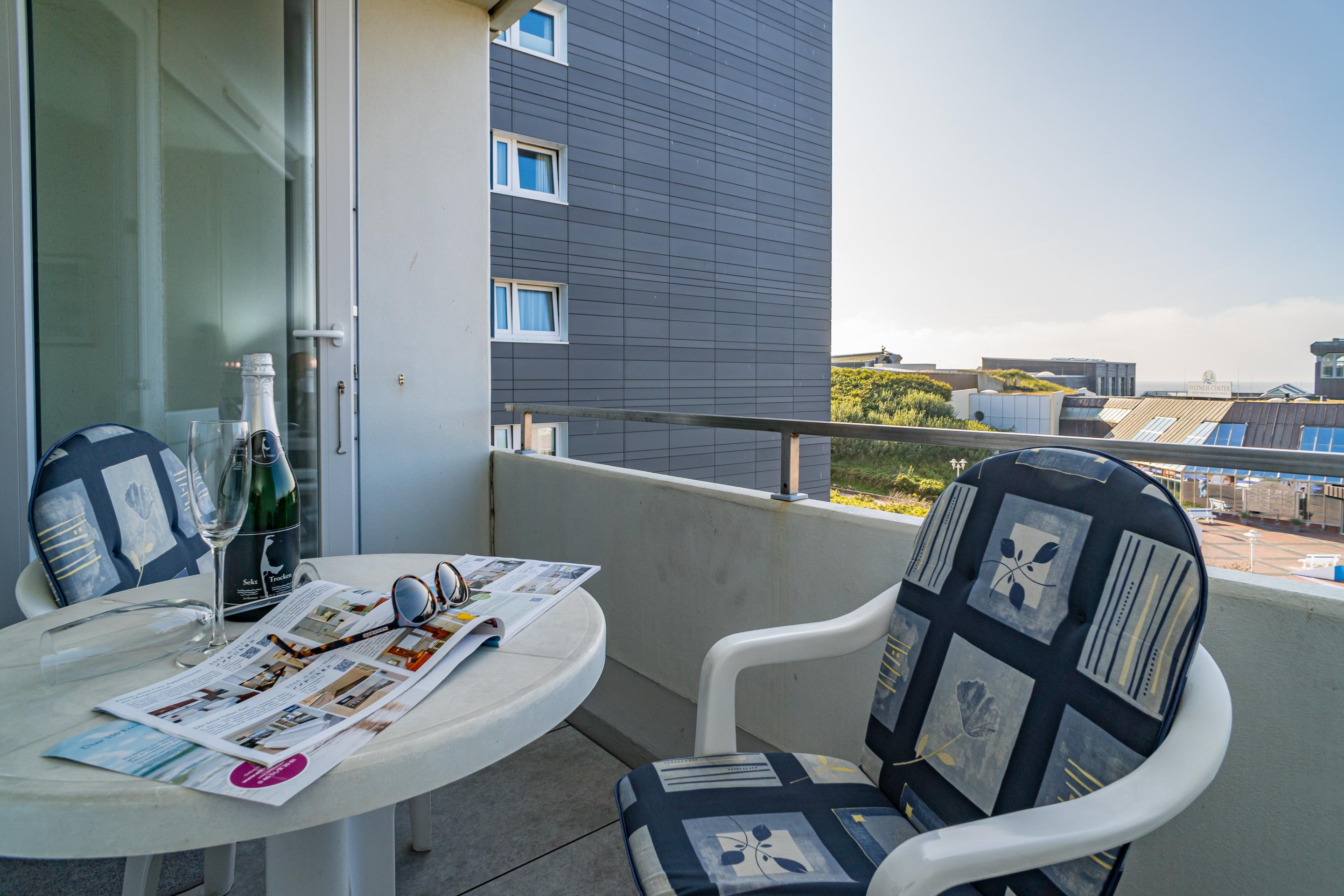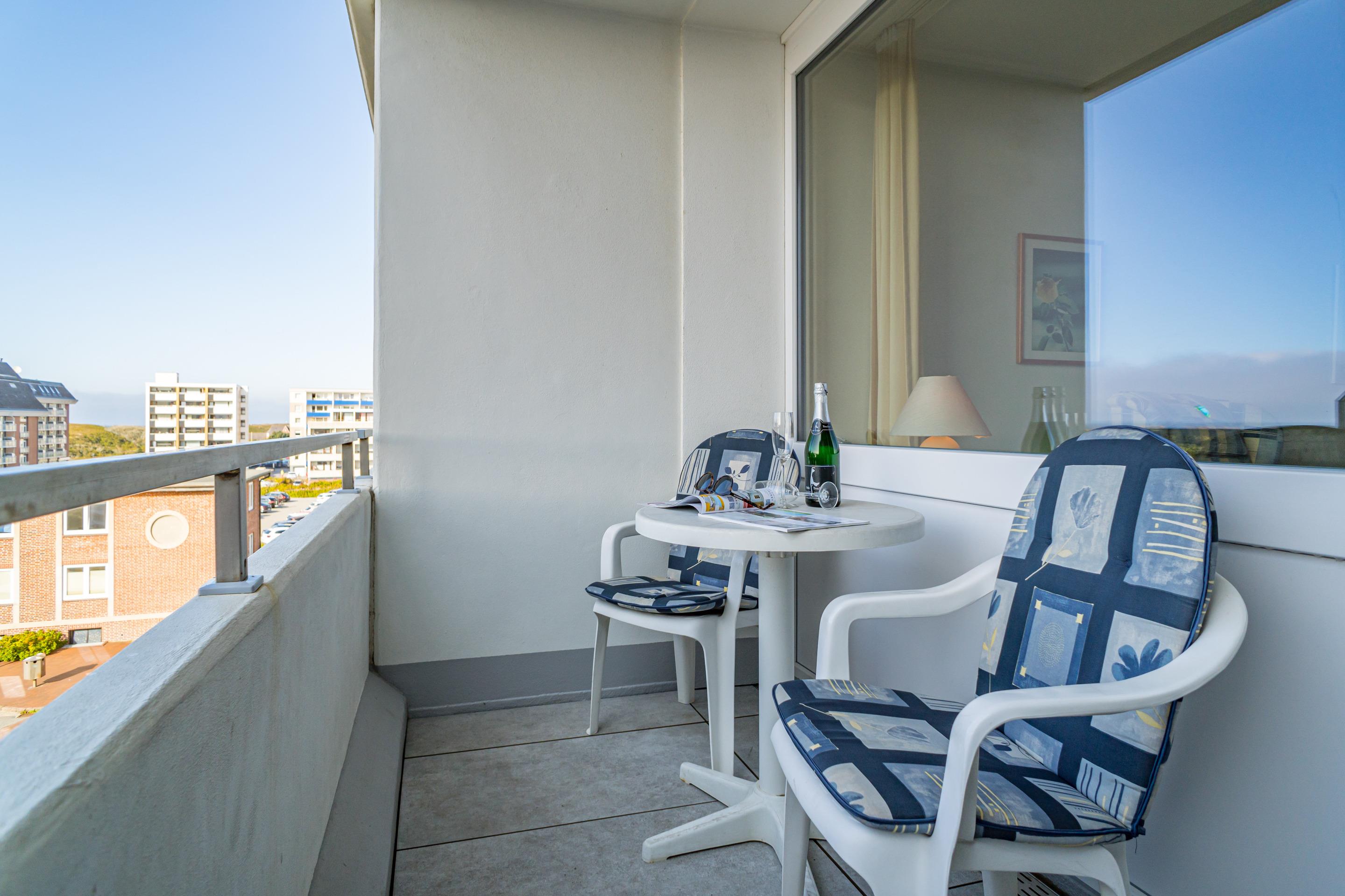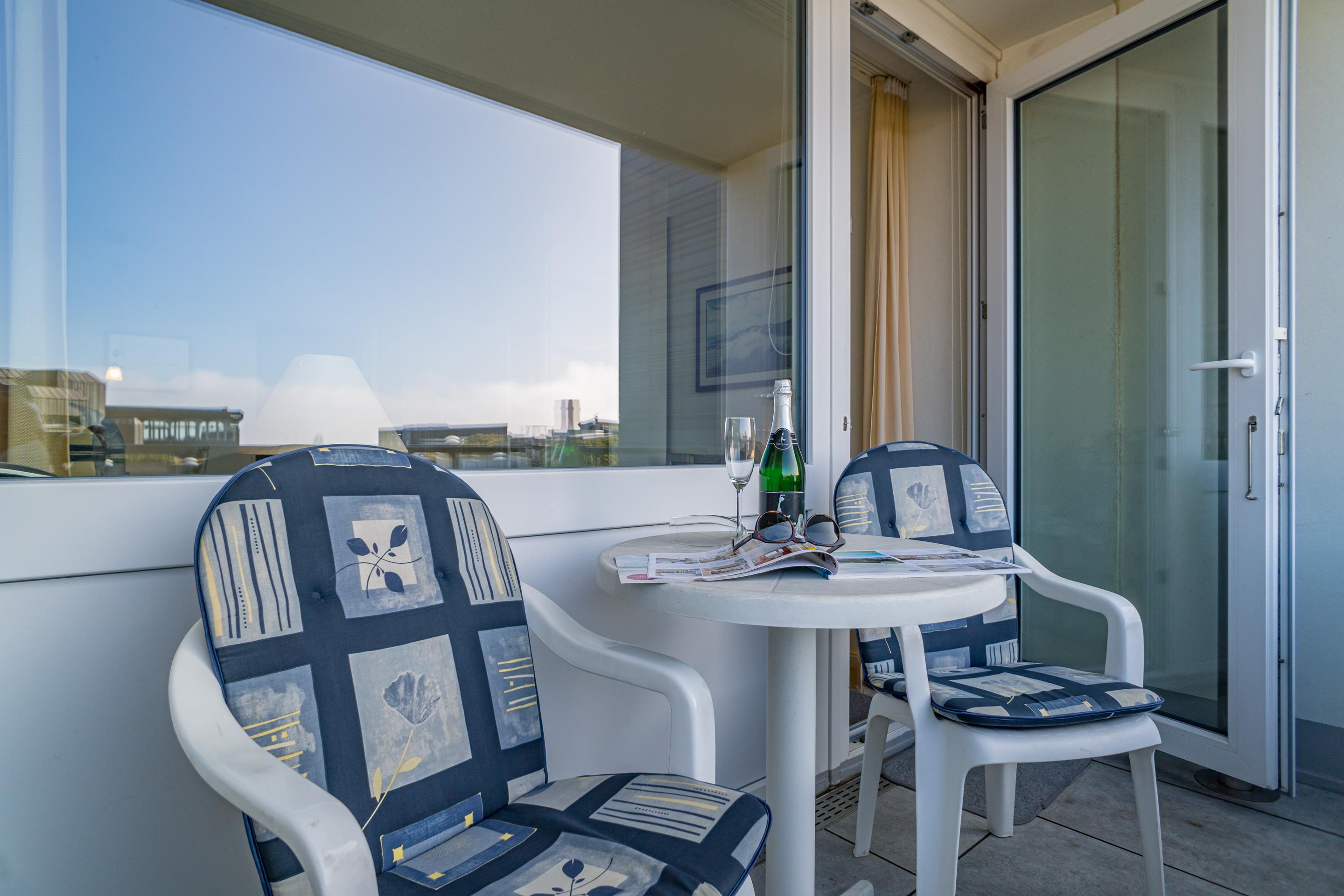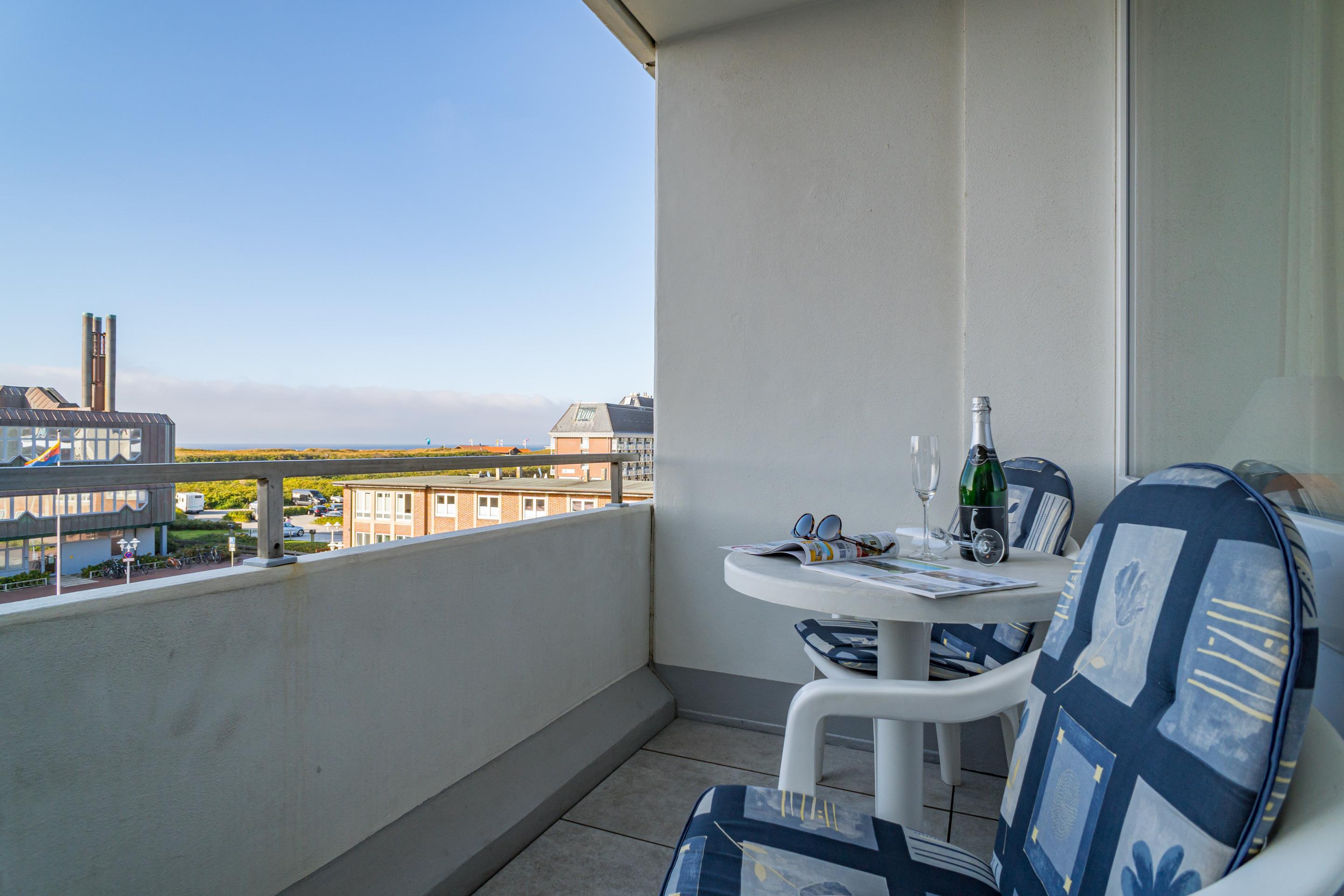 1-Zimmer-Nichtraucher-Ferienwohnung (ca. 25 qm) in der 3. Etage mit Meerblick zur Seeseite mit Westloggia (Nachmittagssonne, mit Balkonmöbeln und Auflagen) für max. 2 Personen.
