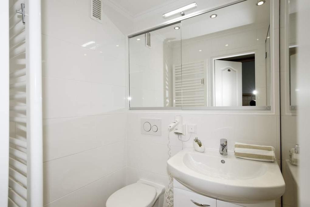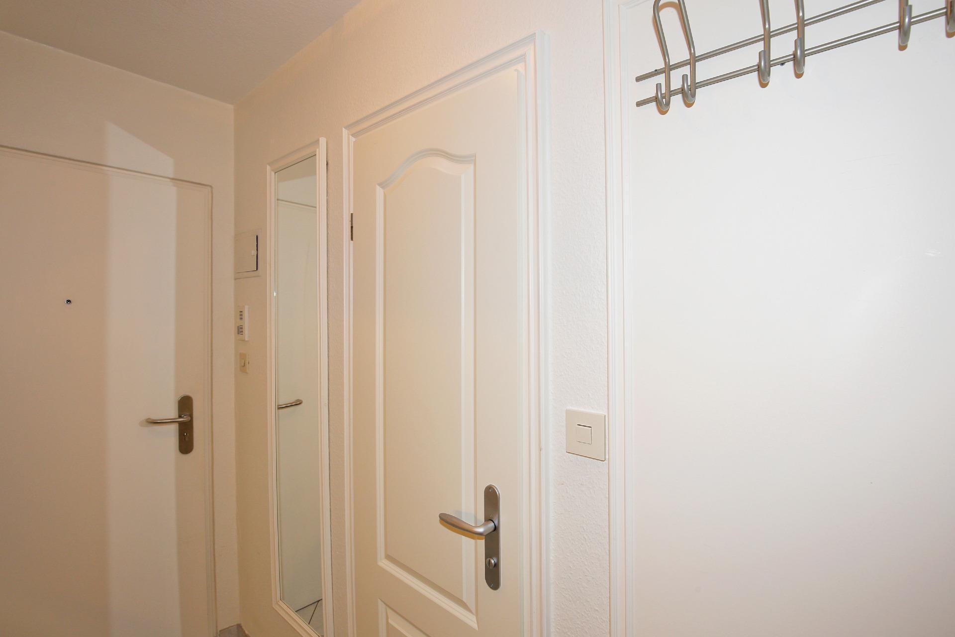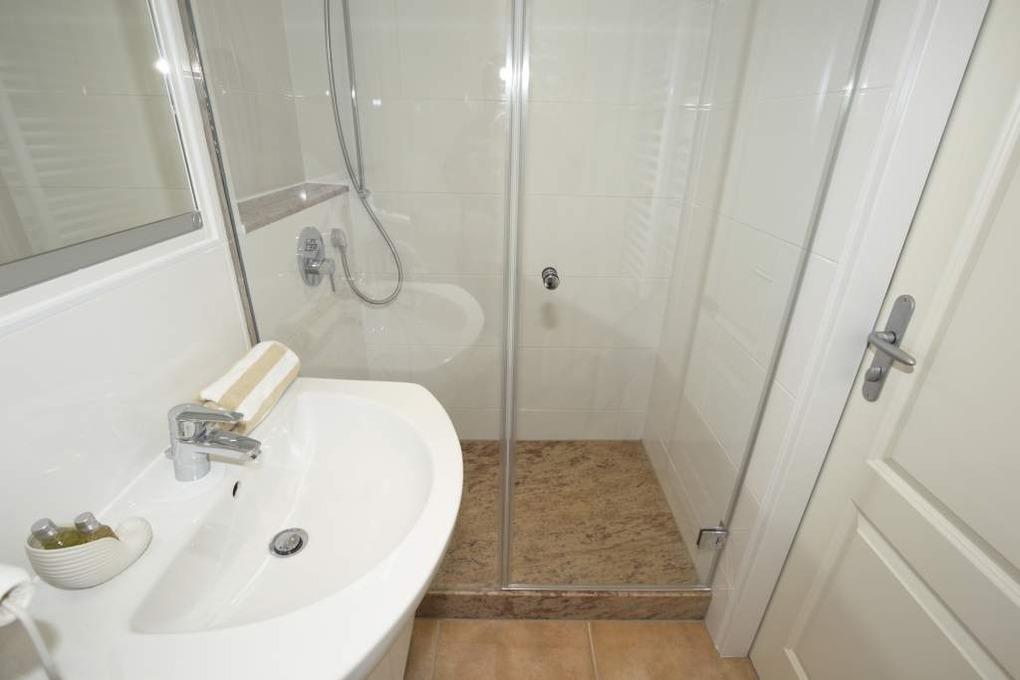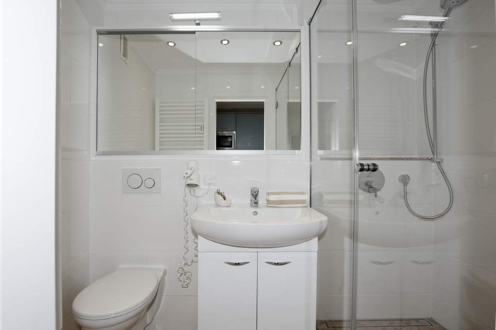 Vom neu gestalteten Vorflur mit Garderobe und Küchenzeile gelangt man in das kombinierte Wohn-/Schlafzimmer (mit Austritt zum Balkon) und in das ebenfalls komplett neu[nbsp][nbsp]sanierte[nbsp][nbsp]barrierefreie[nbsp][nbsp]Duschbad/WC mit einem übergroßem Schiebe-Spiegelschrank mit enorm viel Stauraum und separaten Steckdosen[nbsp][nbsp]für[nbsp][nbsp]Rasierer und elektronischen Zahnbürste. Besonders ist die separat zuschaltbare Überkopfbrause zur herkömmlichen Handbrause, für ein angenehmes Wellnessduschen zu nennen. Ein Fön und eine separat zuschaltbare Beleuchtung runden das ansprechende Gesamtambiente des Bades positiv ab.