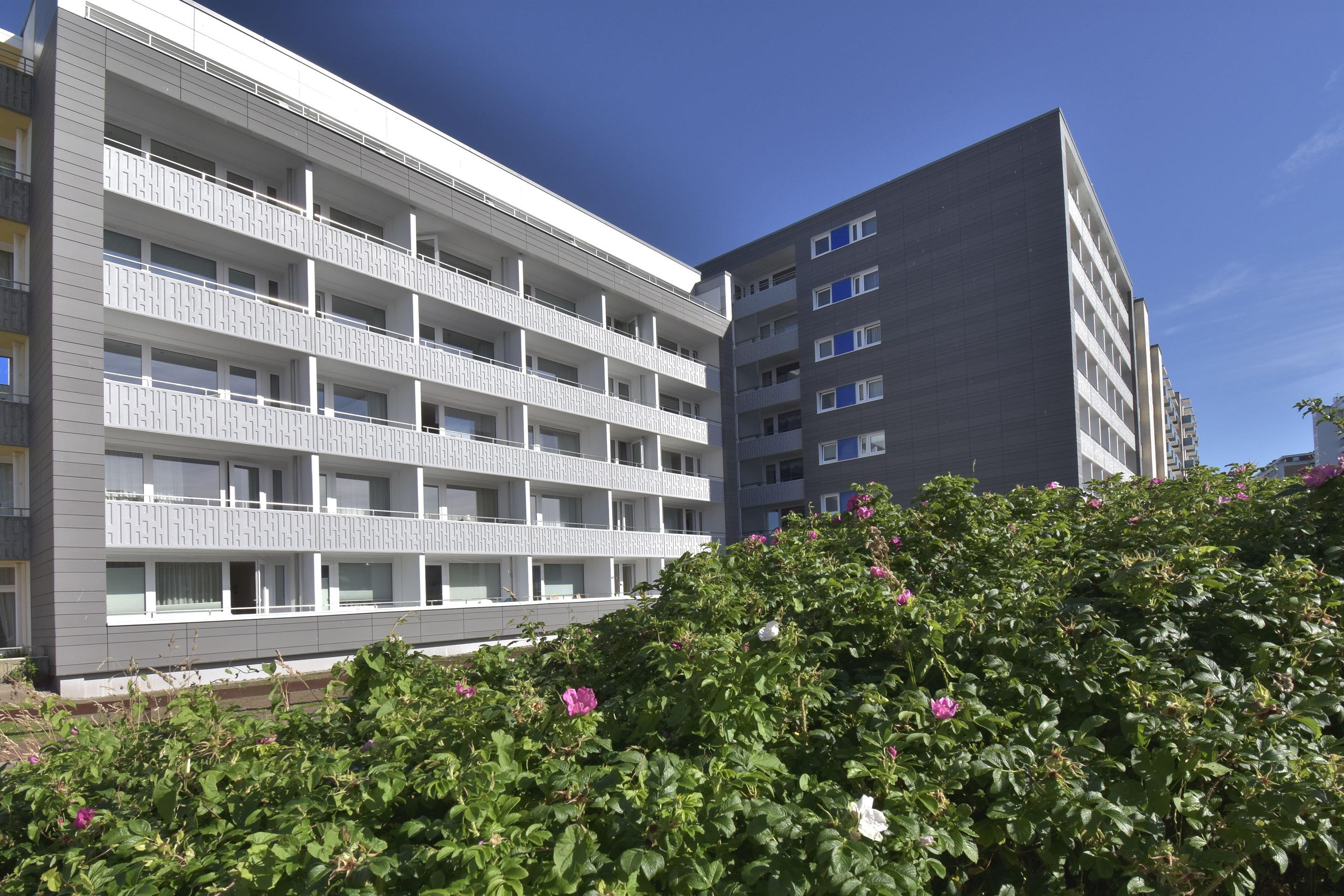 Geschmackvolle, komplett geflieste 1-Zimmer-Nichtraucher-Ferienwohnung (ca. 32 qm) in der 4. Etage mit Meerblick und Westloggia (Nachmittagssonne, mit Balkonmöbeln und Auflagen) für max. 2 Personen.
