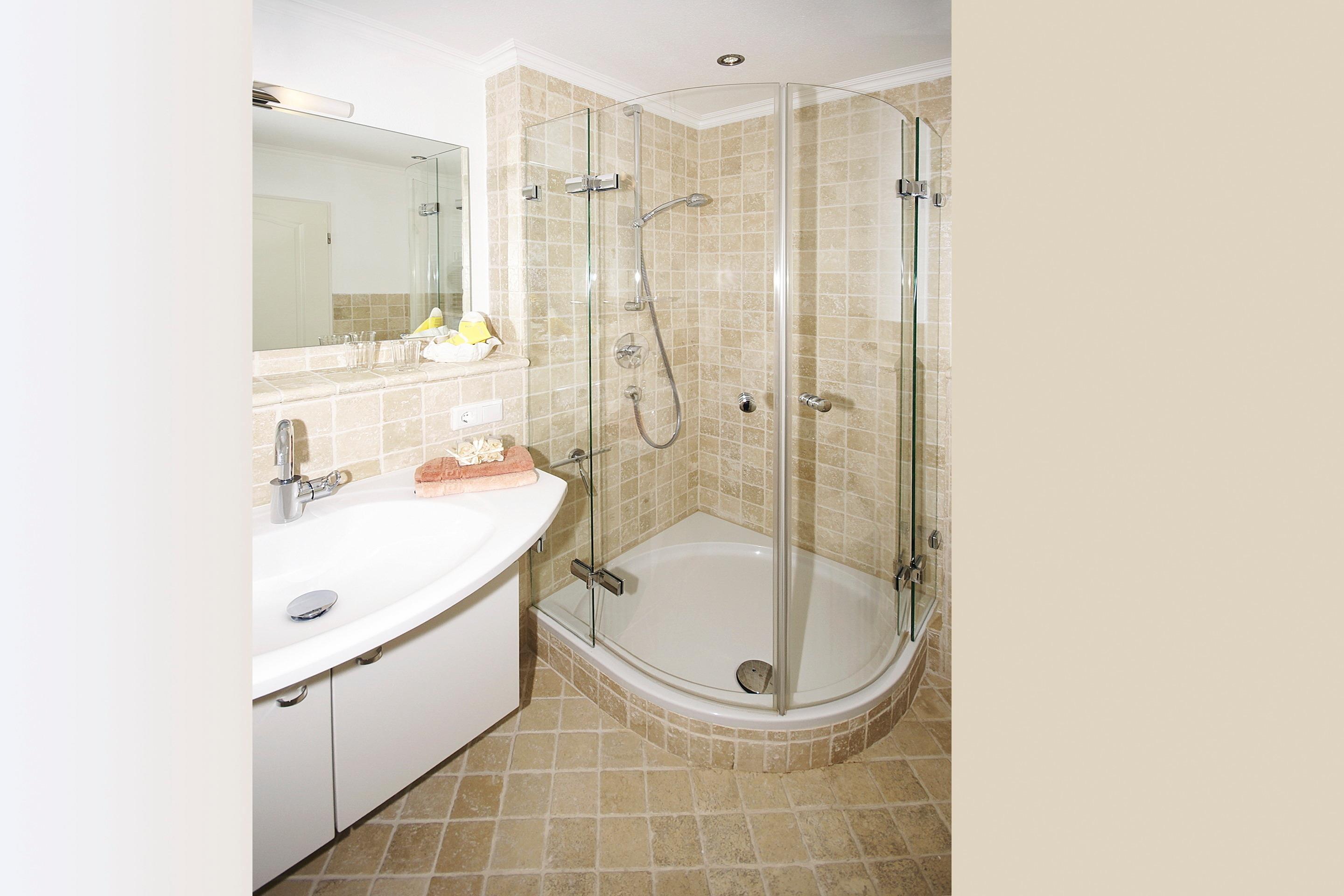 Das exklusive, mit Natursteinmarmor ausgelegte neue Duschbad/WC ist mit einer[nbsp][nbsp]Runddusche, einem Waschtisch, einen Handtuchtrockner und festinstalliertem Fön ausgestattet.