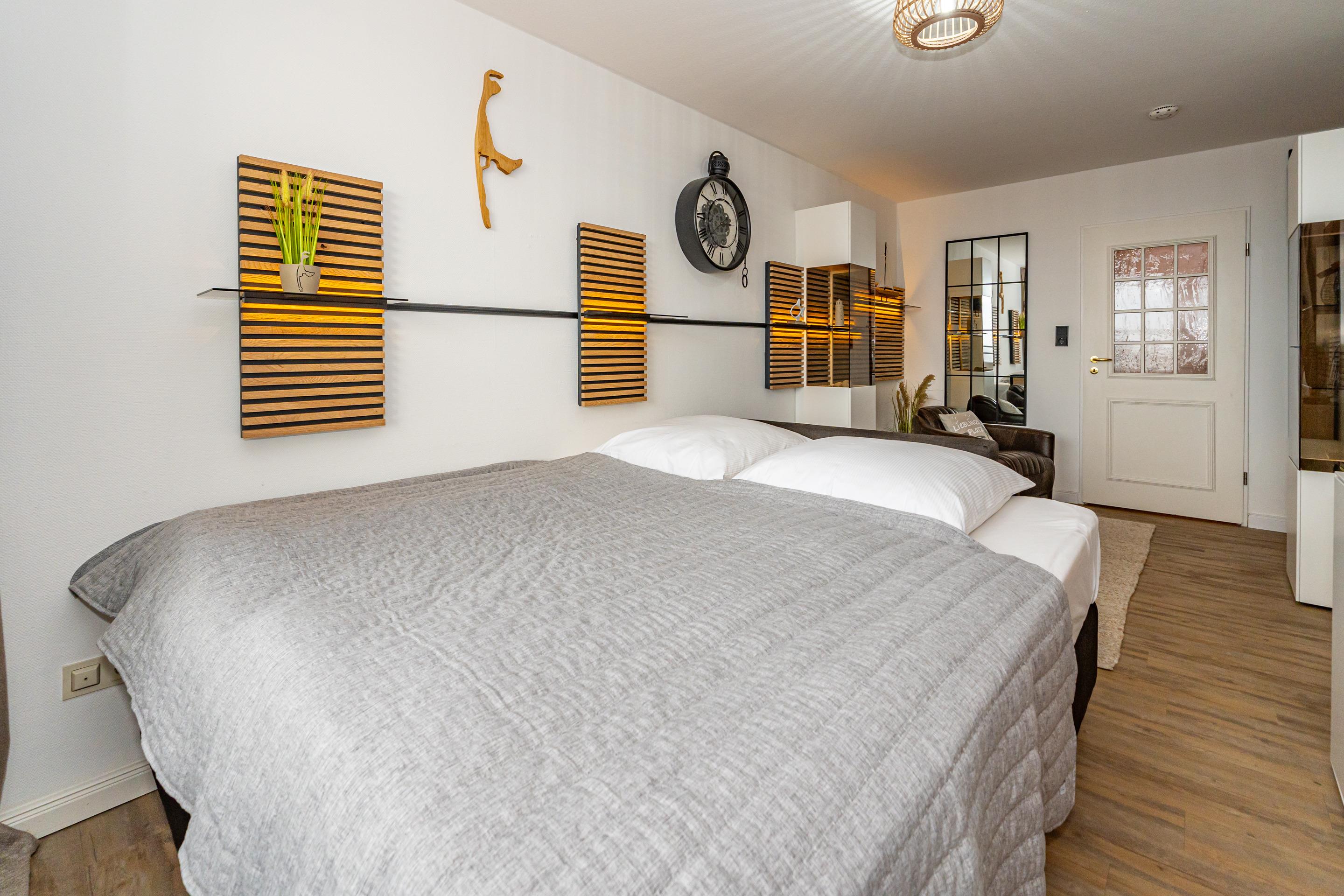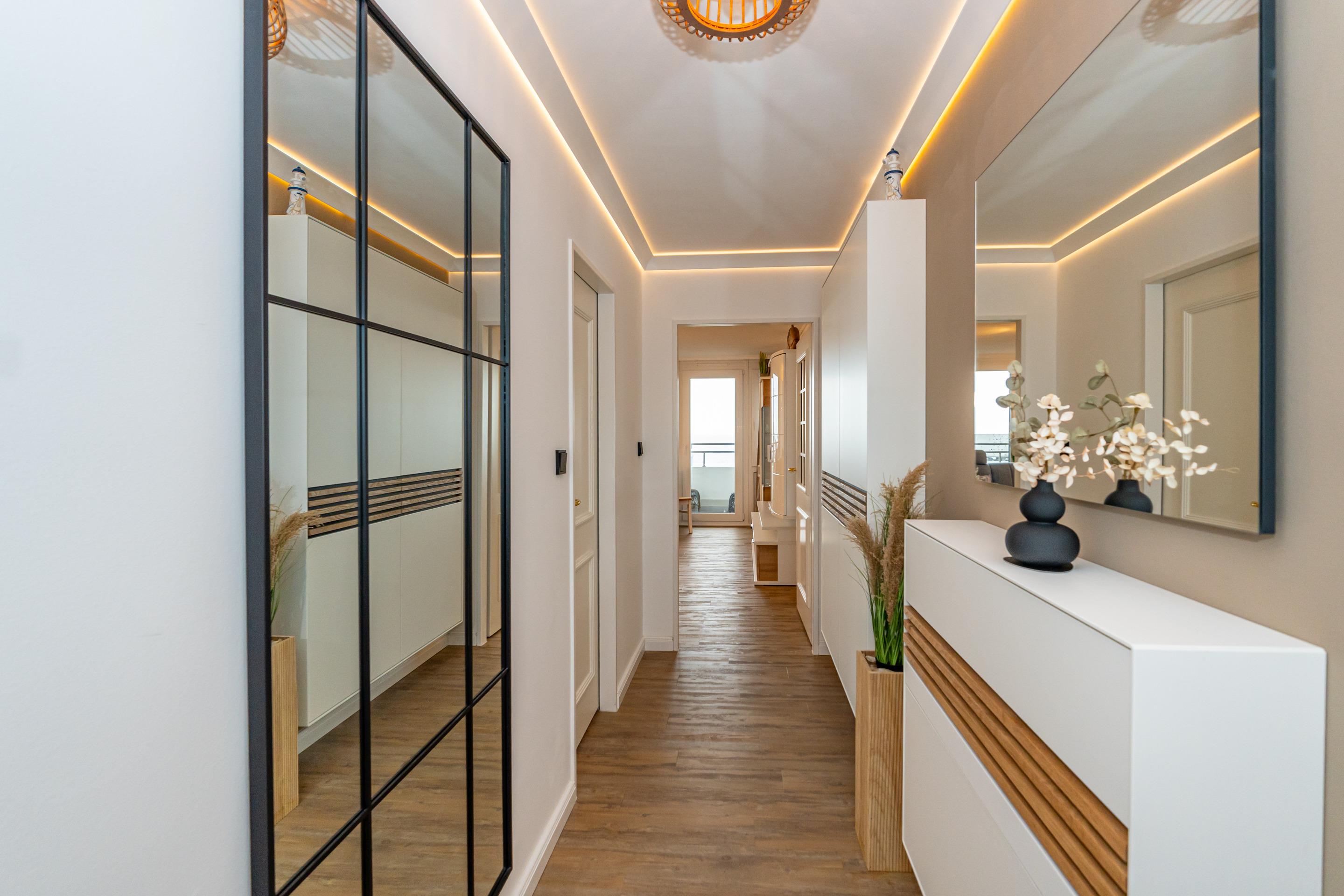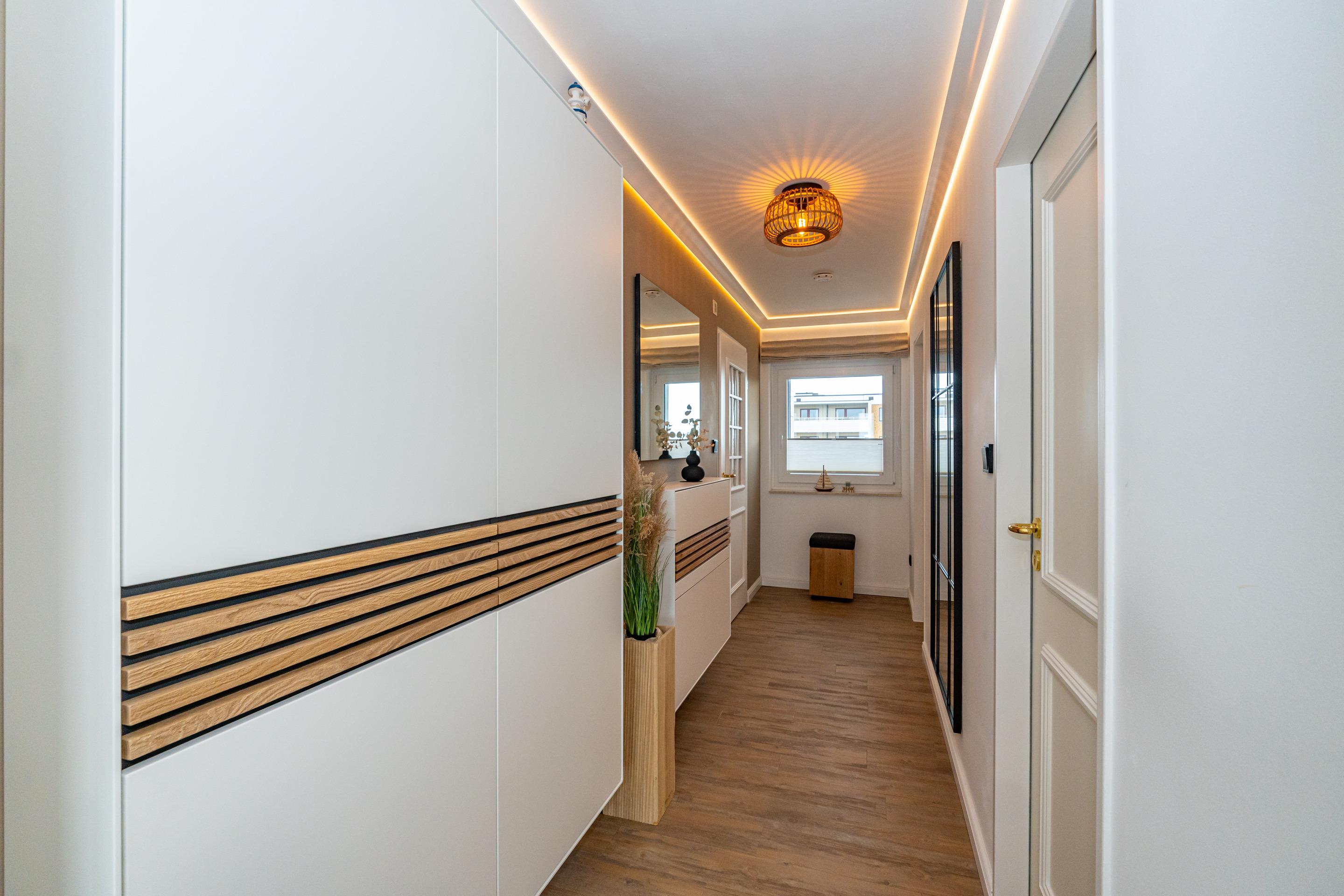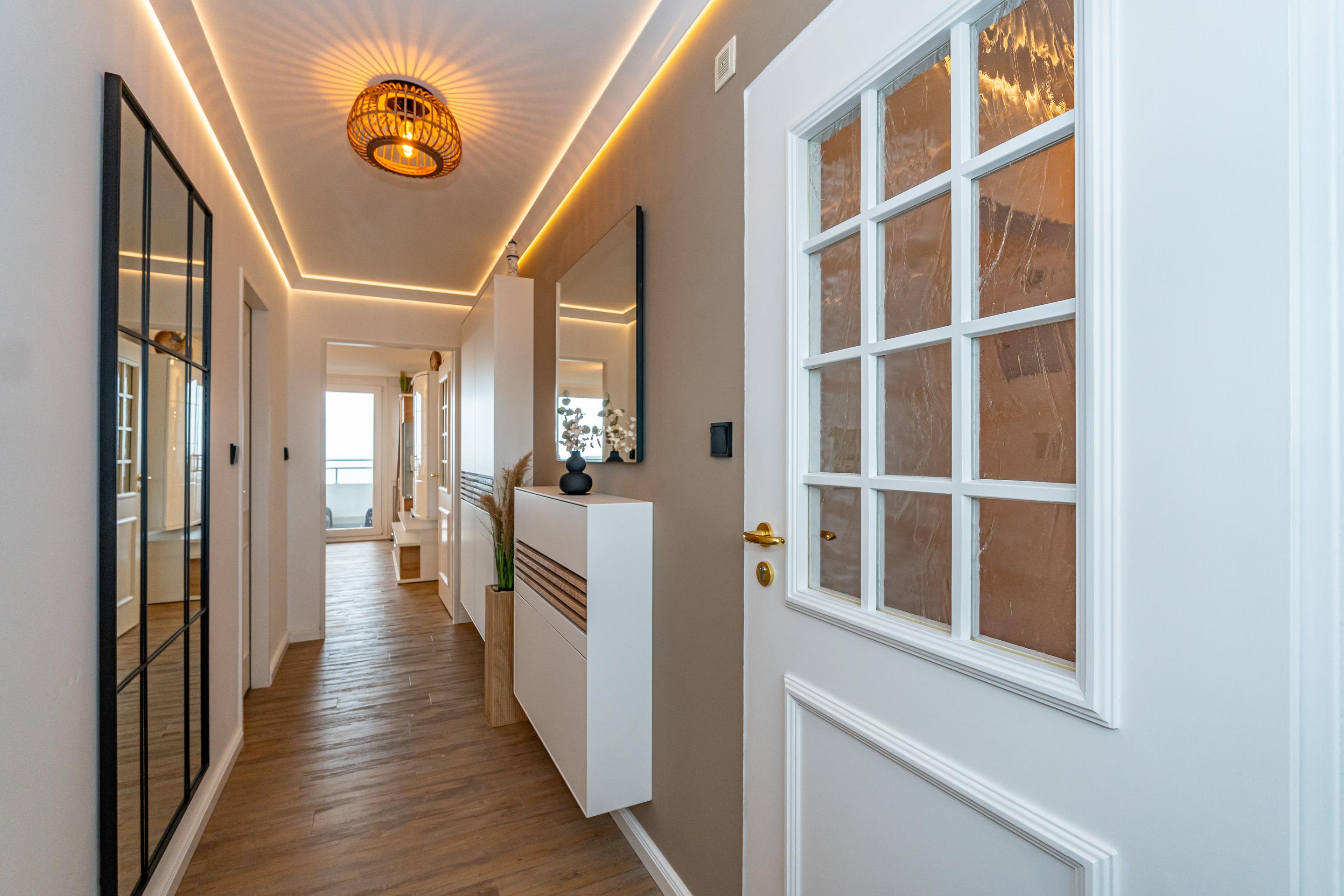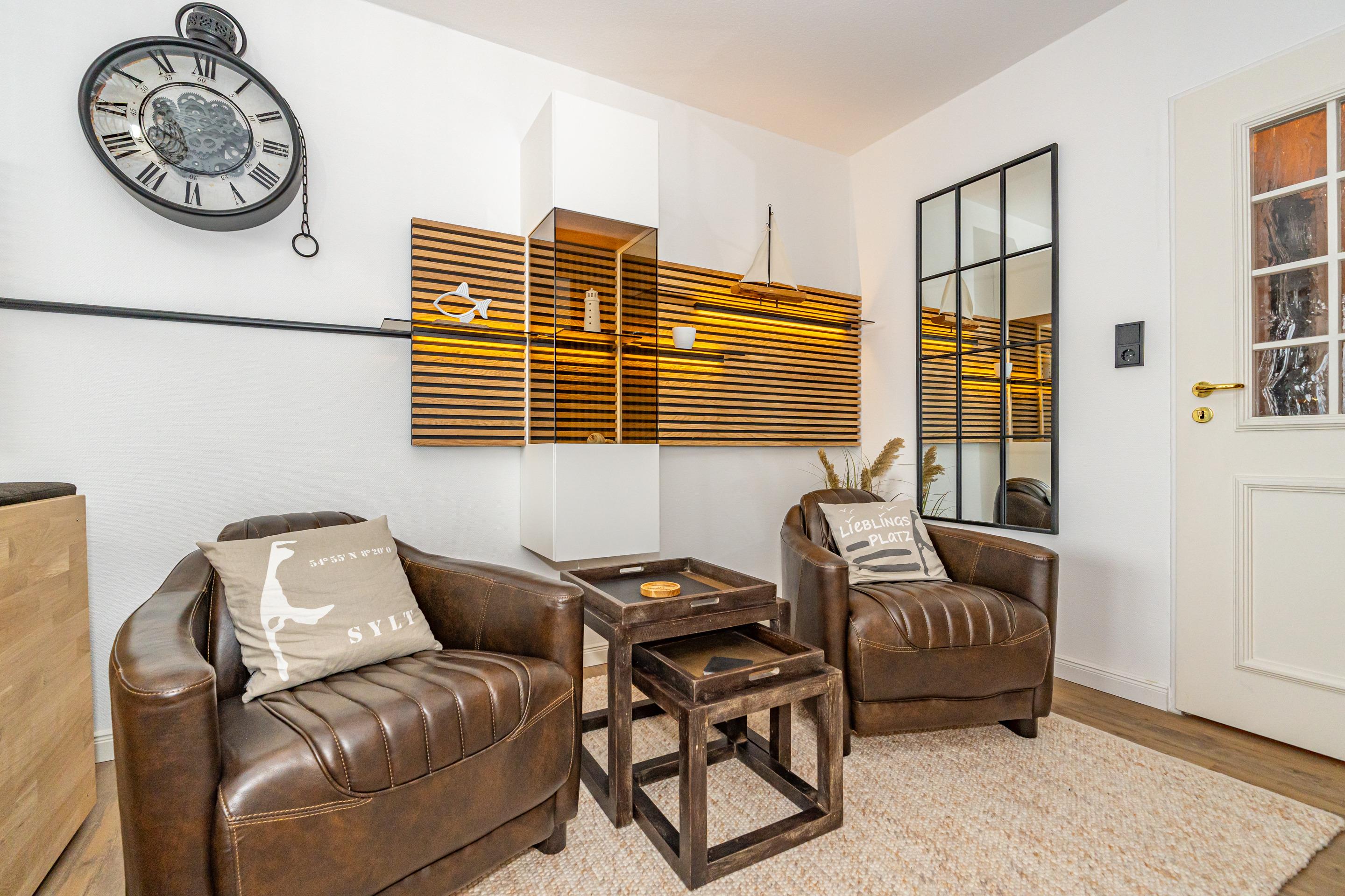 Das lichtdurchflutete Ferienapartment „SYLTERBRISE“, mit zwei zum Meer ausgerichteten Balkonen, befindet sich direkt an der Nordsee und ist Richtung Osten und Westen ausgerichtet. Der phänomenale Meerblick lässt sogar die Erdkrümmung erkennen. Diese traumhafte Konstellation gewährleistet unzählige Sonnenstunden aus der 5. Etage mit einem bezaubernden Blick auf die Nordsee, inkl. phänomenaler Sonnenuntergänge, die zum festen Bestandteil am Abend werden. Sie wohnen in einem großzügigen geschnittenen 3-Zimmer-Apartment (ca. 80 qm) für bis zu 4 Personen, dass modern ausgestattet ist. Zwei Schlafzimmer mit einem hochwertigen Doppelbett (Einzelmatratzen, Liegefläche 1,80 x 2,00 m) und einem Boxspringbett (Einzelmatratzen, Liegefläche 1,80 x 2,00 m) und jeweils 65 Zoll Smart TV, ein Wohnraum mit 65 Zoll Smart TV, Essplatz, voll ausgestattetem Küchenbereich (Kochen mit Meerblick), ein Badezimmer mit Regendusche und WC, ein weiteres Badezimmer mit Wanne und WC. Ein Schlafzimmer bietet einen Businessarbeitsplatz mit LAN und WLAN für Homeoffice, ein weiterer Businessarbeitsplatz befindet sich im großzügigen Flur. Sie können hier sogar während Ihrer Arbeitszeit Urlaub machen. Der direkt an das Wohnzimmer angrenzende Essbereich bietet eine offene Einbauküche im gehobenen Standard und Zugang auf den angrenzenden Balkon. In der „SYLTERBRISE“ wird ein unvergesslicher und erholsamer Urlaub garantiert. Vom Wohnzimmer aus gelangt man über den Flur in die einladenden Schlafzimmer, eines davon mit einem herrlichen Meerblick. Besonders an Sommertagen ist das Lichtspiel des Himmels zum Abend hin wunderschön und der Sonnenuntergang lässt sich auf den gemütlichen Balkonmöbeln genießen. Durch die großen Fensterflächen gelangt sehr viel Licht in jedes einzelne Zimmer, sodass diese zu jeder Tageszeit hell und einladend wirken und dem Bewohner sofort ein Gefühl von Urlaub vermitteln. Die „SYLTERBRISE“ liegt sehr zentral zum Strand und Zentrum. Ein gemeinschaftlicher Waschraum mit Waschmaschine und Trockner (über einen Münzautomaten) steht unseren Gästen ebenfalls zur Verfügung. Bei Anreise mit dem Auto gibt es die Möglichkeit, einen Parkplatz vor dem Haus zu nutzen (Parkplatz der Gemeinde, Münzeinwurf).