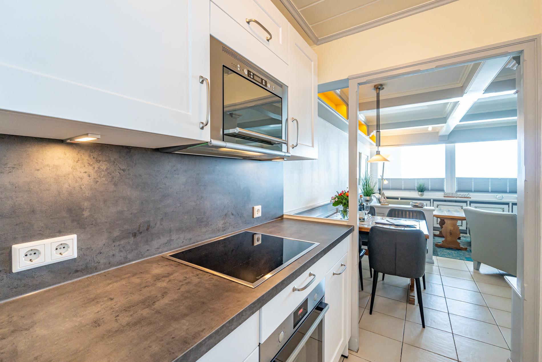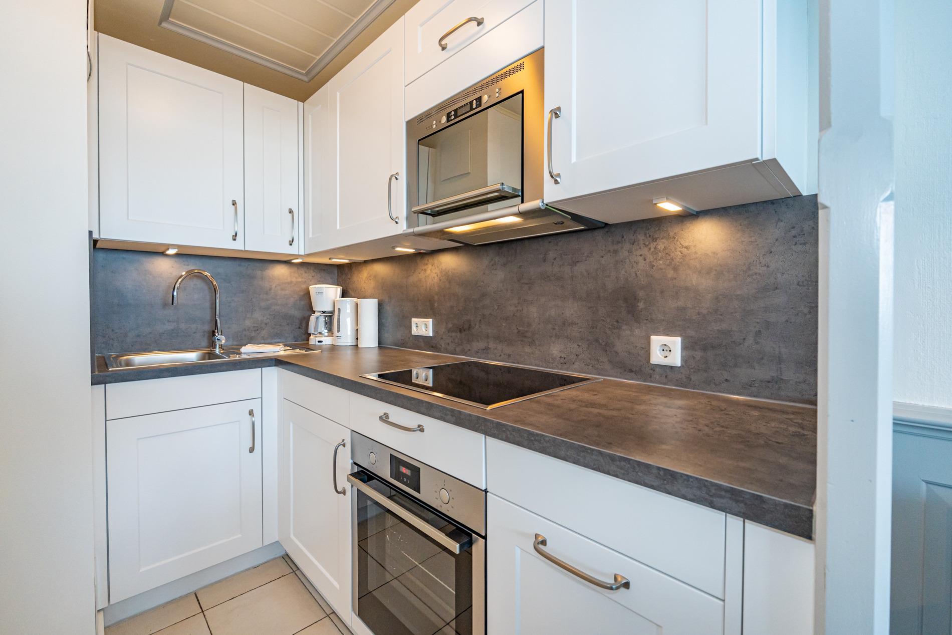 Die Küche hat einen Geschirrspüler, eine Nespresso-Maschine, ein 4-Platten-Induktionskochfeld mit Backofen und einen Kühlschrank mit 3-Sterne-Gefrierfach.