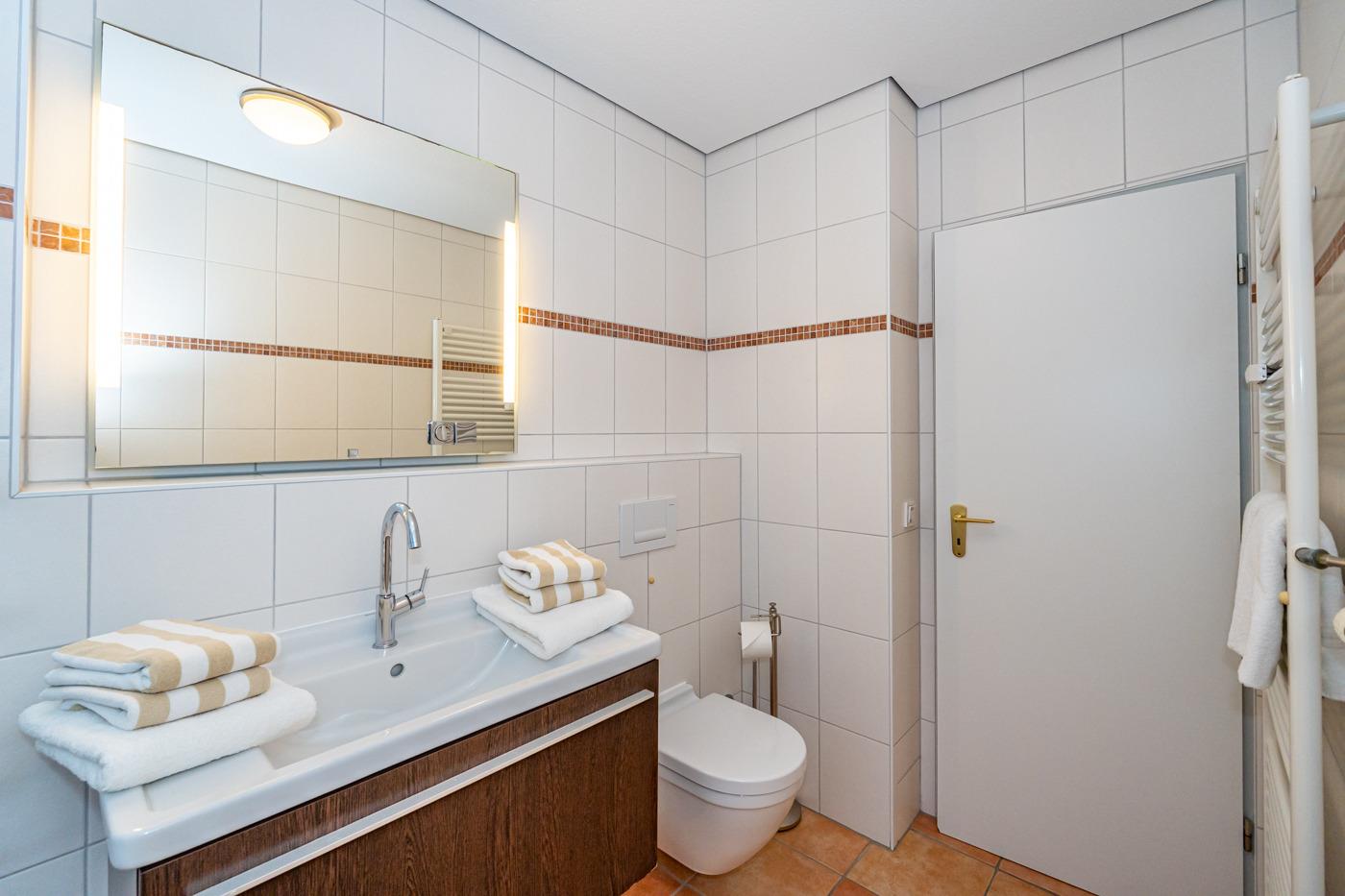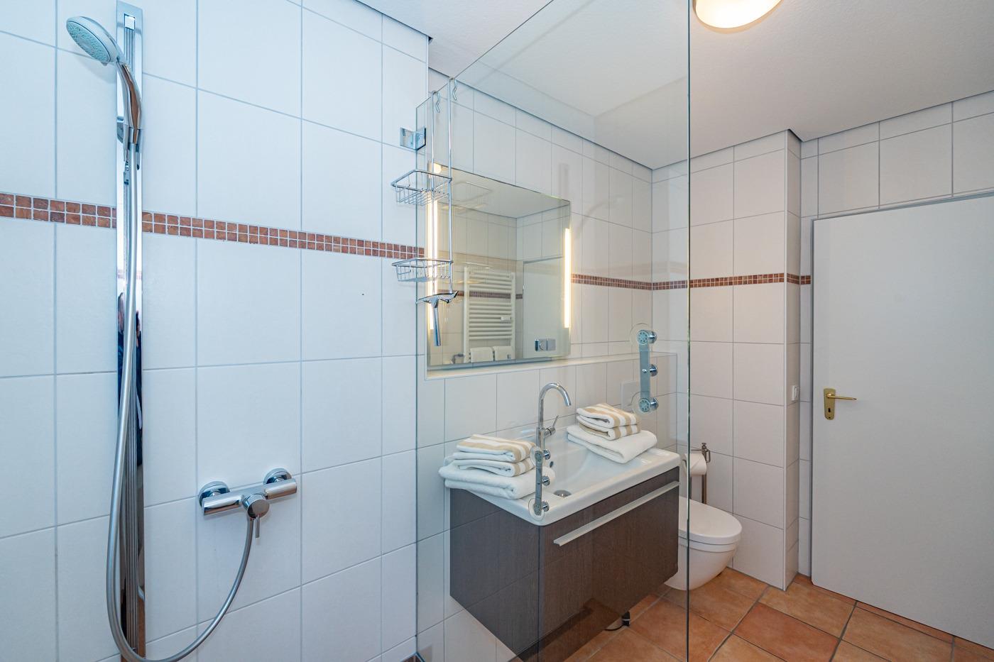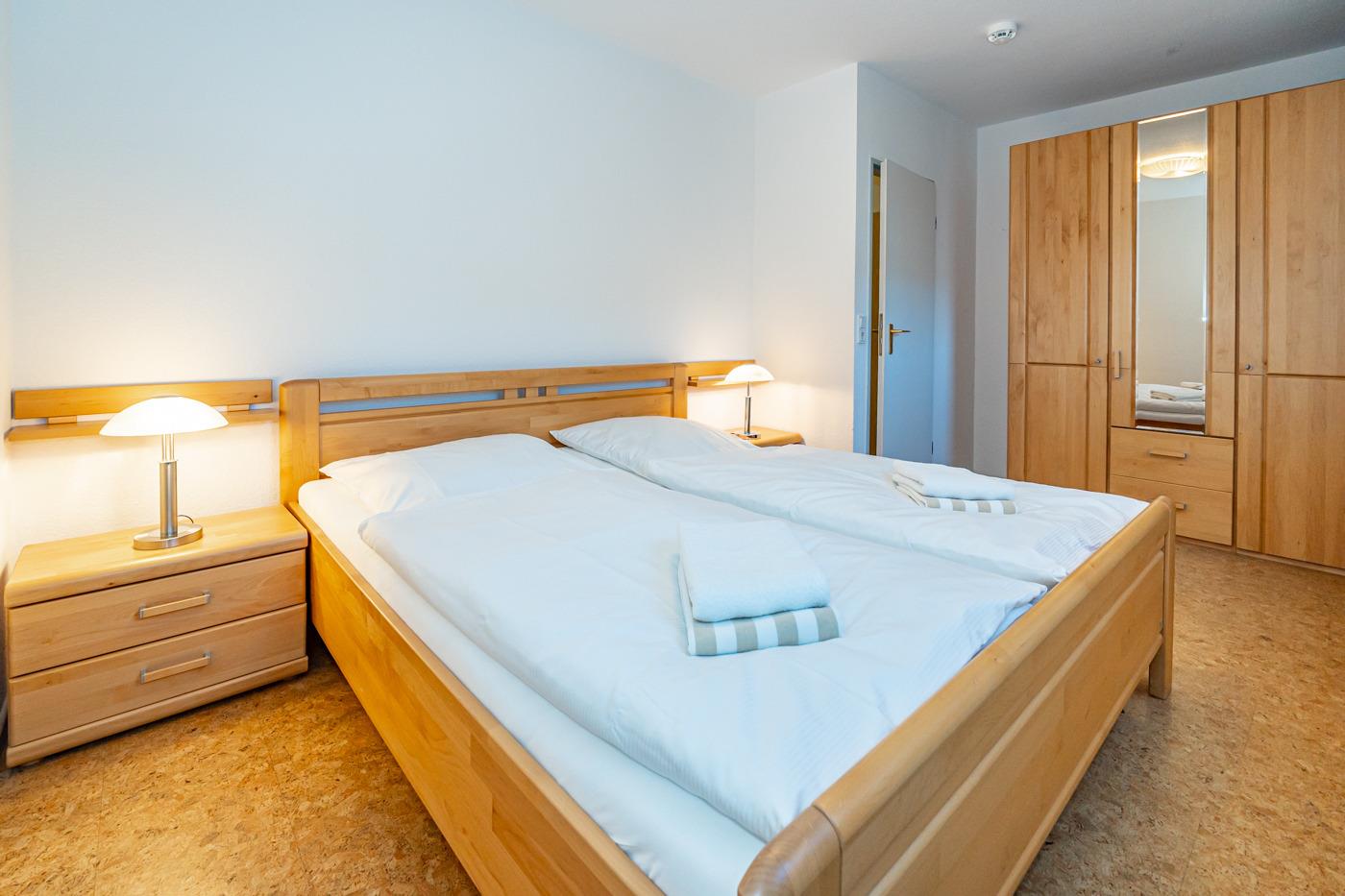 Die neue, separate Küche lässt keine Wünsche offen: Sie ist ausgestattet mit Geschirrspüler, Backofen, 4-Feld-Induktions-Cerankochfeld sowie einem Kühlschrank mit 3-Sterne-Gefrierfach. Selbstverständlich gehören Kaffeemaschine, Wasserkocher und Toaster zur Grundausstattung. Im Schlafzimmer erwartet Sie ein gemütliches Doppelbett mit zwei Einzelmatratzen sowie ein geräumiger Kleiderschrank. Das modern gestaltete Badezimmer verfügt über eine Dusche mit flachem Einstieg, WC und Waschtisch.
