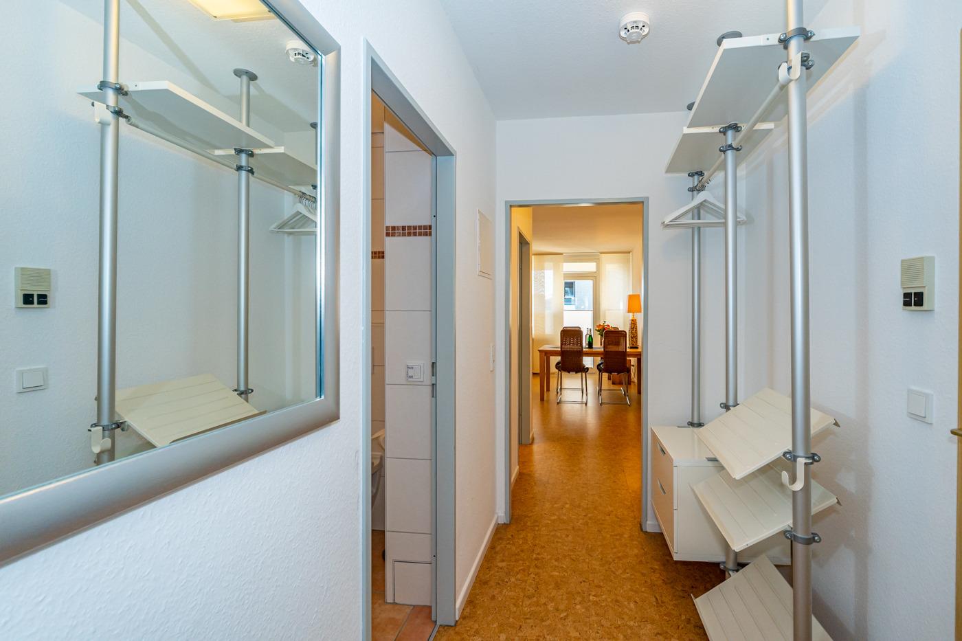Die ca. 60 m² große Wohnung empfängt Sie mit einem einladenden Vorflur inklusive Garderobe und Schuhablage. Von hier aus erreichen Sie das gemütliche Wohnzimmer mit Zugang zur Loggia, das separate Schlafzimmer, die moderne Küche sowie das neue Duschbad. Die Westloggia bietet Ihnen herrliche Nachmittagssonne und ist mit bequemen Balkonmöbeln und Auflagen ausgestattet – perfekt zum Entspannen. Der großzügige Wohnbereich verfügt über eine komfortable Sitzgarnitur mit Schlaffunktion (3-Sitzer-Couch), Sessel und Fußhocker, einen Esstisch sowie einen Kabel-Flachbild-TV für entspannte Stunden.