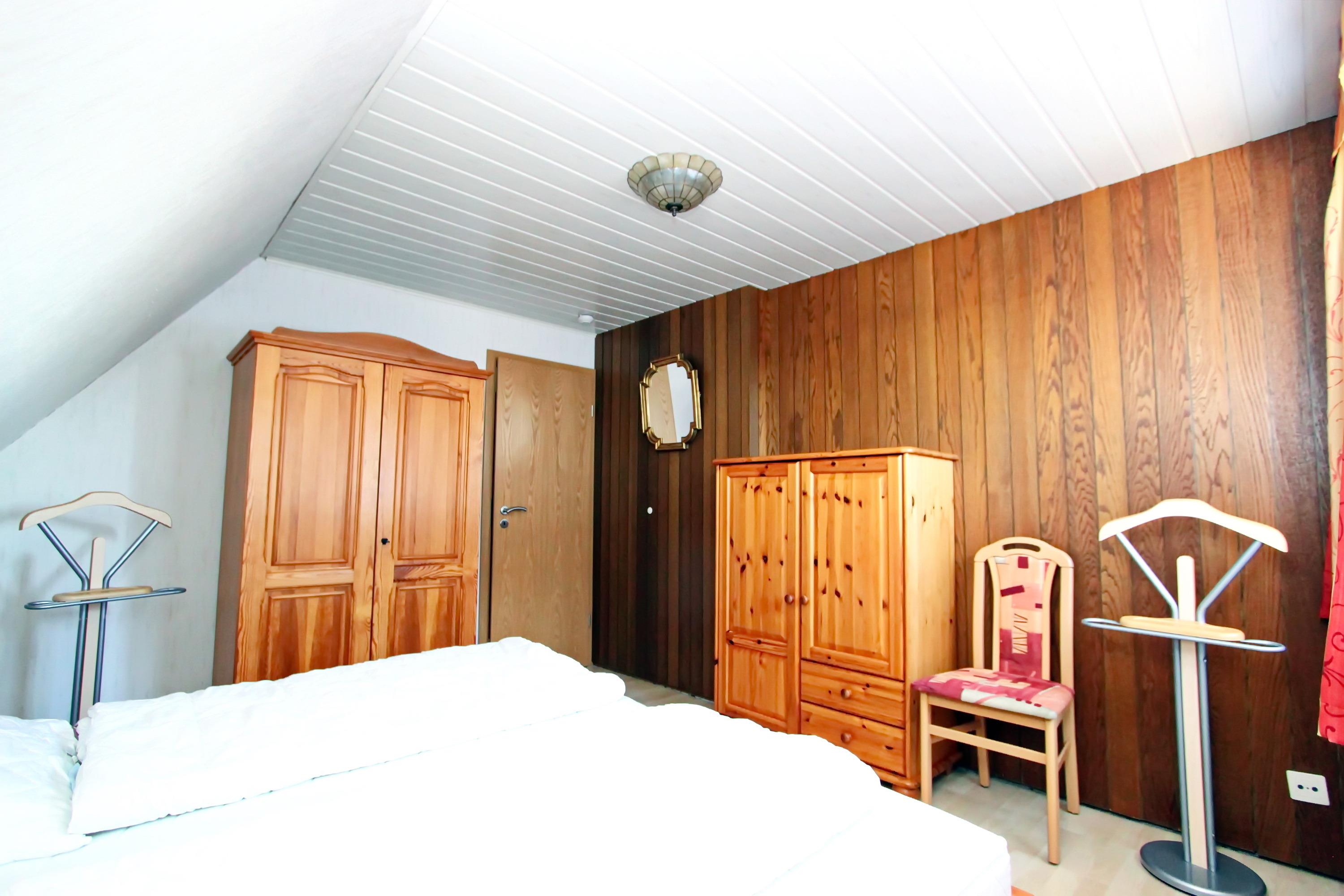 - Schlafzimmer mit Doppelbett (zwei Matratzen 90 x 200 cm) und großem Kleiderschrank, der ausreichend Stauraum bietet