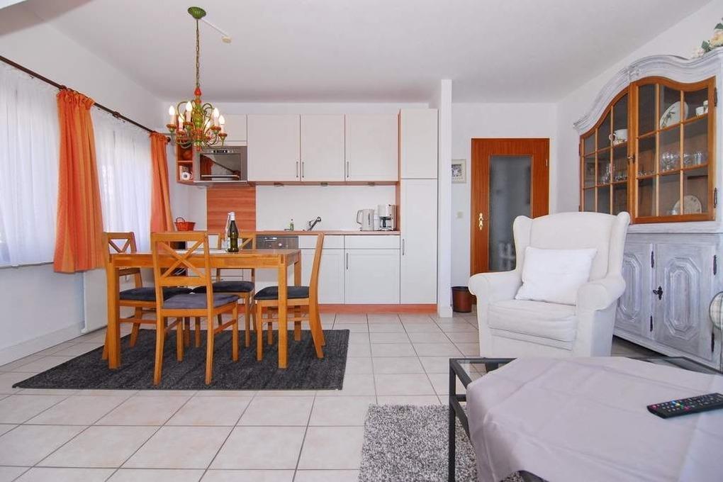 2 Zimmer-Ferienwohnung im Haus "Belvedere" im 2.OG. Ca. 50m². Nichtraucher! Wohnzimmer mit Westbalkon und Meeresblick, Couch und 1 Sessel, Eßplatz, Flat-TV, Radio, Küchenzeile mit Ceranherd, Mikrowelle/Grill und Geschirrspüler, Schlafzimmer mit Doppelbett, Duschbad/WC. Das Appartement ist komplett gefliest. Ohne PKW-Stellplatz! Tierhaltung verboten. Bettwäsche und Handtücher sind zur Anreise aufgezogen!