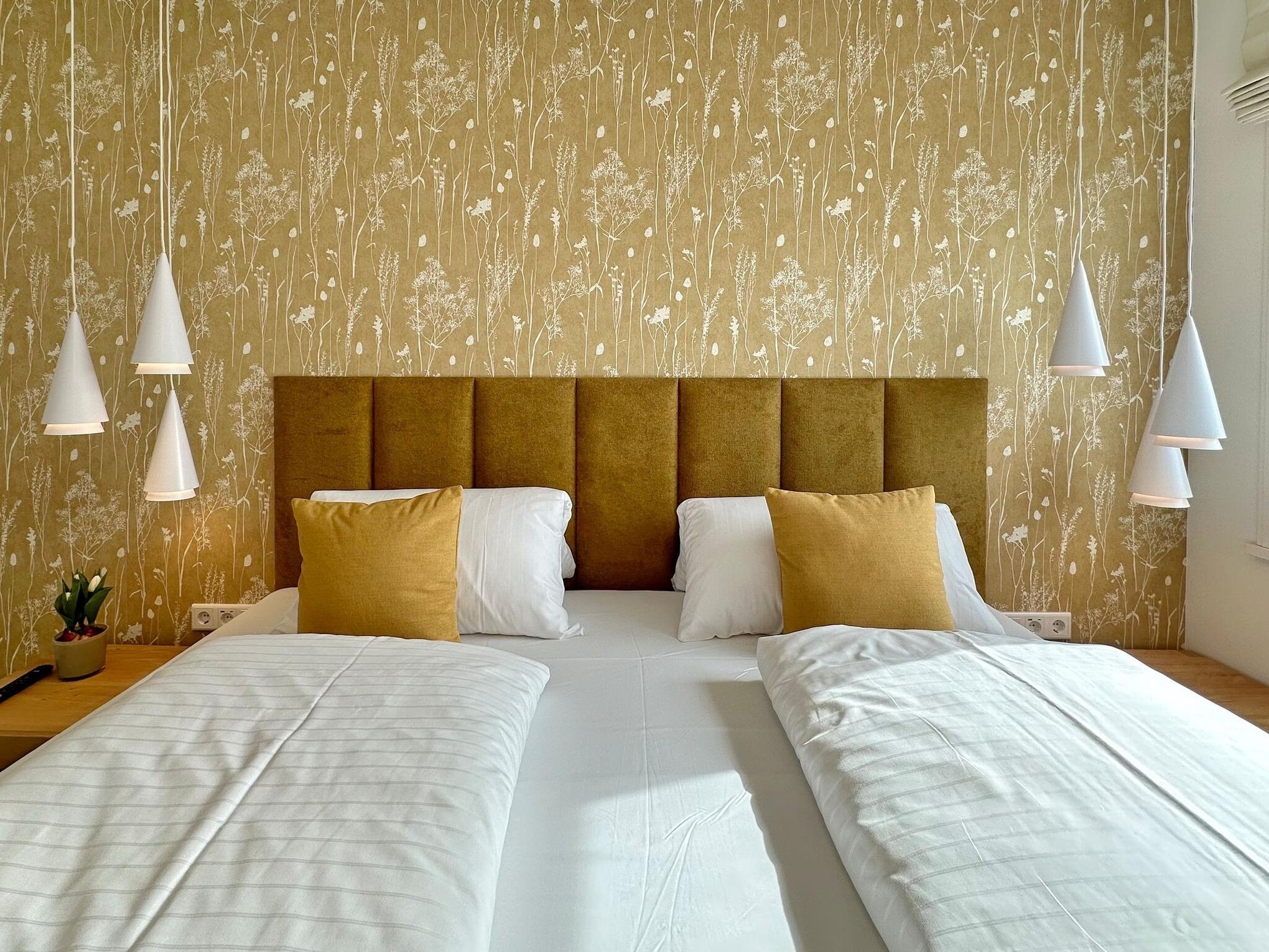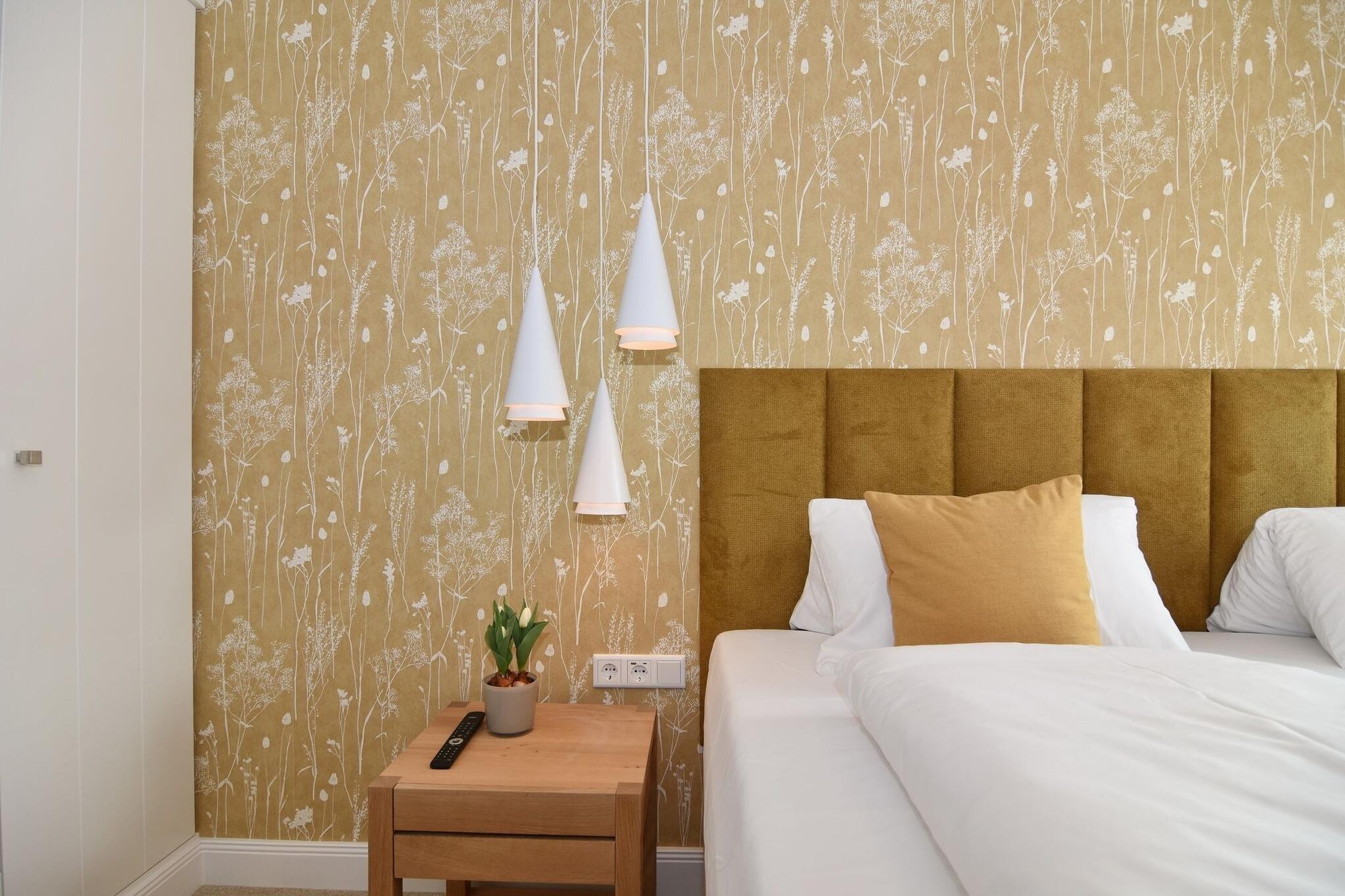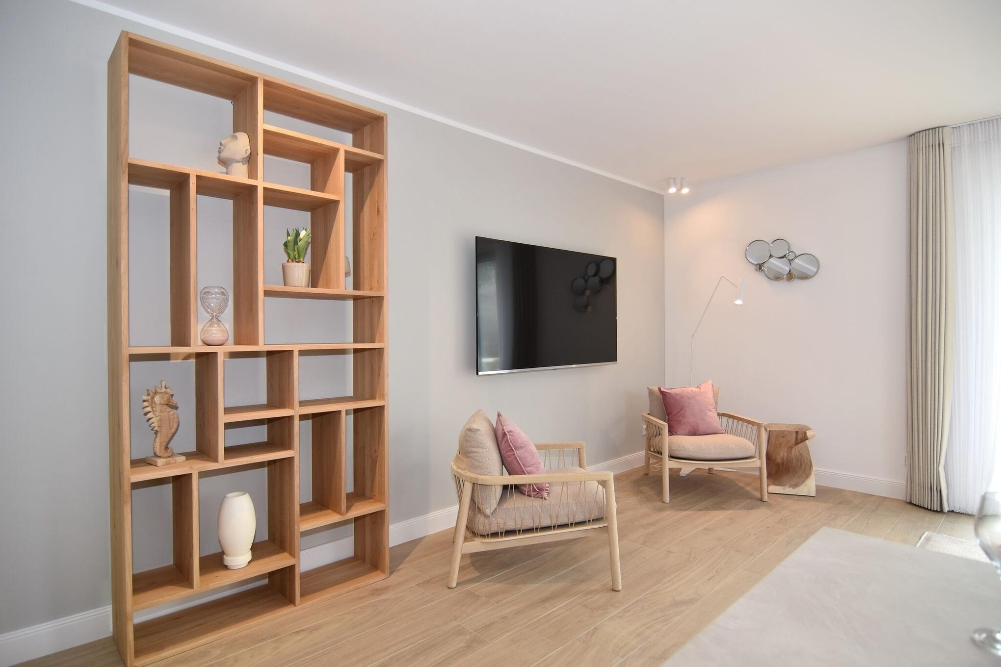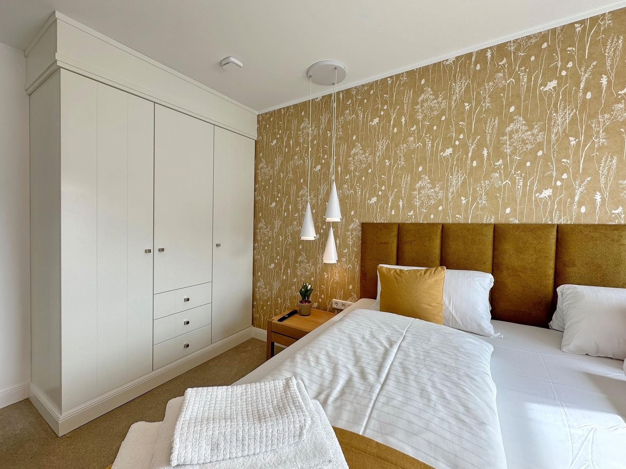 Die hochwertige 3-Zimmer-Wohnung im 1. OG mit ca. 81 qm ist für maximal 4 Personen. Vom geräumigen Flur mit Garderobe gelangen Sie in das Wohnzimmer mit offener Küche und möblierten Südbalkon. Die hochwertige Küche bietet neben Bora Induktionsherd auch Geschirrspüler, Tiefkühlschrank und Backofen mit integrierter Mikrowelle. Beide Schlafräume bieten mit Boxspringbetten (180x200 und 200x200) der Marke FBF hochwertigen Schlafkomfort und verfügen über Einbauschrank und TV (1 Kinderbett im gelben Schlafzimmer zubuchbar). Die Wohnung verfügt über 2 moderne Duschbäder mit Haar- und Handtuchtrockner. Die Wohnung ist mit großformatigen Fliesen ausgelegt und verfügt über Fußbodenheizung. Lediglich die Schlafräume sind mit Teppichware versehen. Internet (ohne Gewähr) und Smart-TV sind vorhanden.