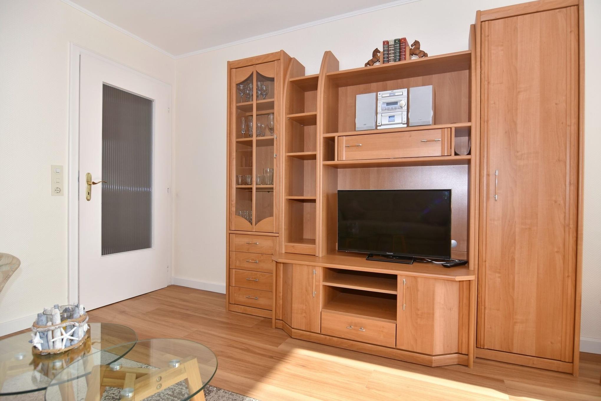 Die 2-Zimmer-Wohnung mit ca. 50m² befindet sich im 2.OG des Haus Eidum und ist durch die zentrale Lage ein optimaler Ausgangspunkt zur Erkundung der Insel. Am Eingangsbereich des Hauses befinden sich ca. 10-12 Stufen bevor Sie dann bequem mit dem Fahrstuhl in die 2. Etage fahren können. Die Wohnung verfügt über ein Wohnzimmer mit Sitz- und Essecke (Schlafcouch), TV, Stereoanlage und möblierten Südbalkon, einem separaten Schlafzimmer mit großzügigem Einbauschrank und Doppelbett (2x 90x200 cm), einer separaten Küche mit Geschirrspüler, Mikrowelle und Ceranherd, großem Flurbereich und ein Duschbad / WC. Sämtliche Räume verfügen über ein Fenster. Die Wohnung ist in einem sehr gepflegten Zustand und ist mit Designboden ausgelegt. Zu der Wohnung gehört ein großer Pkw-Aussenstellplatz, der sich an der Stirnseite des Hauses befindet. Im Keller stehen Ihnen über Münzzähler Waschmaschine und Trockner zur Verfügung. Tierhaltung und Rauchen in der Wohnung ist nicht gestattet. Bettwäsche und Handtücher sind zur Anreise aufgezogen.