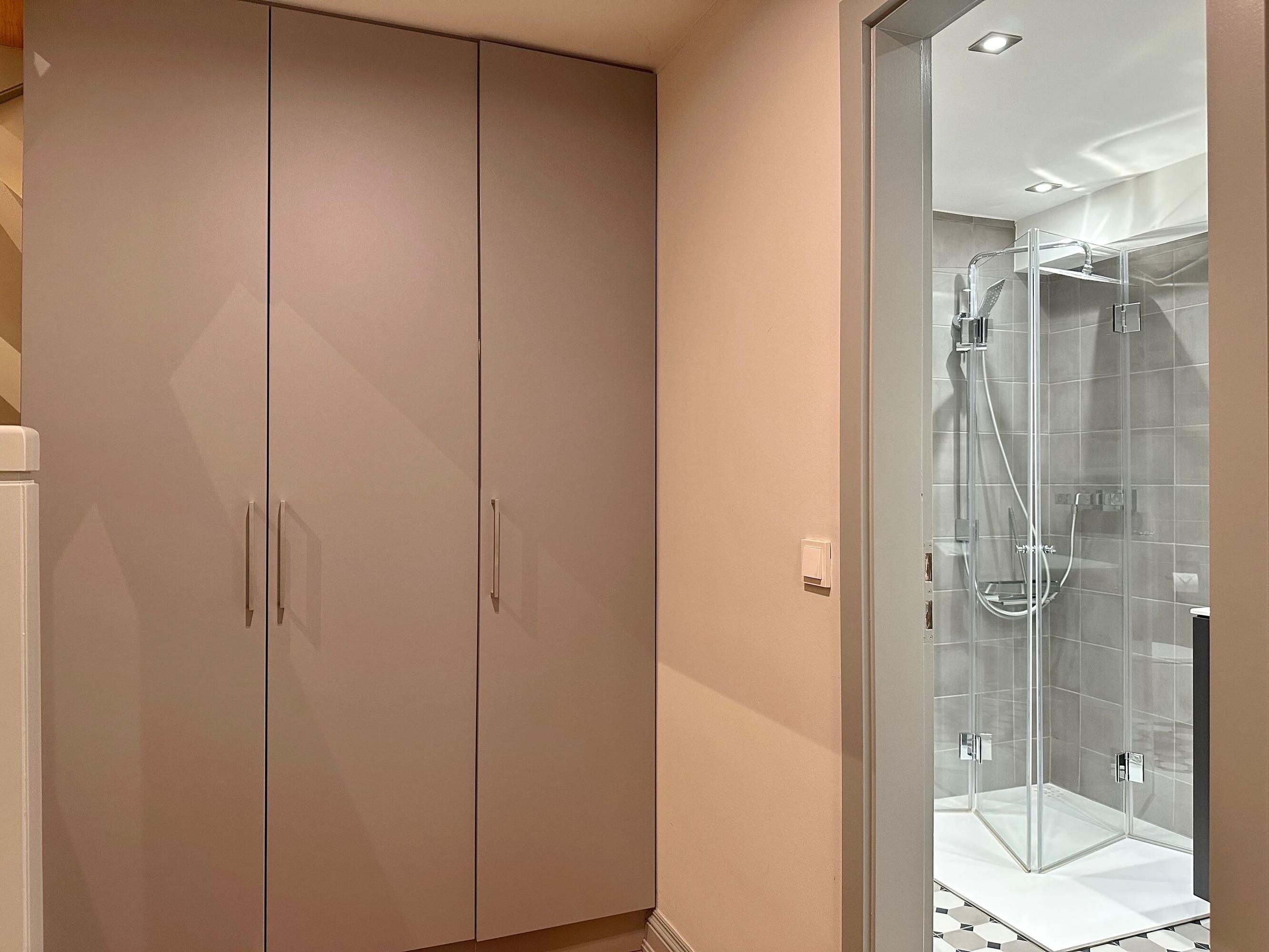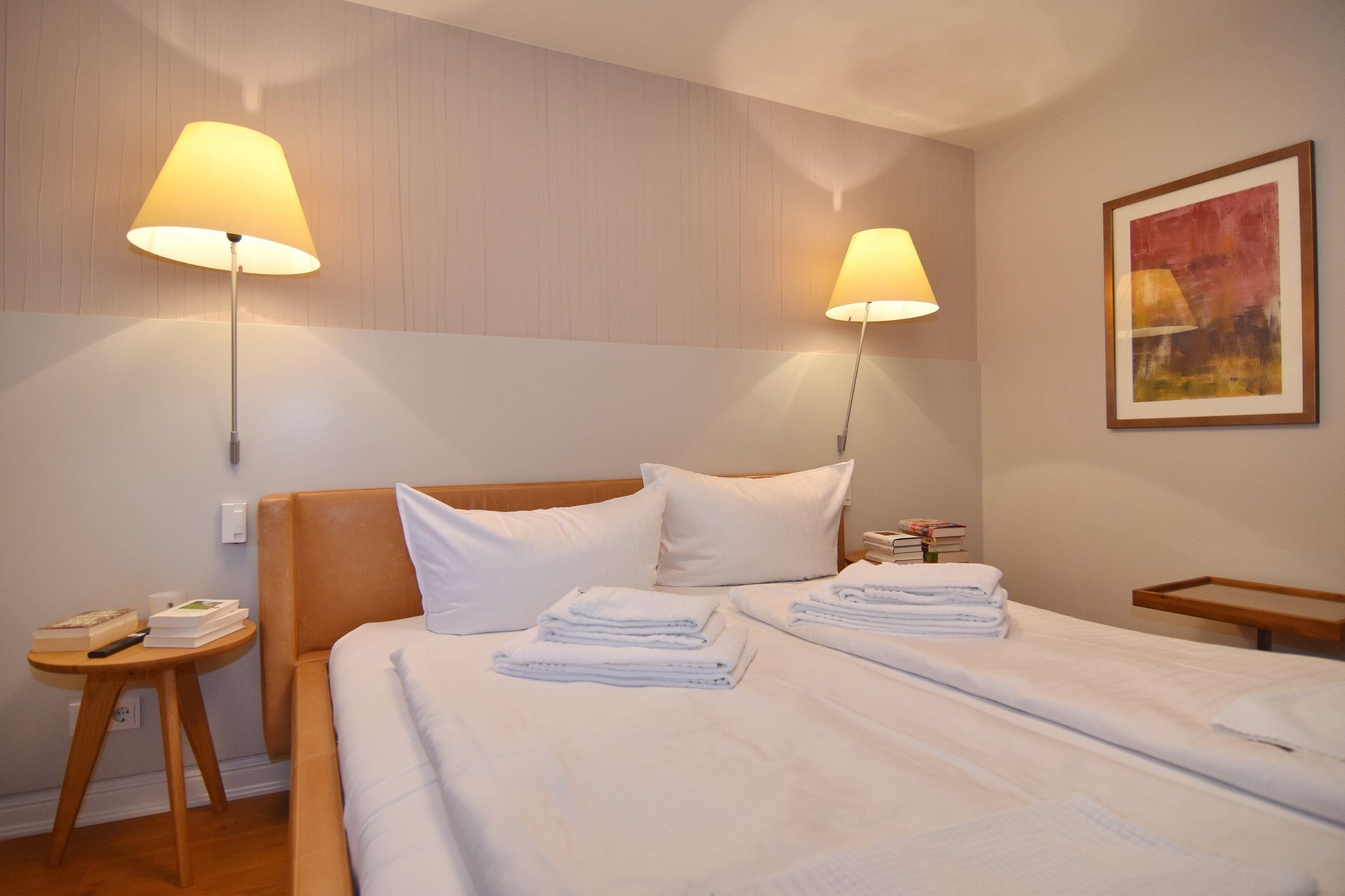 Die geschmackvolle 3-Zimmer-Wohnung erstreckt sich über zwei Ebenen. Im Hochparterre befindet sich das Wohnzimmer mit Sitz- und Essecke, TV, WLAN, offene Küche mit Induktionsherd, Backofen mit Mikrowellenfunktion, Ceranherd und Geschirrspüler, Kühlschrank mit Gefrierfach sowie einem Badezimmer mit Wanne und WC. Vom Wohnzimmer aus gelangen Sie auf den möblierten Westbalkon. Eine offene Treppe ins Souterrain führt zu 2 Schlafzimmern und einem weiteren Badezimmer mit Dusche. Beide Schlafzimmer verfügen über einen großen TV. Das große Schlafzimmer hat einen Kleideschrank. Weitere Schrankflächen befinden sich im Vorflur der Schlafräume.