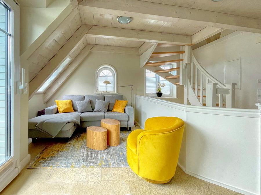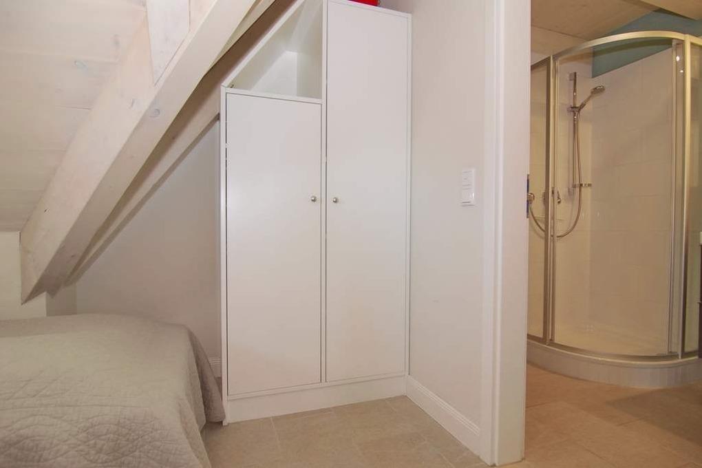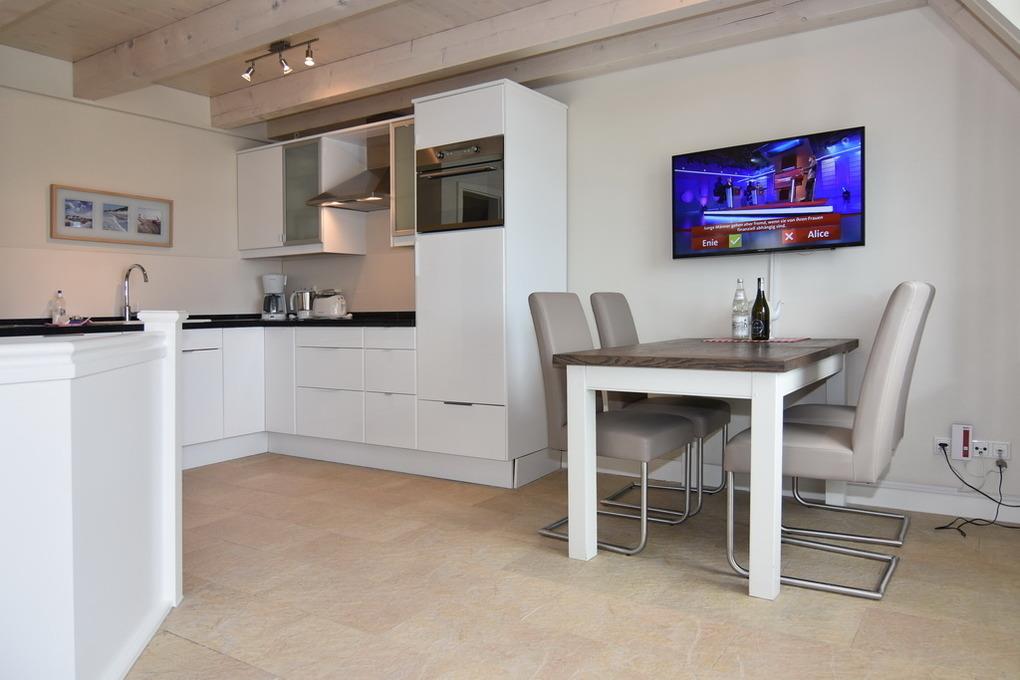Die 3-Zimmer-Wohnung liegt in unmittelbarer Nähe zum Strandübergang und bietet eine Wohnfläche von ca. 60 m². Sie ist als Nichtraucher-Wohnung ausgewiesen und erstreckt sich über 3 Etagen. Das Erdgeschoss besteht aus einem Windfang und einer Diele. Im Obergeschoss befinden sich ein helles Wohnzimmer mit einer gemütlichen Couchecke, einem Essplatz, Flat-TV und einer integrierten Küche, die mit einem Geschirrspüler und einer Mikrowelle ausgestattet ist sowie ein Schlafzimmer mit zwei Einzelbetten und Duschbad/WC. Der Zugang zum Bad erfolgt durch das Schlafzimmer. Auf dem Westbalkon können Sie die Sonne genießen und es stehen Balkonmöbel zur Verfügung. Im Dachgeschoss befindet sich ein weiteres, offenes Schlafzimmer mit einem Doppelbett und einem Flatscreen-Fernseher. Hier gibt es ein separates WC mit Handwaschbecken. Ein kostenloser Parkplatz kann auf Anfrage gebucht werden. Bei Ankunft sind die Betten bezogen und Handtücher liegen bereit. .