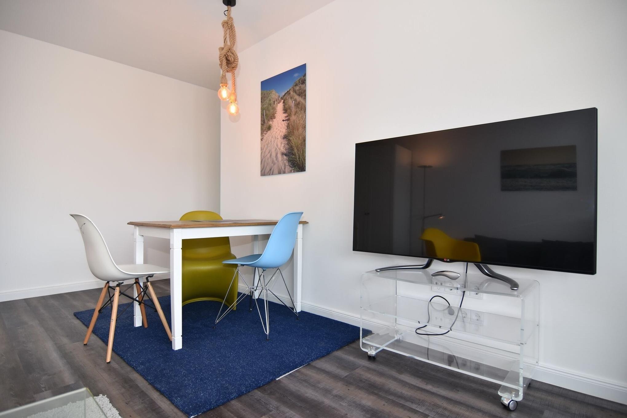2-Zimmer-Wohnung in zentraler und strandnaher Lage. Die Wohnung befindet sich in einem Mehrparteienhaus nur wenige Gehminuten vom Zentrum entfernt. Ein Fahrstuhl ist im Haus vorhanden (Achtung: Fahrstuhl hält zwischen den Etagen) und ein Pkw-Aussenstellplatz befindet sich direkt am Objekt. Die Wohnung selber besticht durch ein klares Design, verfügt über Wohnraum mit Sofa, Essplatz, TV und Zugang zum möblierten Westbalkon sowie einem Schlafraum mit Boxspringbett (140x200) und Kleiderschrank. Die räumlich abgetrennte Küche bietet einen Geschirrspüler, Mikrowelle und Indukitonsherd. Ein großes Duschbad lädt zum ausgiebigen Duschen ein. Rauchen und Tierhaltung sind in der Wohnung nicht gestattet. Bettwäsche und Handtücher sind zur Anreise aufgezogen. Auf dem nördlich angrenzenden Nachbargrundstück entsteht ab Mai 2024 ein Neubauvorhaben. Hier kann es zu Lärmbelästigung kommen.