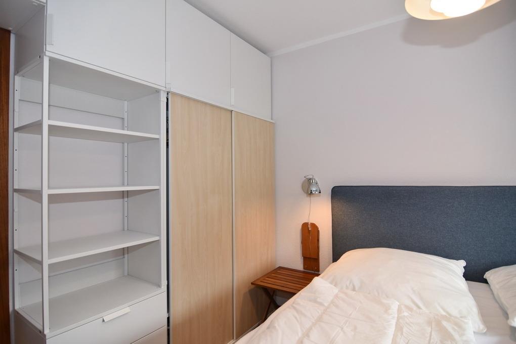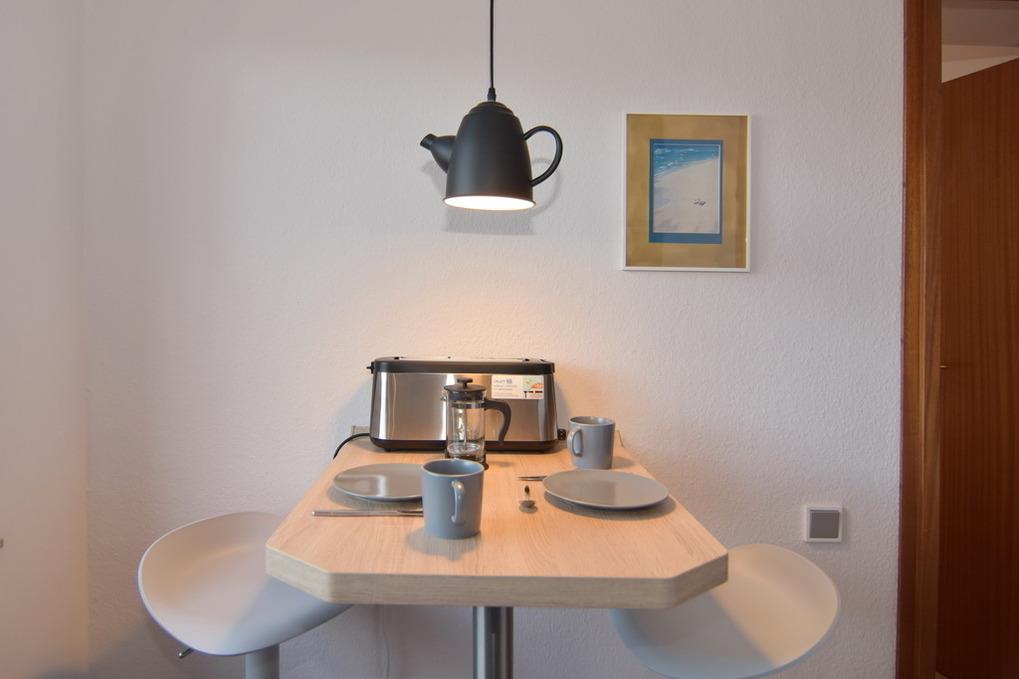 2-Zimmer-Wohnung im 1. OG für max. 3 Personen. Die Wohnung verfügt über ein Wohnzimmer mit Couch, Flat-TV, W-LAN, einer Festnetzflatrate (ohne Gewähr), einen Tresen als Ess- oder Arbeitsplatz am Fenster und einen Ostbalkon. Die offene Küche bietet einen 2-Platten-Ceranherd, Geschirrspüler und Backofen mit Mikrowellenfunktion und kleinem Essplatz für 2 Personen. Kühlschrank mit Gefrierfach. Das separate Schlafzimmer mit Keiderschrank verfügt über ein Boxspringbett. (180x200) Im Wohnzimmer besteht die 2. Schlafmöglichkeit durch 2 Einzelschrankbetten. Vom kleinen Flur mit Garderobe gelangen Sie zum Duschbad/WC. Fahrstuhl im Haus hält zwischen den Etagen. Zu der Wohnung gehört der Garagenstellplatz Nr. 25 und Fahrradabstellmöglichkeiten am Haus. Die Einfahrtshöhe zur Garage beträgt 1,77m. Rauchen und Tierhaltung ist hier nicht gestattet. Bettwäsche und Handtücher sind zur Anreise aufgezogen. Auf dem nördlich angrenzenden Nachbargrundstück entsteht ab Mai 2024 ein Neubauvorhaben. Hier kann es zu Lärmbelästigung kommen.