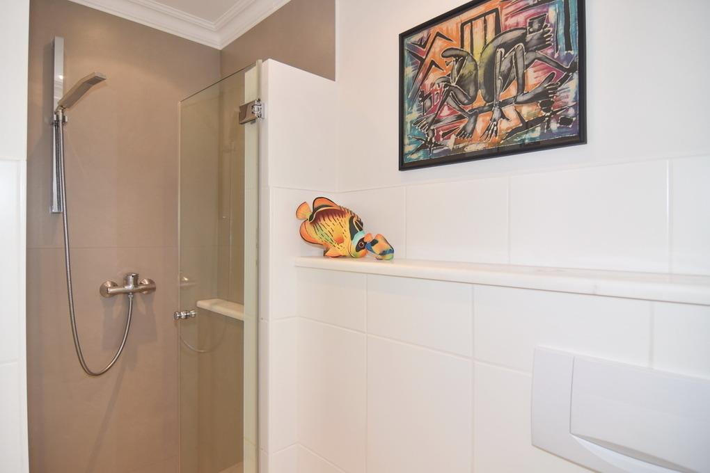 Hell, geräumig, ruhig - einfach eine tolle Wohnung. Im Obergeschoß des Einfamilienhauses Louise befindet sich die 2-Zimmer-Wohnung mit ca. 48qm. Das Wohnzimmer verfügt über eine gemütliche Sitzecke, eine voll ausgestattete Küchenzeile mit Geschirrspüler und Backofen, einem Essplatz, Flat-TV, einem Schrankbett (90x200) und einem herrlichen Südbalkon mit Balkonmöbeln und Markise. Über den Wohnungsflur mit Garderobe gelangen Sie in das Schlafzimmer mit Doppelbett (180x200) und Kleiderschrank sowie das Duschbad / WC. Ein kleiner Hund ist in dieser Wohnung gestattet - muss aber kostenpflichtig angemeldet werden. Ein Pkw-Stellplatz sowie Fahrradständer befinden sich vor dem Haus. WLAN (ohne Gewähr) ist im Haus vorhanden. Bettwäsche und Handtücher sind zur Anreise aufgezogen.