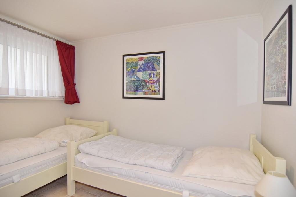 3-Zimmer-Ferienwohnung mit NW-Terrasse und Gartenmöbeln, Strandkorb (Apr.-Okt.).[nbsp][nbsp]Nichtraucher-Whg.! Ca. 70m². EG: Wohnzimmer mit Couchecke und 2 Sesseln sowie Essplatz für 4 Personen, Kabel-TV und Stereoanlage, W-LAN (ohne Gewähr). Separate Küche mit Geschirrspüler und Mikrowelle. Gäste-WC und Diele UG: 1 Schlafzimmer mit Doppelbett und TV, 1 Schlafzimmer mit 2 Einzelbetten, neues Badezimmer mit Dusche/WC und Bidet. Schwimmbad, Sauna im Haus. Garage. Münzwaschmaschine und Trockner. Bettwäsche und Handtücher sind zur Anreise aufgezogen! Tierhaltung ist nicht gestattet.