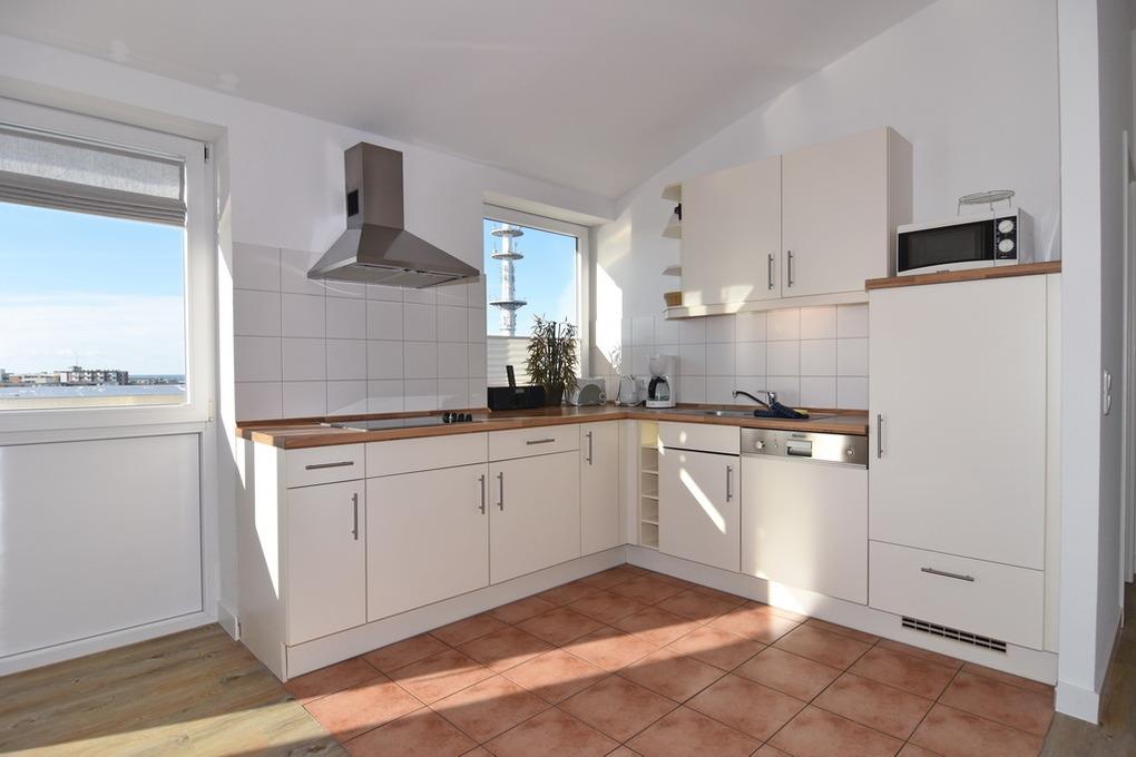 Modernes 2-Zimmer-Penthouse im 6.OG mit umlaufender Dachterrasse (Süden/Westen/Norden) mit Strandkorb. Ca. 72 m² im Haus "Mauritius". Wohnzimmer mit großer Schlafcouch und Sessel, TV, offene Küche mit Geschirrspüler und Mikrowelle, Essplatz , Schlafzimmer mit Doppelbett, Duschbad/WC und separates Gäste-WC. Rauchen und Tierhaltung ist nicht gestattet. Ein Pkw-Stellplatz kann kostenpflichtig hinzugebucht werden. Bettwäsche und Handtücher sind zur Anreise aufgezogen!Waschküche und Fahrradkeller im Haus. Internet (ohne Gewähr).