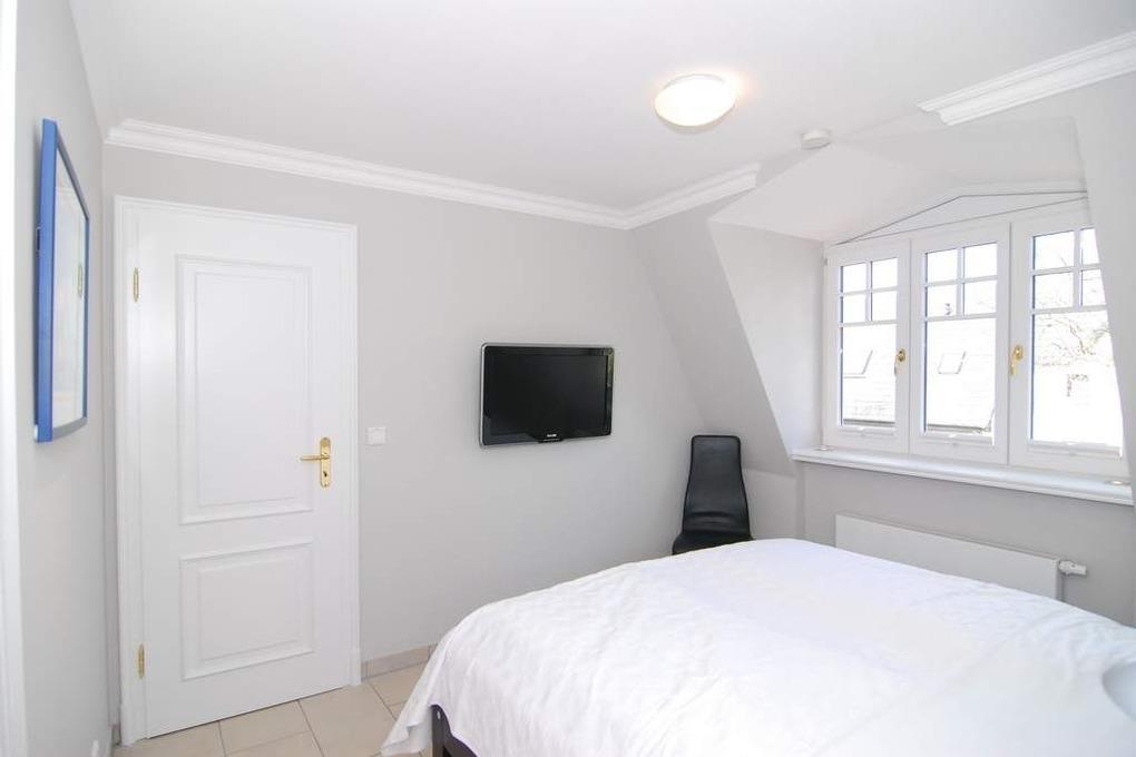 Exklusiver Endhausteil mit Südostterrasse und Strandkorb. Ca. 95m². Nichtraucher. EG: Wohnzimmer mit 2 Couchen und Essplatz, TV, Stereoanlage, Internet, Flat-Rate ins dt. Festnetz. Separate Küche mit Geschirrspüler, Backofen, Mikrowelle und Gefrierfach. Gäste-WC mit Waschmaschine und Trockner ( Münzautomat). OG: 2 Schlafzimmer mit Doppelbetten (200x220) und TV. Bad mit Wanne/ Dusche und Bidet. DG: Sauna (Münzautomat) und Duschbad/ WC. Stellplatz am Haus. Tierhaltung ist nicht gestattet. Allergiker freundlich! Alle Räume gefliest. Schallschutzfenster zur Maybachstraße. Gartenhaus. Kostenpflichtige Wallbox/E-Ladestation) für Autos vorhanden (€ 5,-/Tag). Bettwäsche und Handtücher sind zur Anreise aufgezogen.
