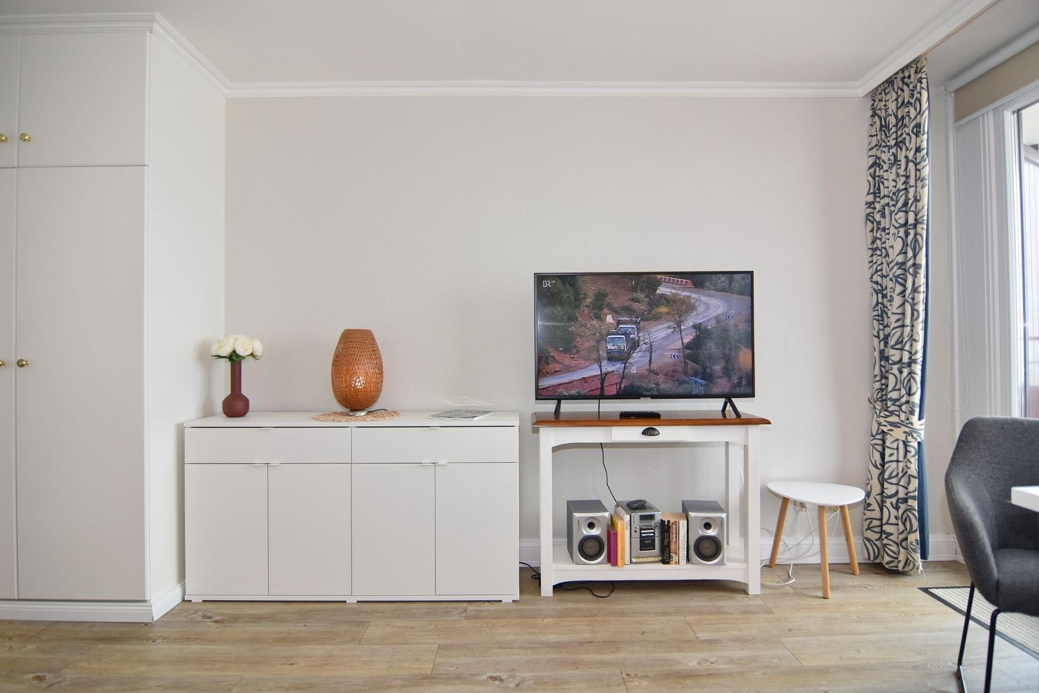 1-Zimmer-Ferienwohnung im 7. Stock im Haus Metropol, ca. 34 qm. Nichtraucher-Whg.! Wohn-/Schlafraum mit Doppelbett (160x200 cm), 2-Sitzer-Couch, Eßplatz am Fenster mit Blick auf die Nordsee, Flat-TV, CD-Player, W-Lan (ohne Gewähr), Westbalkon mit Meeresblick, Küchenzeile im Flurbereich mit Geschirrspüler. Duschbad/WC. Das Apartment ist mit Design-Boden im Wohnbereich und mit Fliesen ausgelegt. Tierhaltung ist nicht gestattet. Bettwäsche und Handtücher sind zur Anreise aufgezogen. Ein PKW-Stellplatz kann kostenpflichtig zugebucht werden.