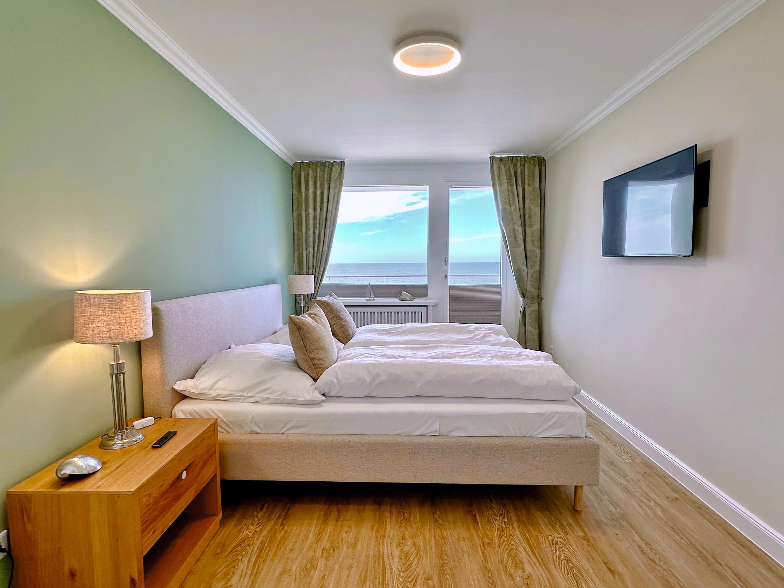 Exklusives 3-Zimmer-Apartment im 13.OG des Haus "Metropol" mit einem Süd- und 2 Westbalkonen. Genießen Sie einen Traumblick auf das Meer und die Dünenkette, ca. 88 m² Nichtraucher. Wohn- und Schlafräume sind mit Böden in Holzoptik ausgelegt. Wohnzimmer mit großer Sitzecke sowie TV und Stereoanlage. W-Lan (ohne Gewähr) 1 Schlafzimmer mit Doppelbett, Kleiderschrank, Flat-TV, Westbalkon und Bad ensuite. 1 kleines Schlafzimmer mit 2 Einzelbetten und TV, separates Duschbad/ WC. Separate Küche mit Backofen und Geschirrspüler. Tierhaltung und Rauchen ist nicht gestattet. Der dazugehörige Garagen-Stellplatz (Nr. 108) kann bei Buchungsabschluss zu € 15,--/Nacht gebucht werden. Waschküche und Fahrradkeller befinden sich im Haus. Bettwäsche und Handtücher sind zur Anreise aufgezogen.