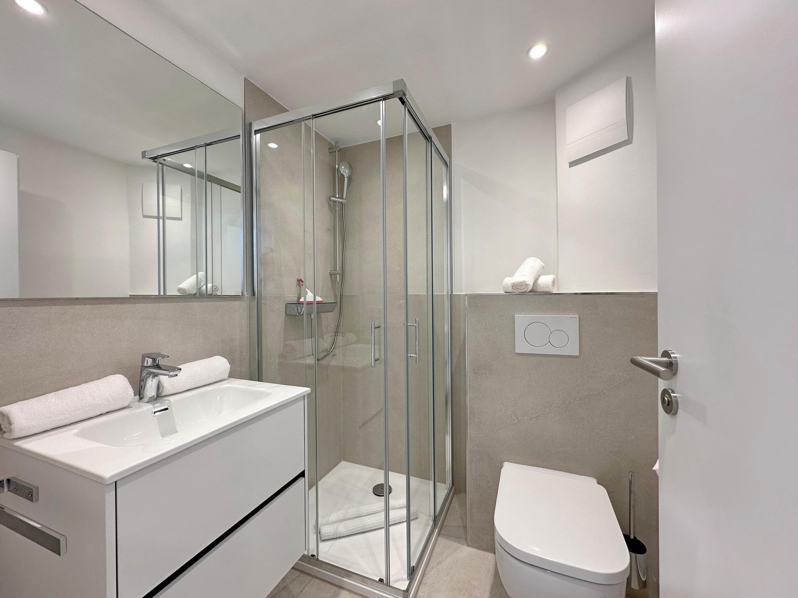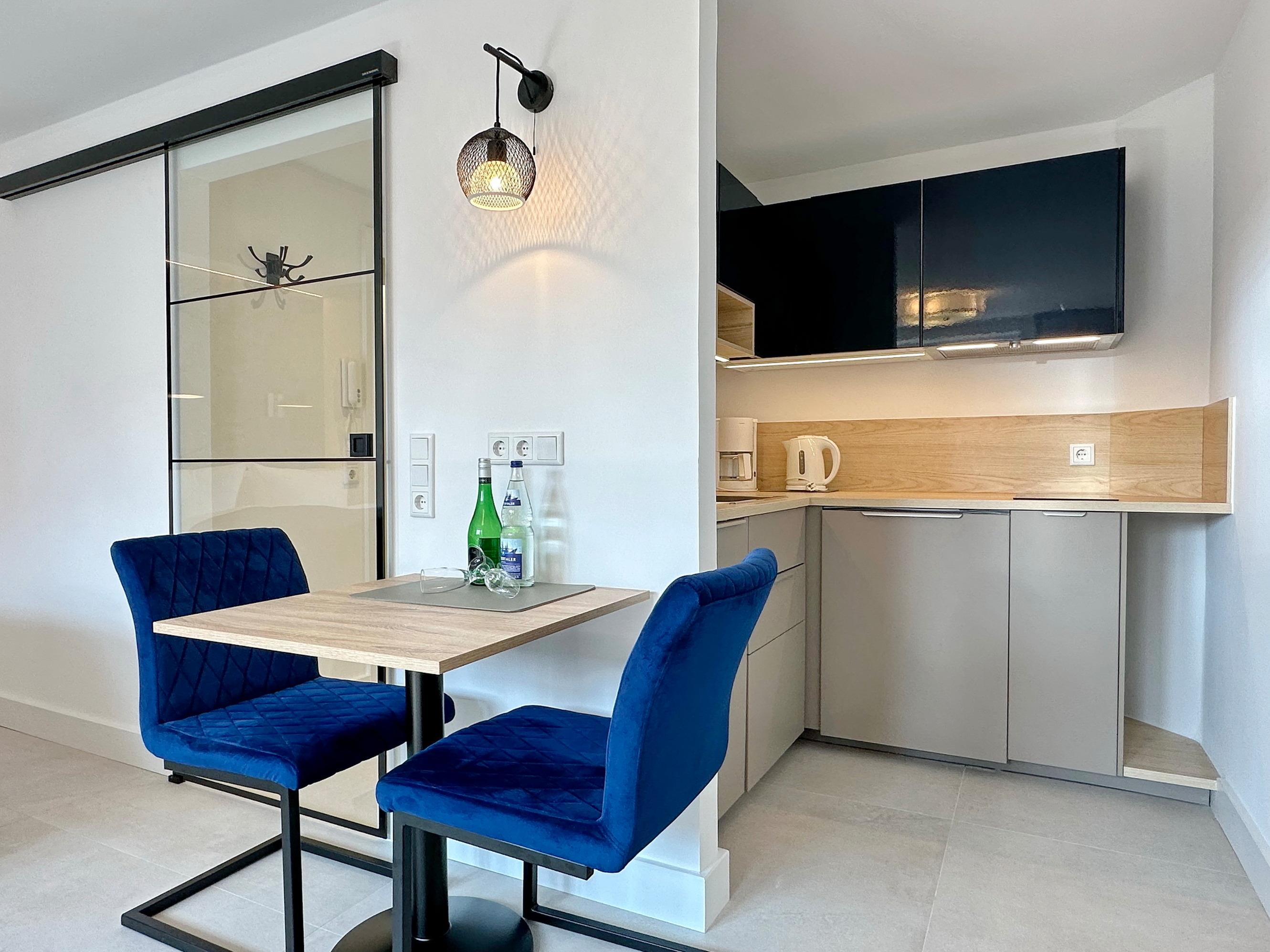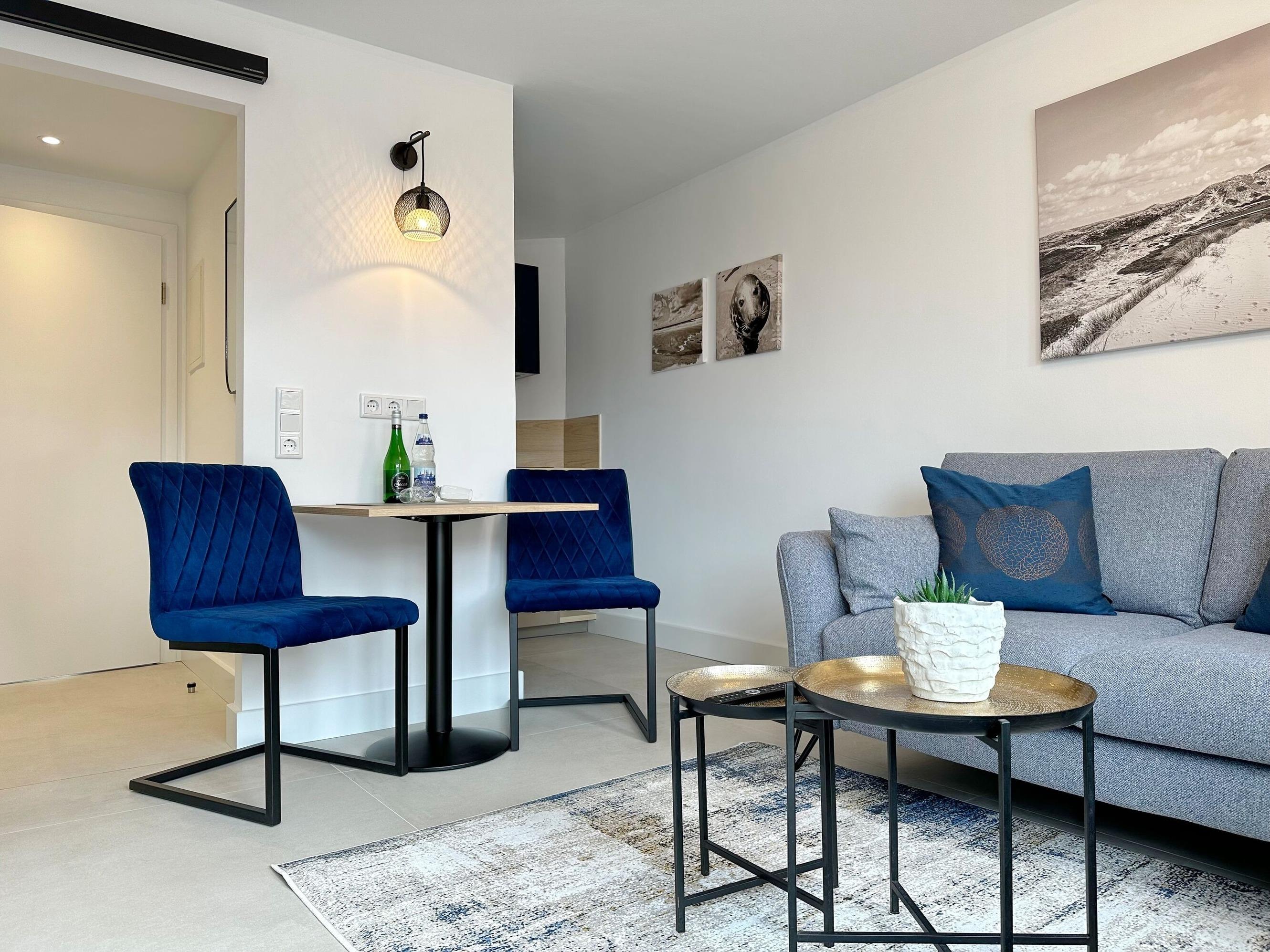Die Wohnanlage "Olympia" bietet eine zentrale Lage in kurzer Entfernung zur Promenade, dem Badestrand und dem Meer. Auch die Fußgängerzone ist nur wenige Gehminuten entfernt. Die 1-Zimmer-Wohnung liegt im 1. Obergeschoss, wurde im Jahr 2025 von Grund auf renoviert und ist für 2 Personen ideal geeignet. Sie hat eine Größe von ca. 30 m² und besteht aus einem Wohn- und Schlafzimmer mit Doppelbett, Einbauschränken, Couch und Essplatz sowie einer geschützten Südbalkon mit Gartenmöbeln. Das TV-Gerät ist schwenkbar, sodass sowohl vom Bett als von Couch ferngesehen werden kann. Die integrierte Küche ist mit einem Induktionskochfeld, einem Geschirrspüler und einer Mikrowelle mit Grillfunktion ausgestattet. Das moderne Duschbad ist vom Dielenbereich erreichbar. In der Diele befinden sich Einbauschränke und eine Garderobe für Jacken und andere Dinge. WLAN steht zur Verfügung, jedoch ohne Gewähr. Das Mitbringen von Haustieren und das Rauchen sind nicht gestattet. Bei Anreise sind Bettwäsche und Handtücher bereits aufgezogen. Die Wohnanlage verfügt über einen Schwimmbad- und Saunabereich sowie einen zusätzlichen Wellnessbereich mit finnischer Sauna, Dampfsauna und Ruhebereich. Fahrzeuge können gegen Gebühr und vorheriger Anmeldung in der Tiefgarage abgestellt werden. Waschmaschinen und ein Trockner stehen kostenfrei zur Verfügung. Für Fahrräder gibt es einen Abstellbereich in der Garage.