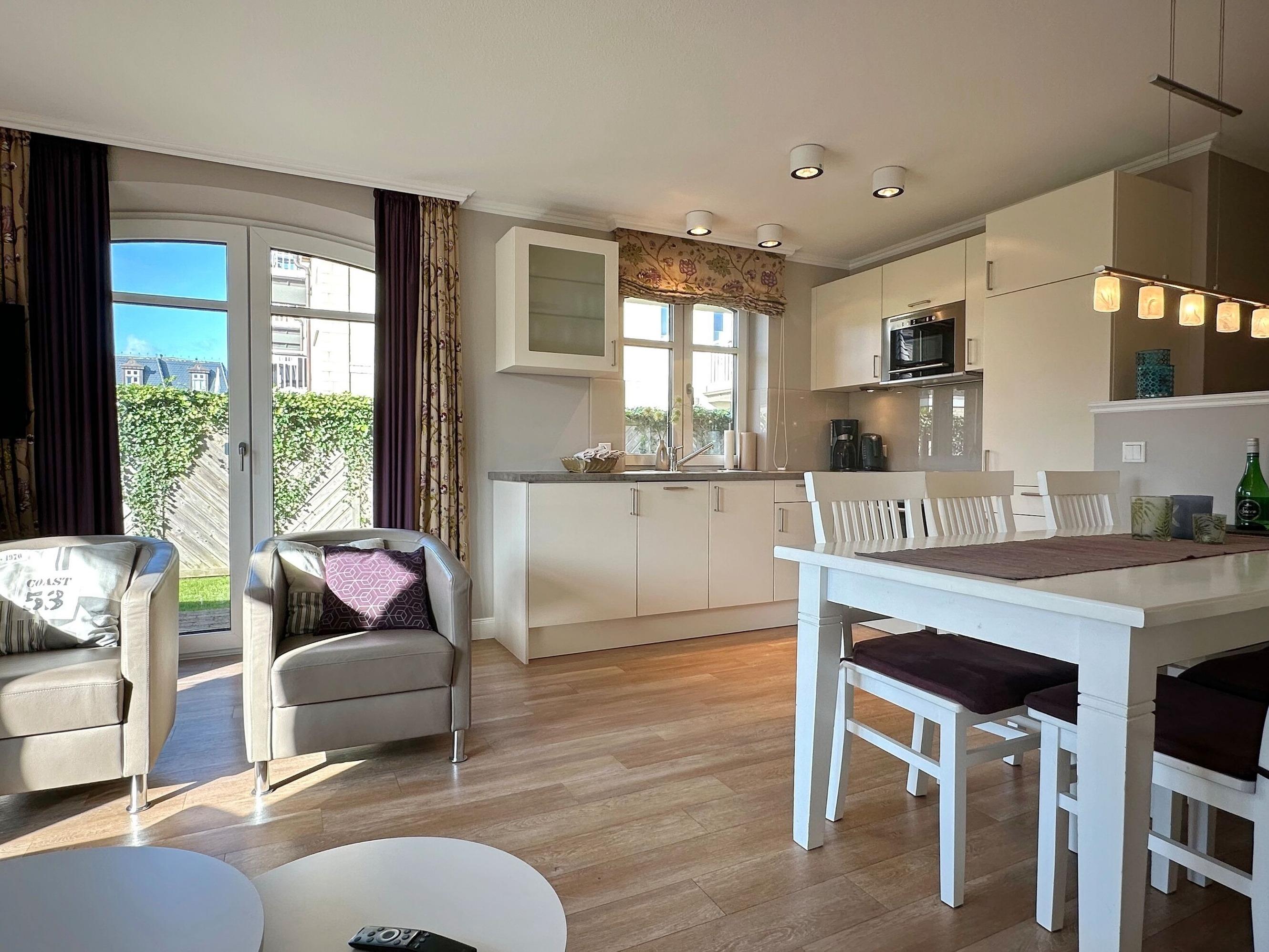 Exklusive 4-Zimmer-Ferienwohnung in der Residenz "Alva" mit Wellnessbereich (Pool, Sauna, Dampfsauna) unweit des Badestrands und der Fußgängerzone. "Nichtraucher", ca. 108m².EG.: Wohnraum mit Sitzecke und Sessel, Essplatz, Flat-TV, Stereo-Anlage (CD und Bluetooth), W-LAN (ohne Gewähr), Süd-/Westterrasse mit Gartenmöbeln, offene Küche mit Mikrowelle, Backofen und Geschirrspüler, Duschbad/WC, Schlafzimmer mit Doppelbett/Flat-TV UG: 2 Schlafzimmer mit Doppelbetten, Flat-TV`s und 2 Duschbädern. Direkter Zugang zum Schwimmbadbereich. PKW-Stellplatz Nr.5. Waschküche (gegen Gebühr). Bettwäsche und Handtücher sind zur Anreise aufgezogen. Tierhaltung ist nicht gestattet! Auf dem östlich angrenzenden Nachbargrundstück entsteht ab März 2024 ein Neubauvorhaben, hier kann es zu Lärmbelästigungen kommen.