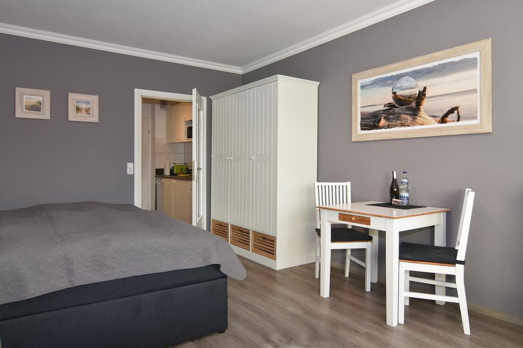 Diese hübsche 1-Zimmer-Ferienwohnung liegt mitten im Herzen von Westerland nur wenige Minuten vom Strand entfernt. Geniessen Sie die zentrale Lage mit all Ihren Vorzügen. Die Wohnung hat einen geräumigen Wohn-/Schlafraum mit Südbalkon, eine Küchenzeile im Flurbereich und ein modernes Duschbad / WC. Im Wohn-/Schlafraum erwartet Sie ein Boxspring-Doppelbett (180x200), Sitz- und Essgruppe, Flat-TV mit DVD-Player und ein Kleiderschrank, W-LAN ( ohne Gewähr ). Der möblierte Balkon lädt zum Verweilen in der Sonne ein. Bettwäsche und Handtücher sind zur Anreise aufgezogen. Tierhaltung und Rauchen sind in der Wohnung nicht gestattet. Im Haus befindet sich eine Waschküche mit Münz-Waschmaschine und -trockner. Der dazugehörige Garagen-Stellplatz (78/27 = Stellplatz 27) kann bei Buchungsabschluss der Wohnung zu € 10,--/Nacht gebucht werden. Danach verfällt der Anspruch.