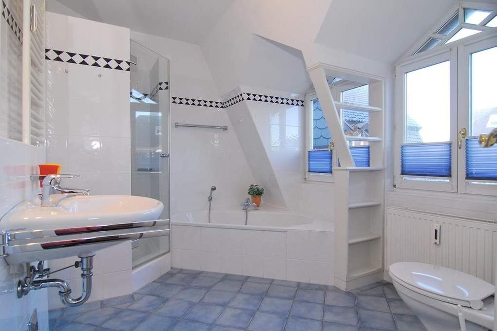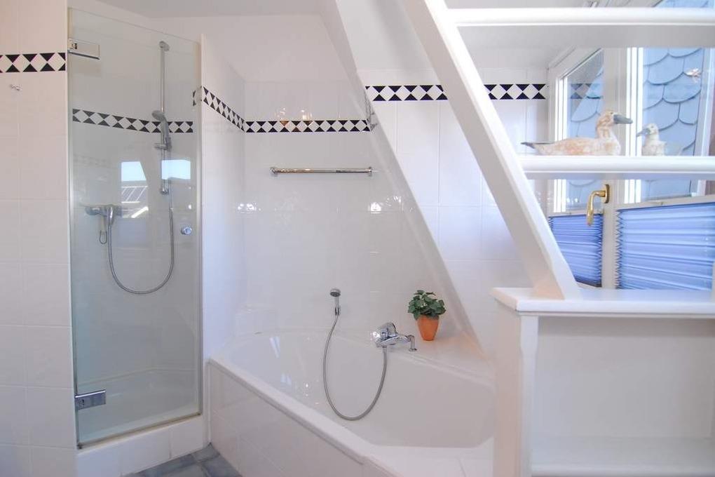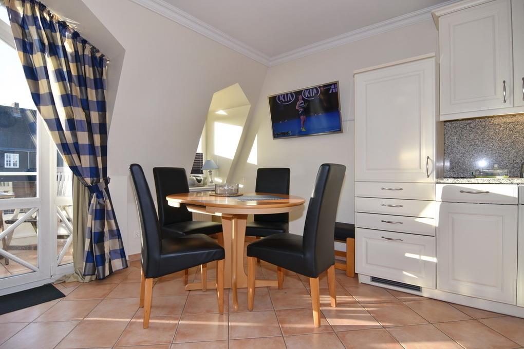 Exklusive 2-Zi.-Ferienwohnung im Haus "Syltrose", OG/DG, ca. 50m². Wohn-/Schlafraum mit Sitz- und Eßecke, offene Küche mit Geschirrspüler, Senseo-Kaffeemaschine, Mikrowelle und Backofen, Kabel-TV, Radio, WLAN (ohne Gewähr), Telefon, Wanne und Dusche/WC, Trockner und Waschmaschine vorhanden, Südbalkon. DG: Schlafzimmer mit Boxspringbett (180x200). Im Haus befinden sich Schwimmbad und Sauna (kein direkter Zugang). Sauna über Münzautomat. Pkw-Stellplatz Nr. 6 am Haus. Bettwäsche und Handtücher sind zur Anreise aufgezogen. Rauchen und Tierhaltung in der Wohnung sind nicht gestattet.