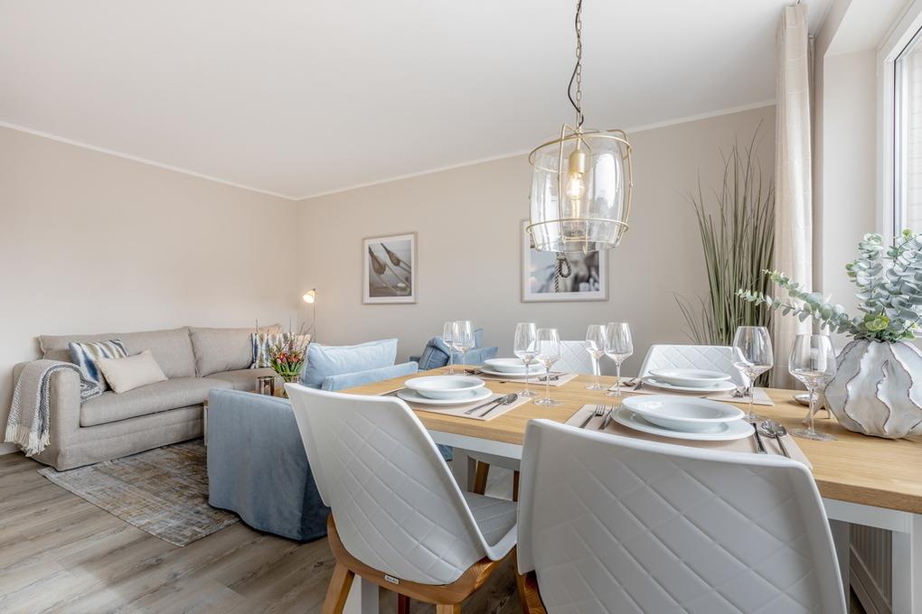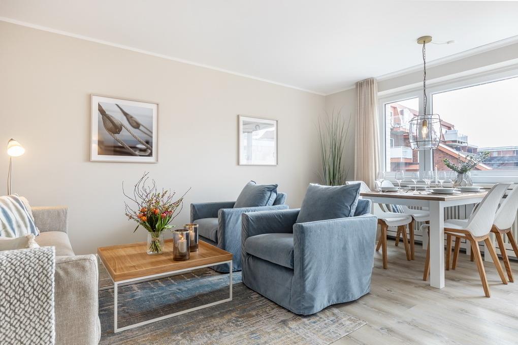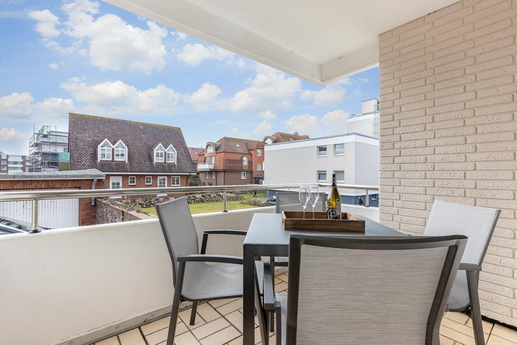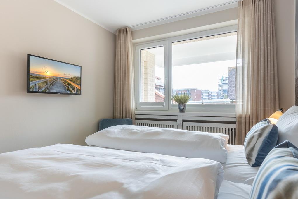 Neu gestaltete, moderne 3-Zimmer-Appartement im Haus Undine, ca. 58m², Hochparterre für max. 4 Personen in Strandnähe, Nichtraucher Appartement. Wohnzimmer mit Essplatz für 4 Personen, Couch und 2 Sessel, Flat-TV, Radio, W-Lan (ohne Gewähr), Tresor, sonniger Südbalkon mit Balkonmöbeln. Separate Küche mit Geschirrspüler, Backofen und Mikrowelle. 1 Schlafzimmer mit Boxspringbett ( 180x200 ), Flat-TV und Kleiderschrank, 1 Schlafzimmer mit Boxspringbett ( 160x200 ) und Kleiderschrank. Duschbad /WC mit Waschmaschine und Trockner. Das Appartement ist komplett mit Designboden ausgelegt. PKW-Stellplatz Nr. 36 ist inklusive und befindet sich auf dem Hof. Kein Fahrstuhl vorhanden. Tierhaltung ist nicht erlaubt. Bettwäsche und Handtücher sind zur Anreise aufgezogen.