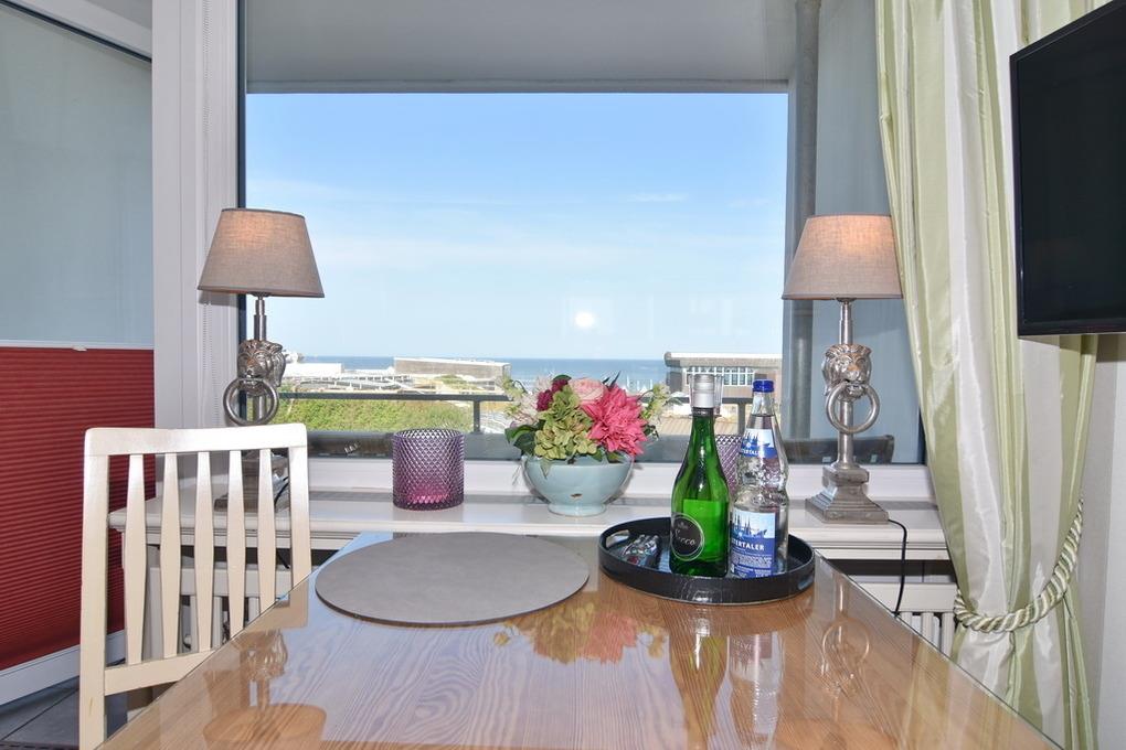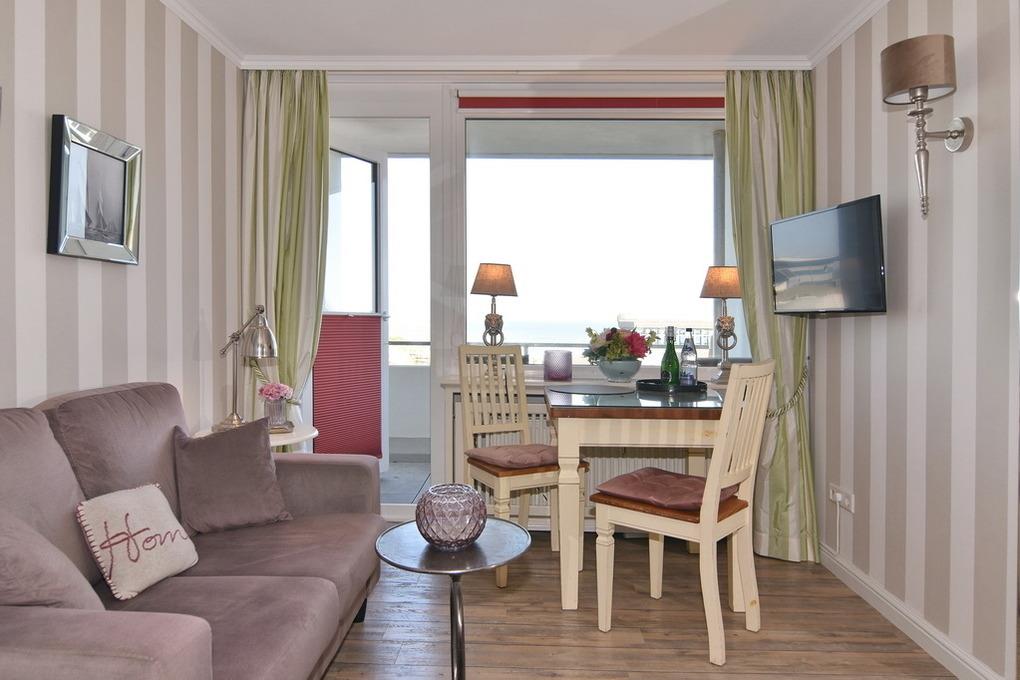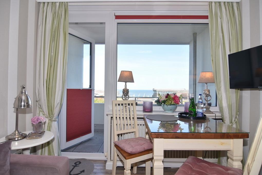 Exklusives 1-Zimmer-Appartement mit Westbalkon und Blicke auf die Nordsee. Ca. 25m², Nichtraucher,[nbsp][nbsp]4.OG im Haus Wiking. Wohn-/Schlafraum mit Boxspringbett (2x80x200 ) und Essecke, Zweisitzercouch, Kabel-TV, WLAN (ohne Gewähr), Küchenzeile im Flur mit Geschirrspüler und Mikrowelle, Duschbad/WC. Fahrstuhl im Haus, 3 Stufen im Flurbereich des Hauses! Tierhaltung ist nicht gestatttet! Pkw-Stellplatz kann kostenpflichtig gebucht werden. Bettwäsche und Handtücher sind zur Anreise aufgezogen.