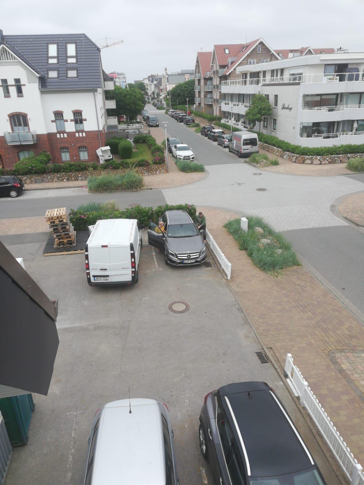 Zur Wohnung gehört ein Auto-Stellplatz vor dem Haus. Fahrradständer sind ebenfalls vorhanden.